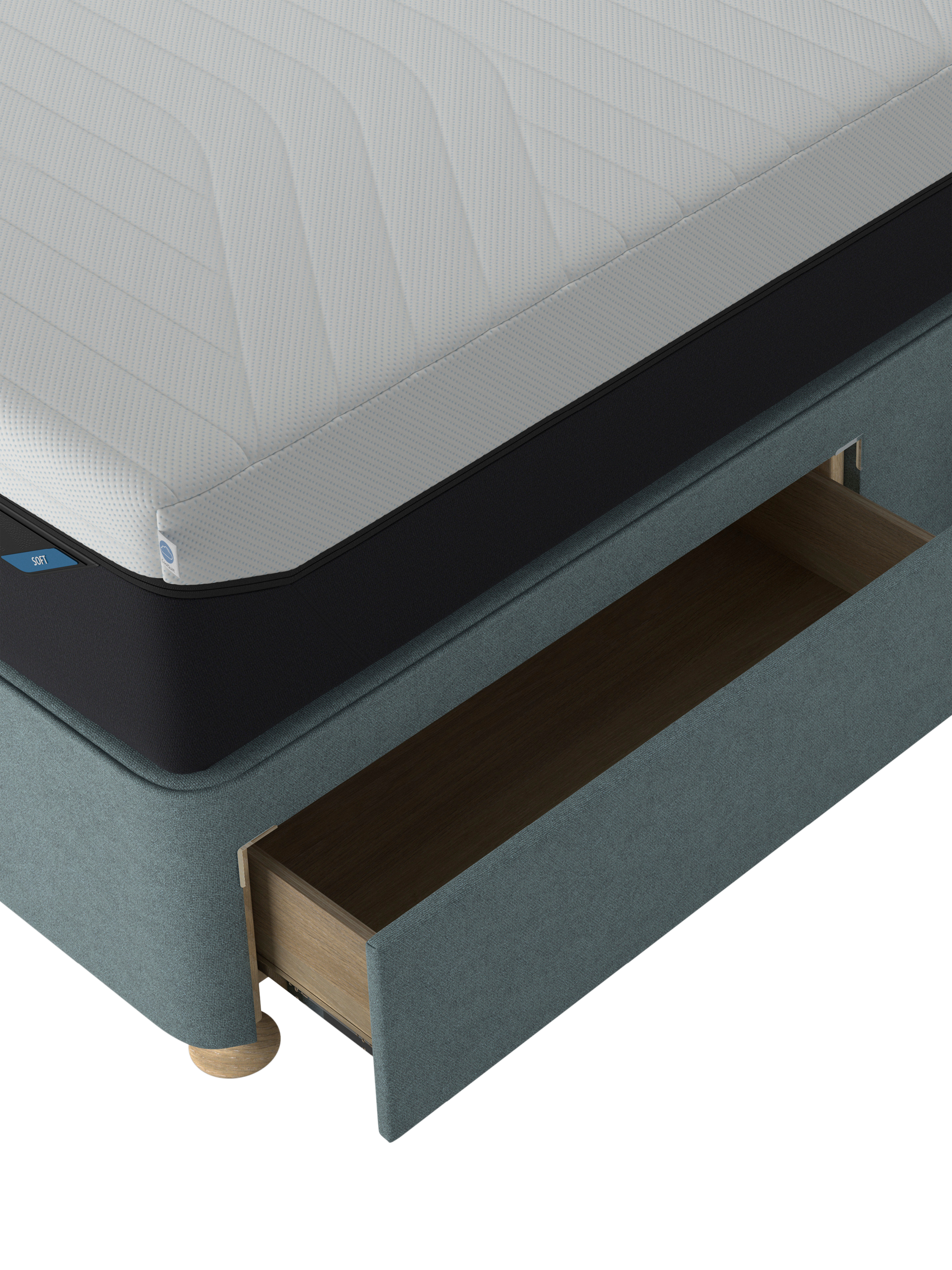Designed to complement all TEMPUR® mattresses, the Suffolk upholstered divan base offers a precise level of comfort and support, alongside helpful storage space. The base itself features the customisable Arc™ Adjustable Disc design to help you find your preferred sleeping position at the touch of a button. You can elevate your head and legs to ease pressure on your back, improve circulation and almost feel weightless. Discs in the frame flex with your body and adjust to your shape and movements while you sleep, and they can also be arranged in zones to create a softer, or firmer feel where you need it. Plus, openings between the discs ensure that air can flow effectively and keep your mattress ventilated.