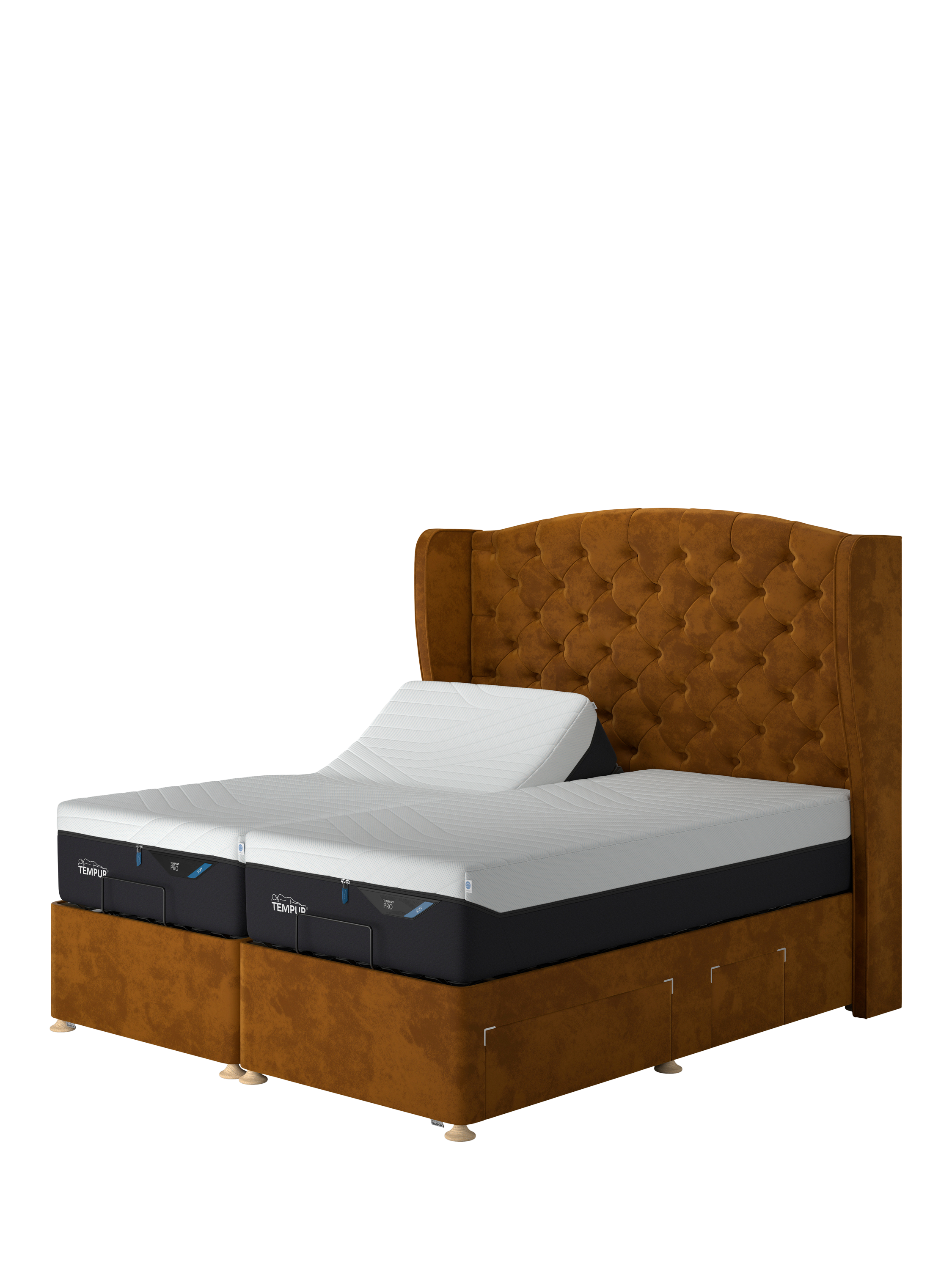 TEMPUR®Suffolk Adjustable Disc Continental 4 Drawer Divan Base, King Size, Tumeric