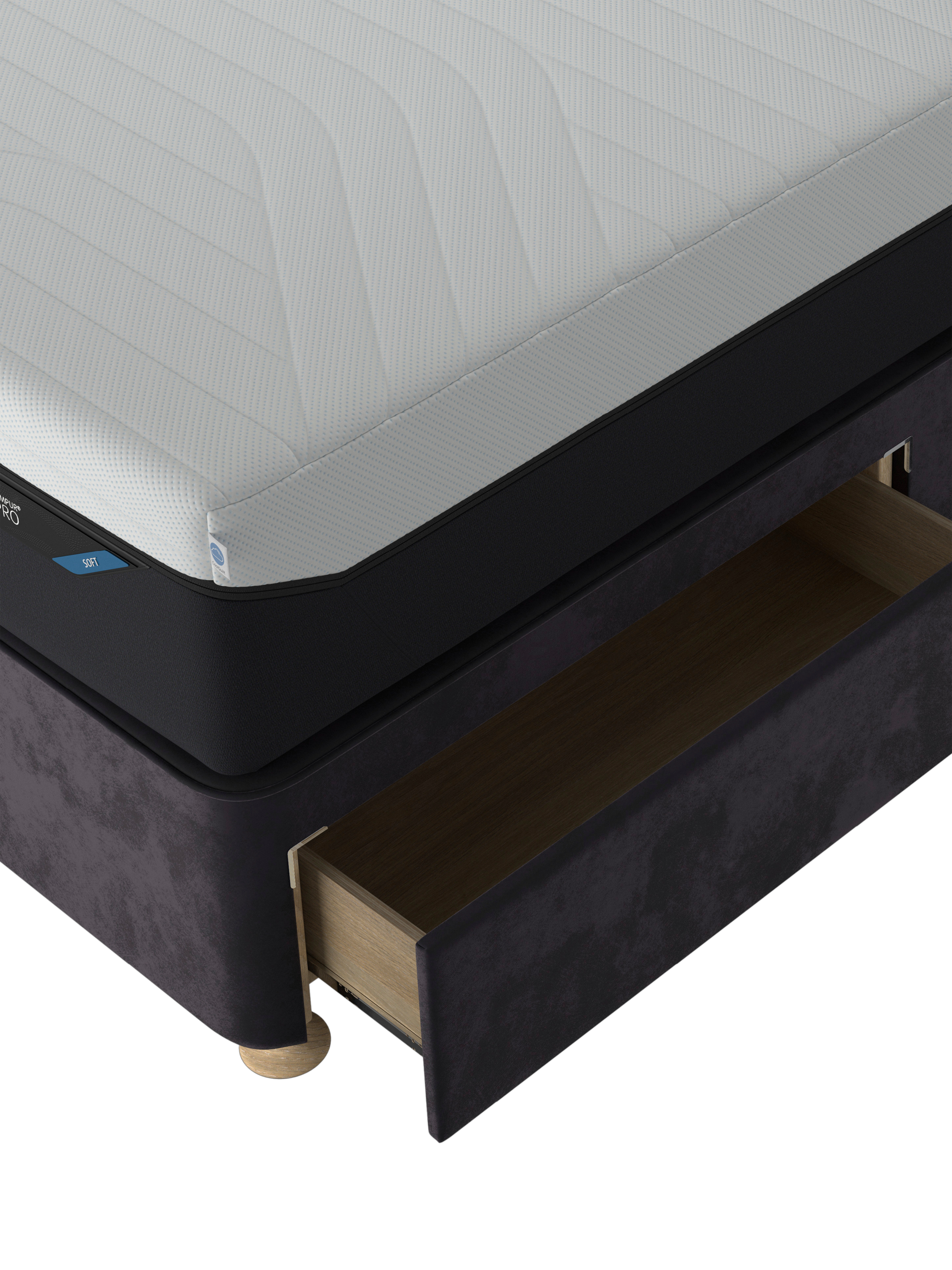 Designed to complement all TEMPUR® mattresses, the Suffolk upholstered divan base offers a precise level of comfort and support, alongside helpful storage space. The base itself features the customisable Arc™ Adjustable Disc design to help you find your preferred sleeping position at the touch of a button. You can elevate your head and legs to ease pressure on your back, improve circulation and almost feel weightless. Discs in the frame flex with your body and adjust to your shape and movements while you sleep, and they can also be arranged in zones to create a softer, or firmer feel where you need it. Plus, openings between the discs ensure that air can flow effectively and keep your mattress ventilated.