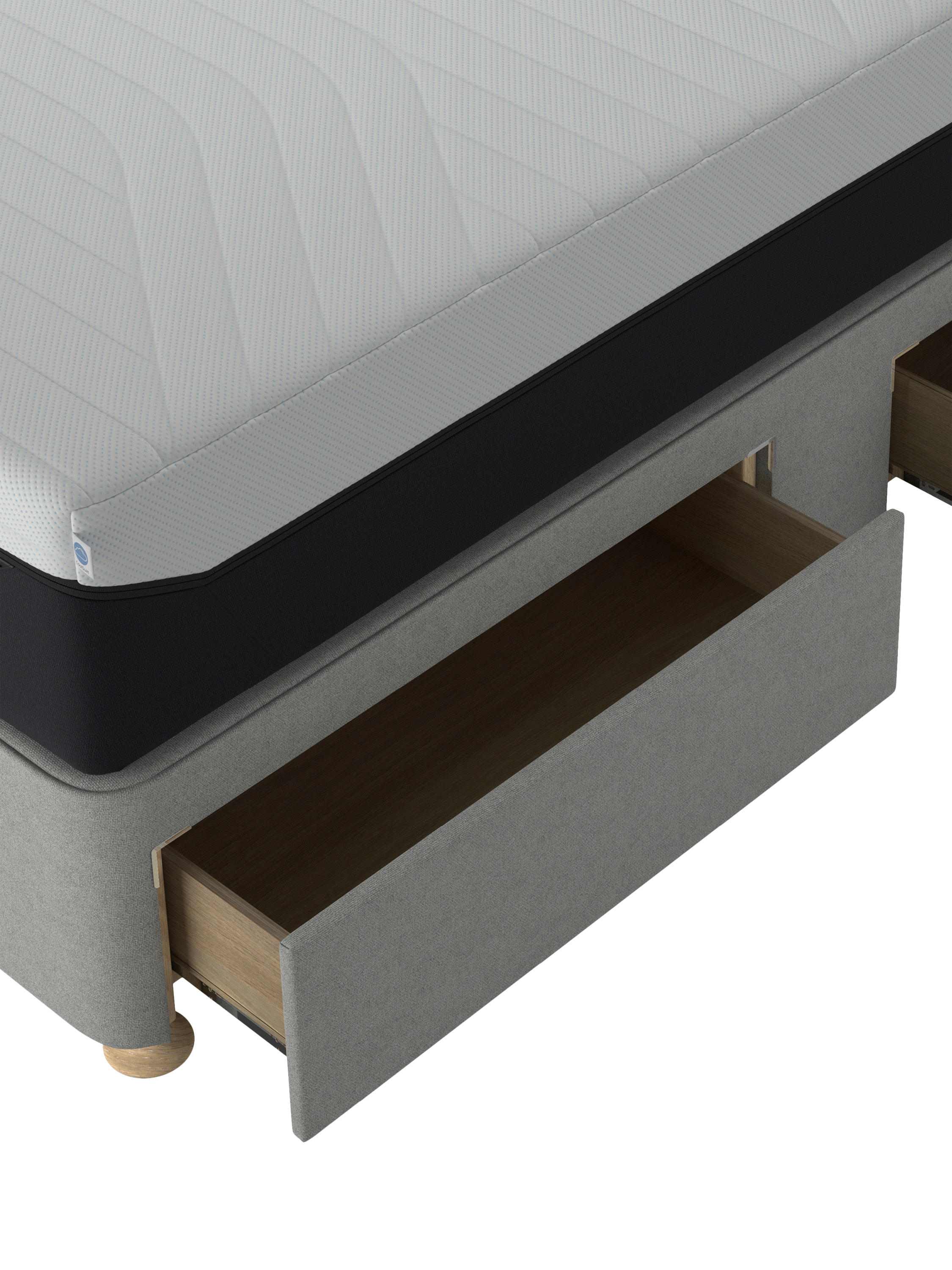 Designed to complement all TEMPUR® mattresses, the Suffolk upholstered divan base offers a precise level of comfort and support, alongside helpful storage space. The base itself features the customisable Arc™ Adjustable Disc design to help you find your preferred sleeping position at the touch of a button. You can elevate your head and legs to ease pressure on your back, improve circulation and almost feel weightless. Discs in the frame flex with your body and adjust to your shape and movements while you sleep, and they can also be arranged in zones to create a softer, or firmer feel where you need it. Plus, openings between the discs ensure that air can flow effectively and keep your mattress ventilated.