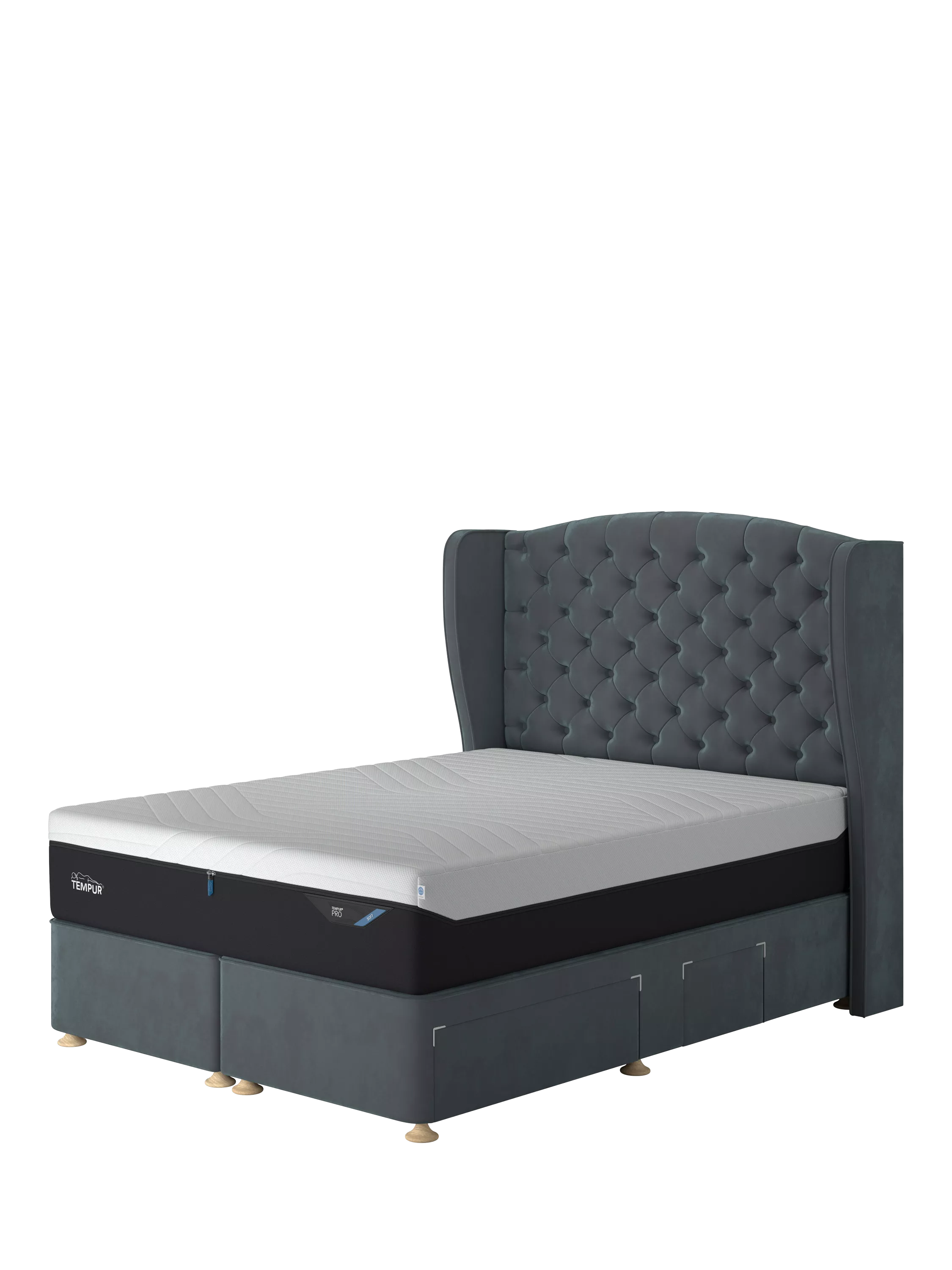 TEMPUR®Suffolk Continental 2 Drawer Divan Base, Single, Aqua