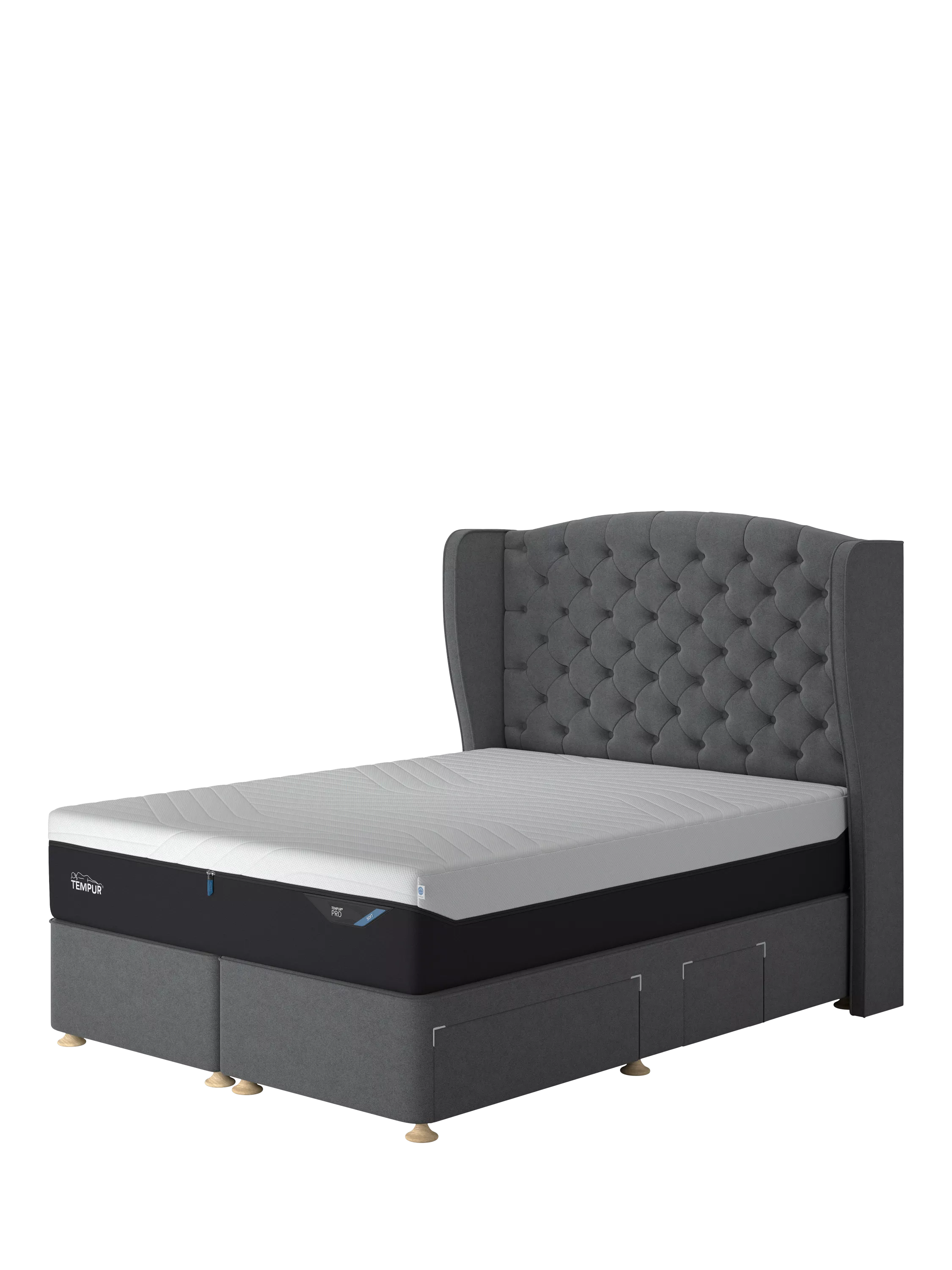 TEMPUR®Suffolk Continental 4 Drawer Divan Base, Double, Dark Grey