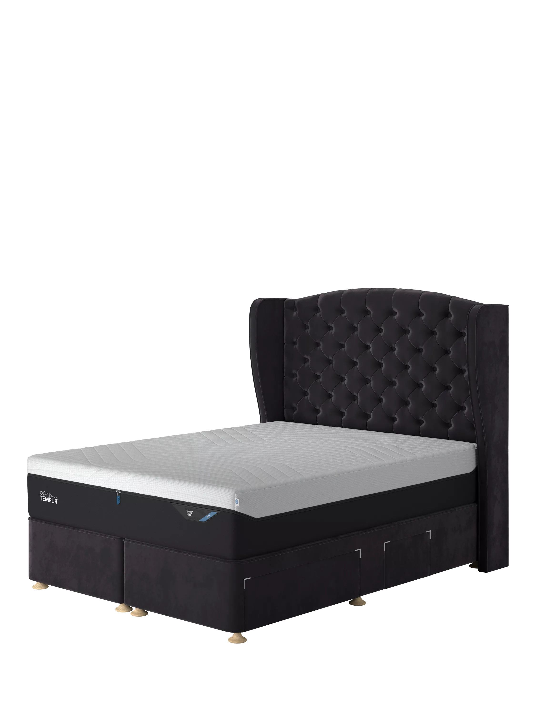 This Suffolk Continental divan from TEMPUR® provides a high-quality, non-sprung base for your mattress, as well as a practical storage space for lightweight items. There are four drawers in total: two are large and two are small to accommodate the space for your bedside table on either side. It's available in a range of fabrics and colours to suit every bedroom and mattresses and headboards can be purchased separately.
