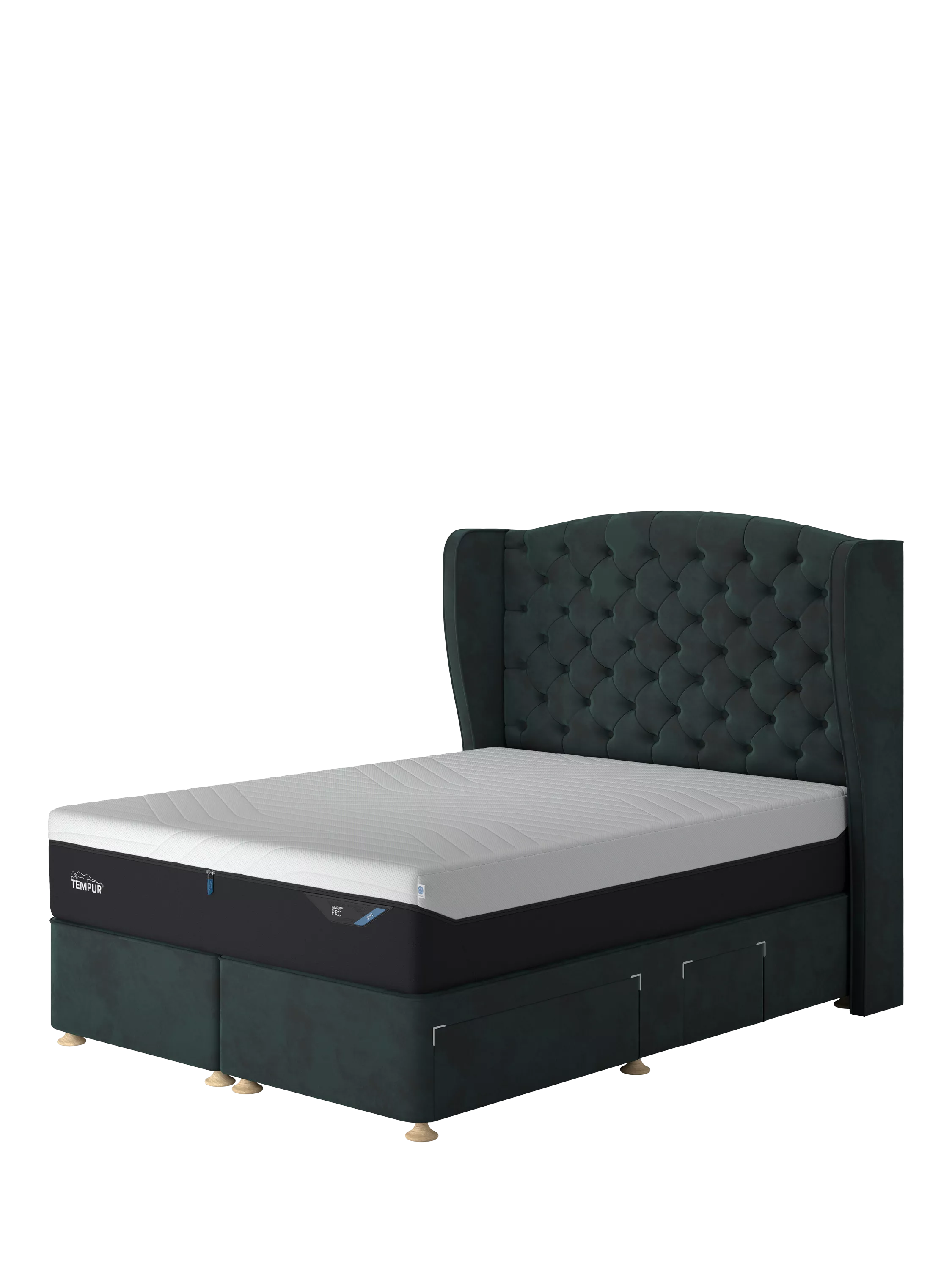 This Suffolk Continental divan from TEMPUR® provides a high-quality, non-sprung base for your mattress, as well as a practical storage space for lightweight items. There are four drawers in total: two are large and two are small to accommodate the space for your bedside table on either side. It's available in a range of fabrics and colours to suit every bedroom and mattresses and headboards can be purchased separately.
