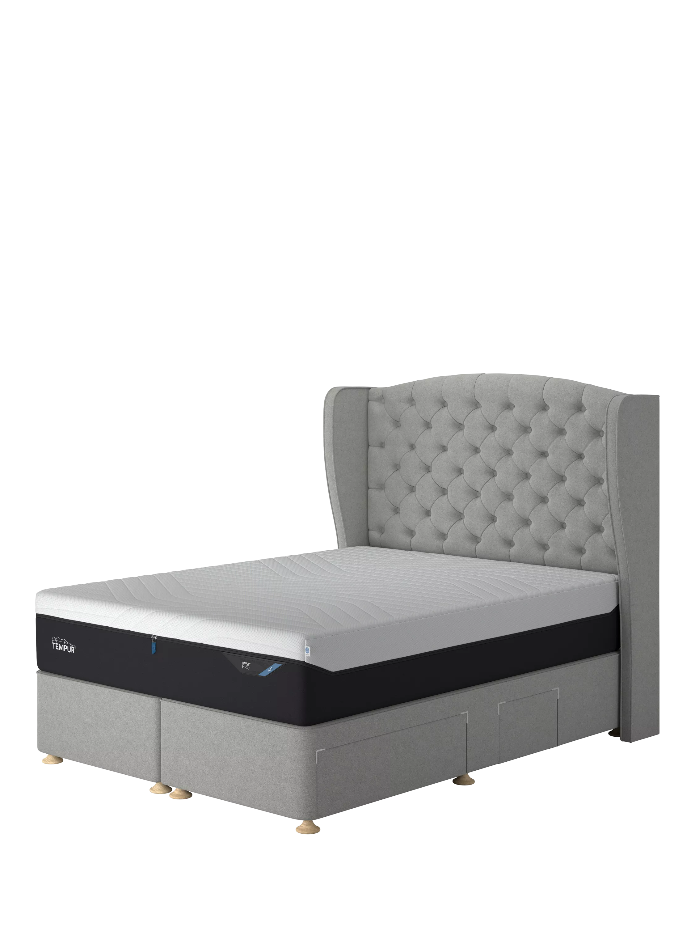 This Suffolk Continental divan from TEMPUR® provides a high-quality, non-sprung base for your mattress, as well as a practical storage space for lightweight items. There are four drawers in total: two are large and two are small to accommodate the space for your bedside table on either side. It's available in a range of fabrics and colours to suit every bedroom and mattresses and headboards can be purchased separately.