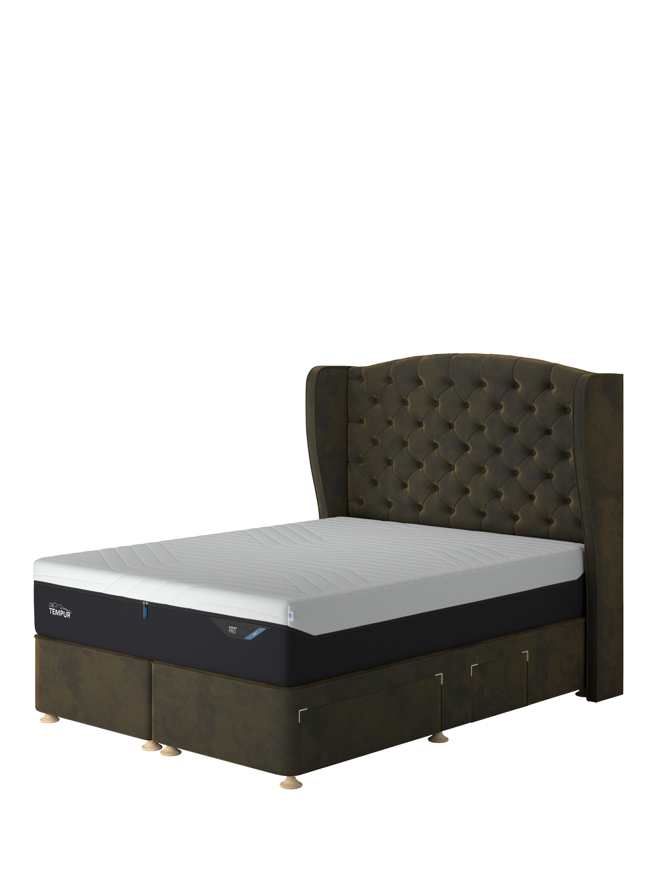 This Suffolk Continental divan from TEMPUR® provides a high-quality, non-sprung base for your mattress, as well as a practical storage space for lightweight items. There are four drawers in total: two are large and two are small to accommodate the space for your bedside table on either side. It's available in a range of fabrics and colours to suit every bedroom and mattresses and headboards can be purchased separately.