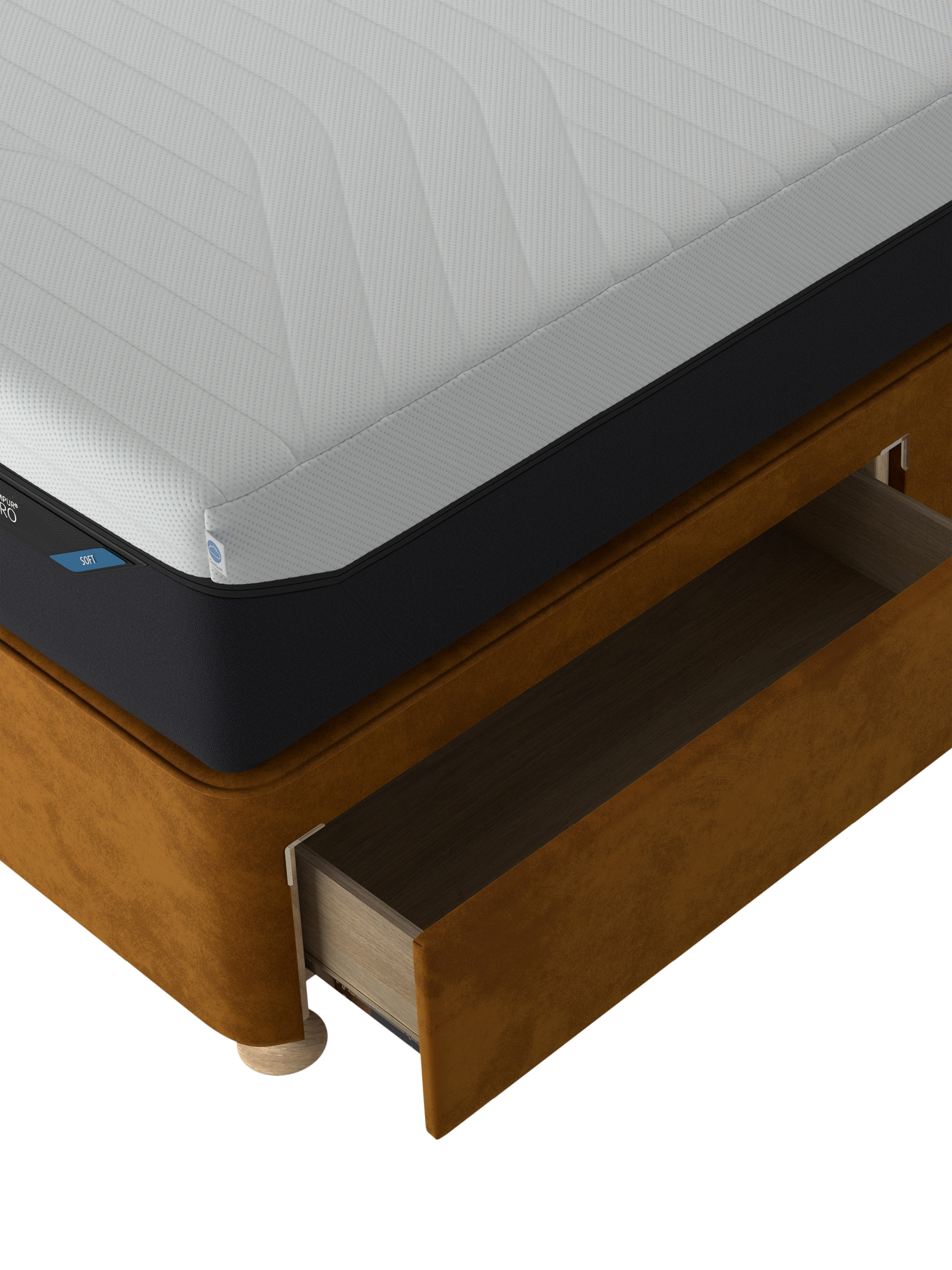 This Suffolk Continental divan from TEMPUR® provides a high-quality, non-sprung base for your mattress, as well as a practical storage space for lightweight items. There are four drawers in total: two are large and two are small to accommodate the space for your bedside table on either side. It's available in a range of fabrics and colours to suit every bedroom and mattresses and headboards can be purchased separately.