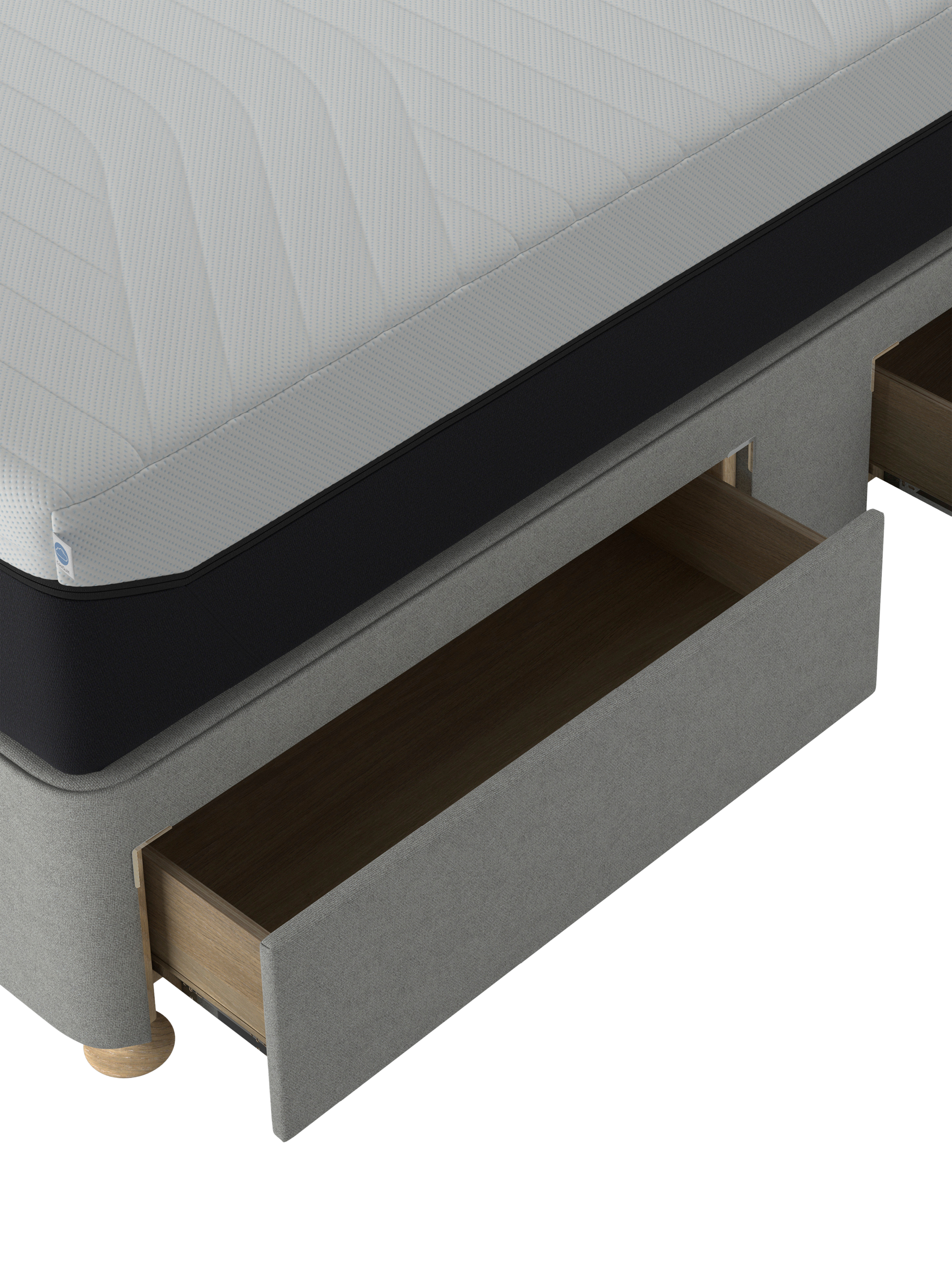 This Suffolk Continental divan from TEMPUR® provides a high-quality, non-sprung base for your mattress, as well as a practical storage space for lightweight items. There are four drawers in total: two are large and two are small to accommodate the space for your bedside table on either side. It's available in a range of fabrics and colours to suit every bedroom and mattresses and headboards can be purchased separately.