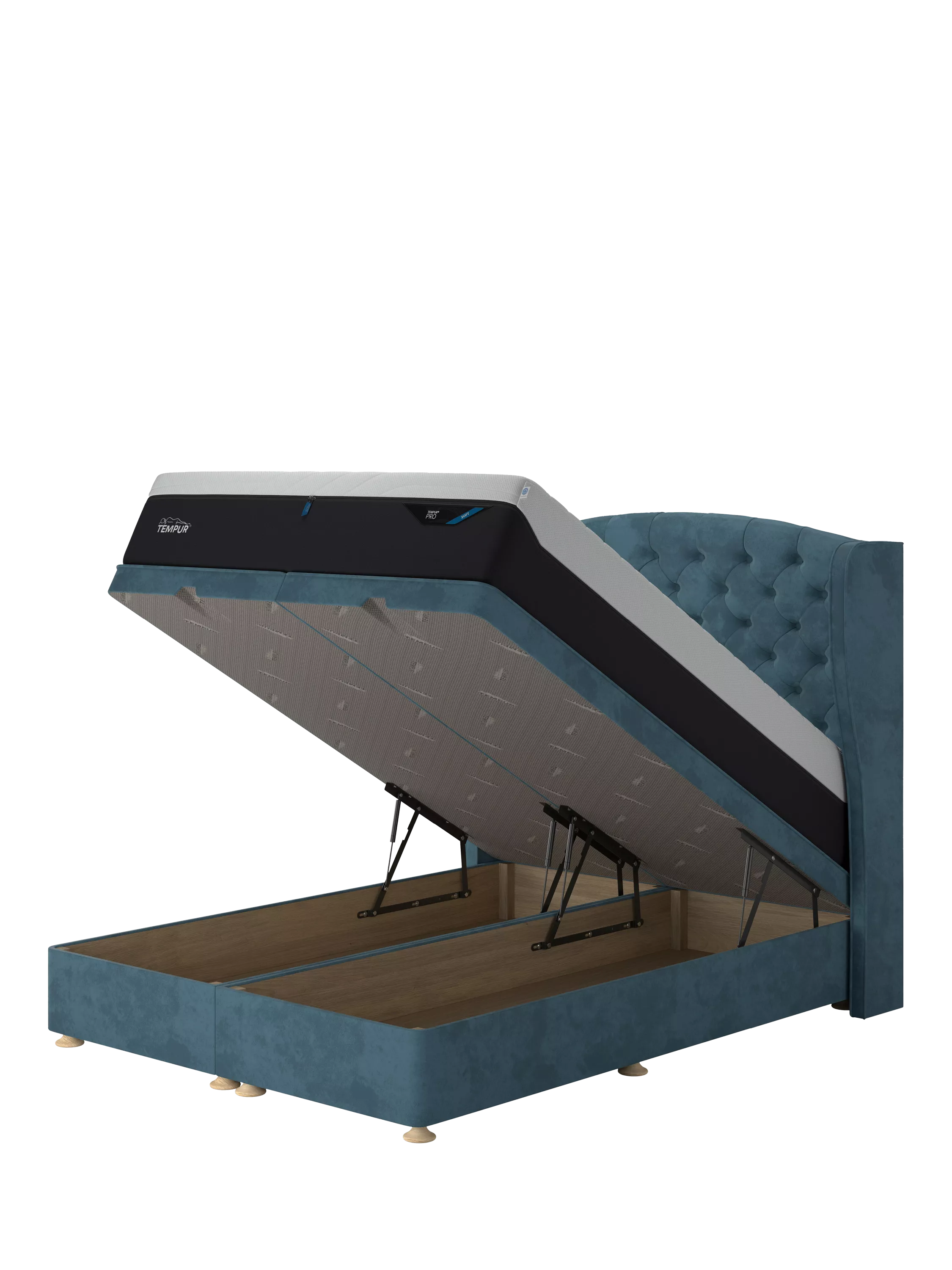 A TEMPUR® Suffolk Ottoman Bed is great for compact living and storage. Upholstered in a selection of fabrics, convenient slot handles are cut into the foot end to make access easy. Wide-opening ottoman platform supported by 4 pistons to ensure comfortable lifting and easy access to stored items inside. TEMPUR(R) Suffolk floorstanding headboards also available in matching fabrics to truly personalise your bed.