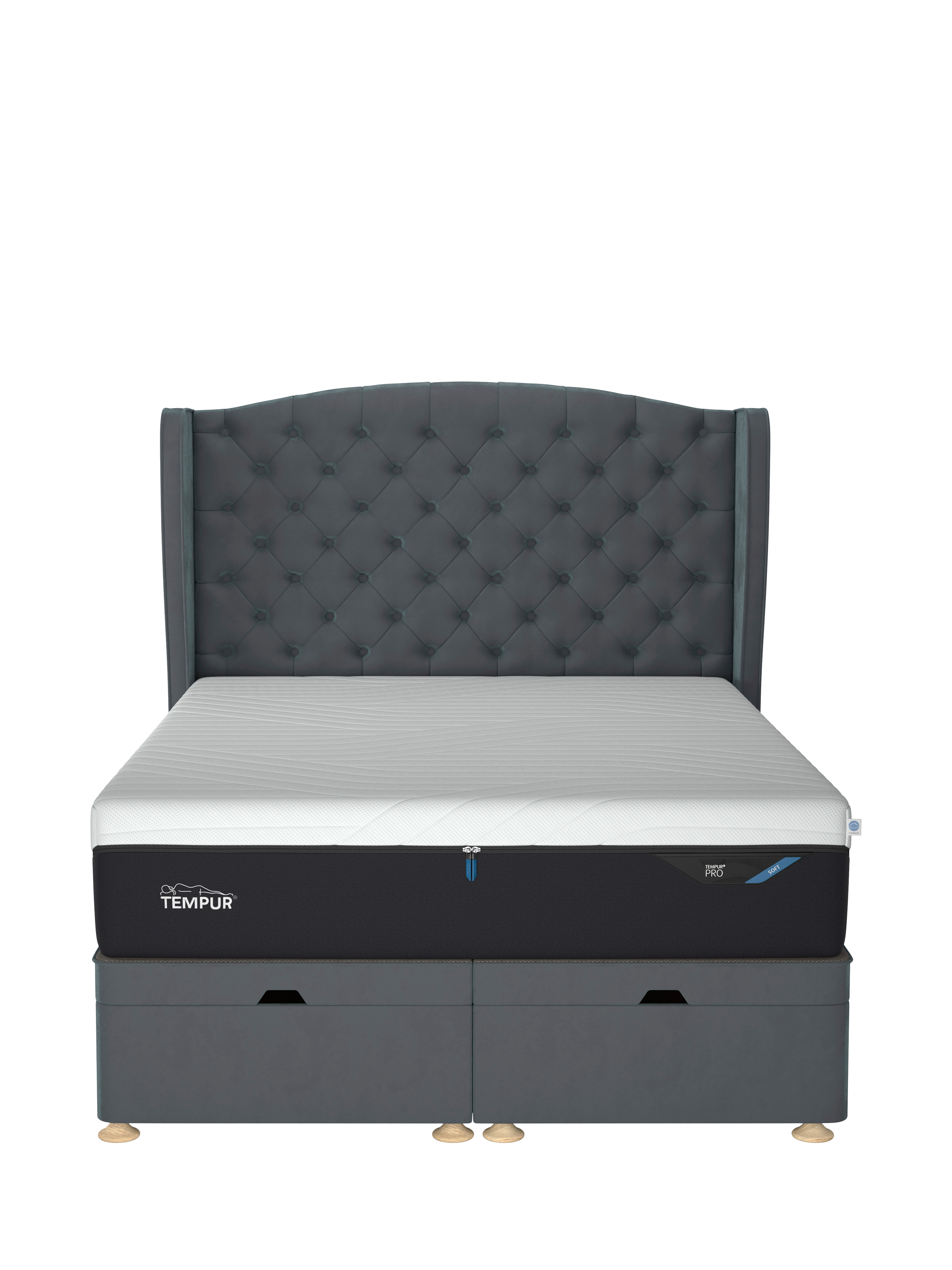 A TEMPUR® Suffolk Ottoman Bed is great for compact living and storage. Upholstered in a selection of fabrics, convenient slot handles are cut into the foot end to make access easy. Wide-opening ottoman platform supported by 4 pistons to ensure comfortable lifting and easy access to stored items inside. TEMPUR(R) Suffolk floorstanding headboards also available in matching fabrics to truly personalise your bed.