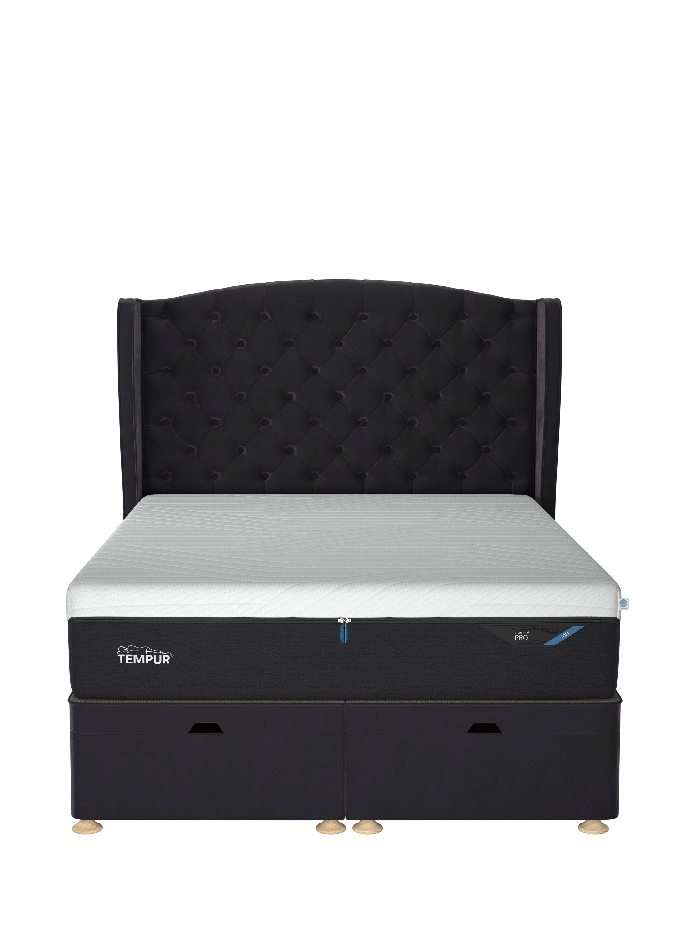 A TEMPUR® Suffolk Ottoman Bed is great for compact living and storage. Upholstered in a selection of fabrics, convenient slot handles are cut into the foot end to make access easy. Wide-opening ottoman platform supported by 4 pistons to ensure comfortable lifting and easy access to stored items inside. TEMPUR(R) Suffolk floorstanding headboards also available in matching fabrics to truly personalise your bed.