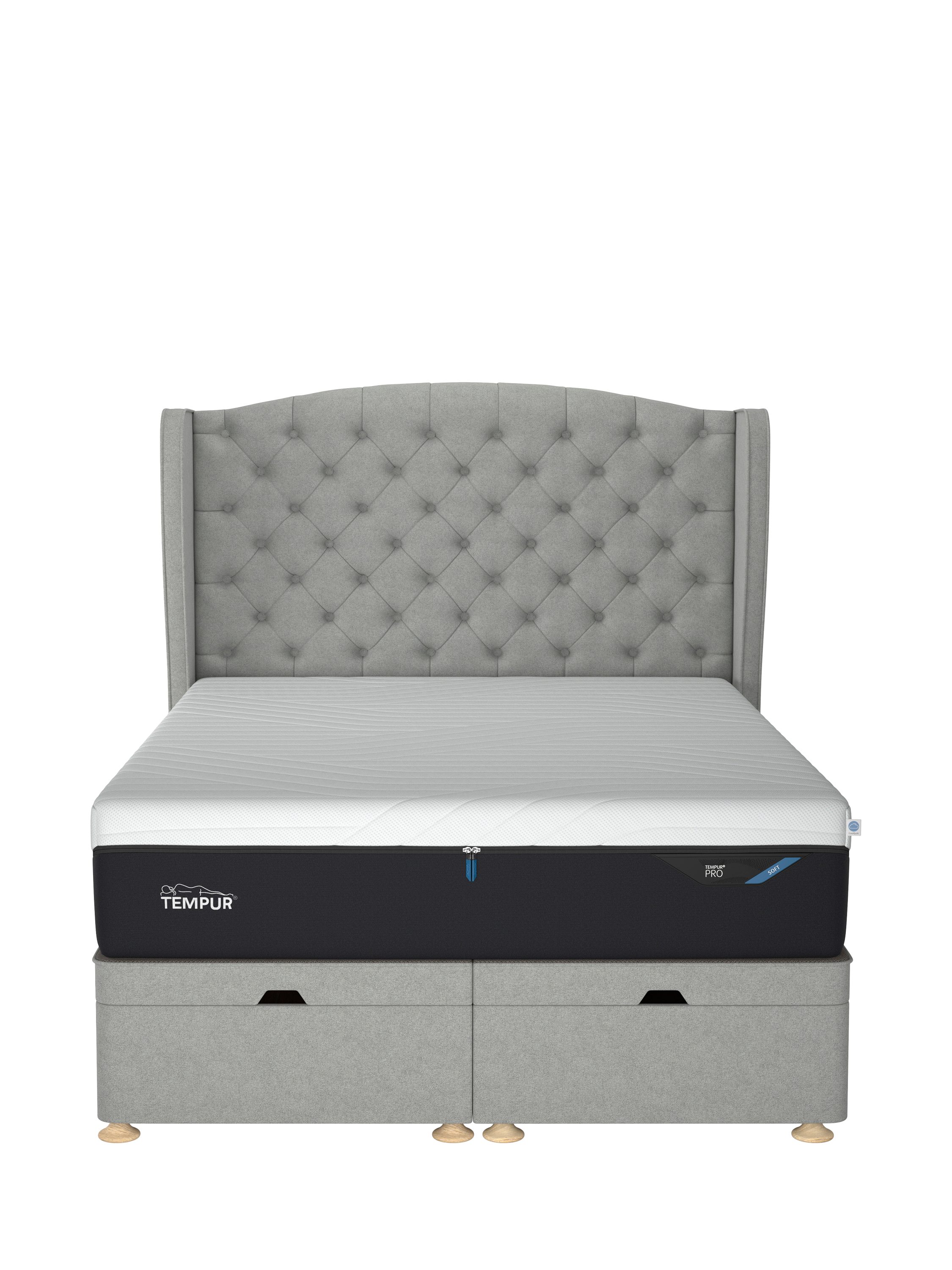 A TEMPUR® Suffolk Ottoman Bed is great for compact living and storage. Upholstered in a selection of fabrics, convenient slot handles are cut into the foot end to make access easy. Wide-opening ottoman platform supported by 4 pistons to ensure comfortable lifting and easy access to stored items inside. TEMPUR(R) Suffolk floorstanding headboards also available in matching fabrics to truly personalise your bed.