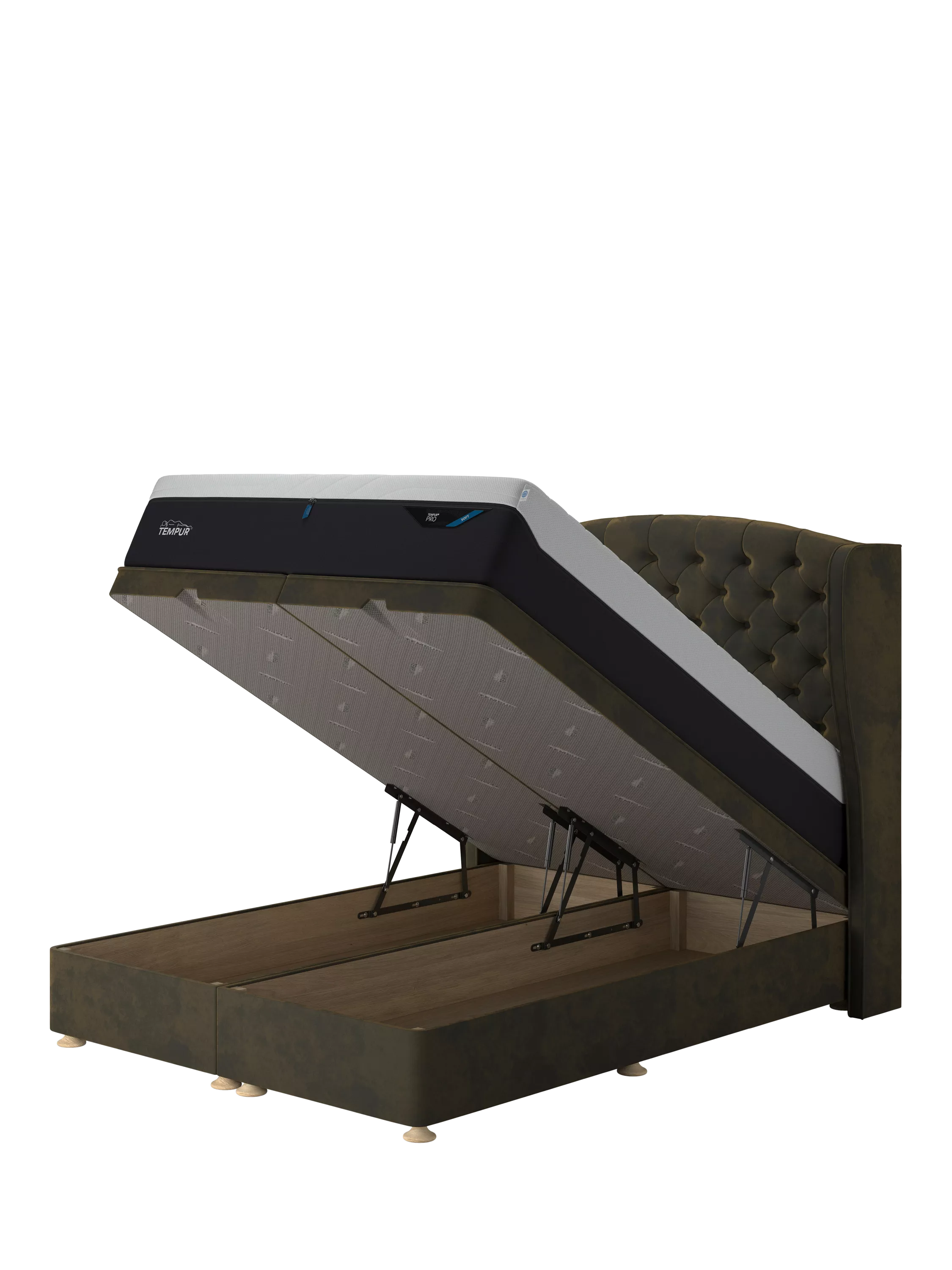 A TEMPUR® Suffolk Ottoman Bed is great for compact living and storage. Upholstered in a selection of fabrics, convenient slot handles are cut into the foot end to make access easy. Wide-opening ottoman platform supported by 4 pistons to ensure comfortable lifting and easy access to stored items inside. TEMPUR(R) Suffolk floorstanding headboards also available in matching fabrics to truly personalise your bed.