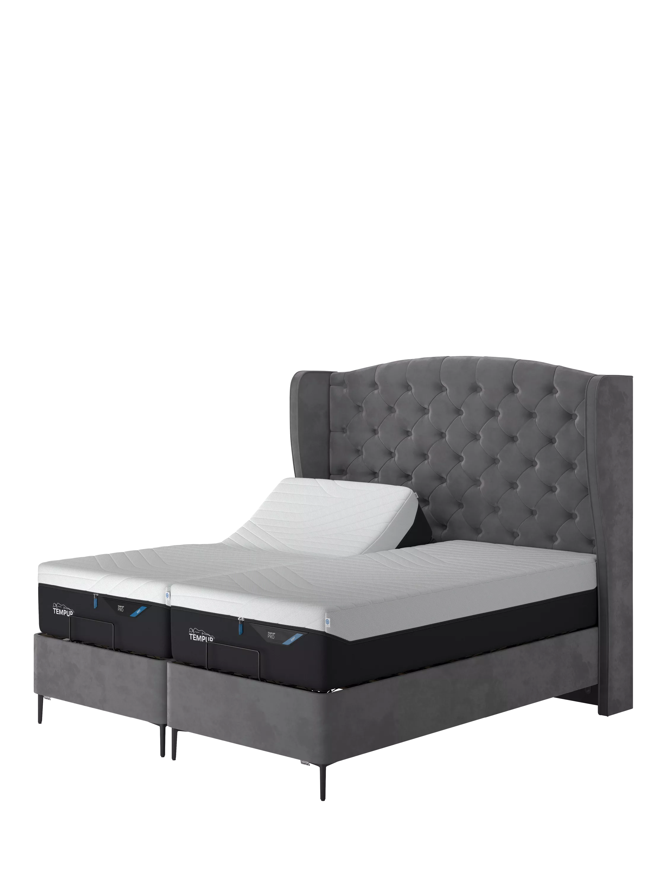 TEMPUR®Suffolk Slim Divan Adjustable Disc Upholstered Bed, King Size, Armour