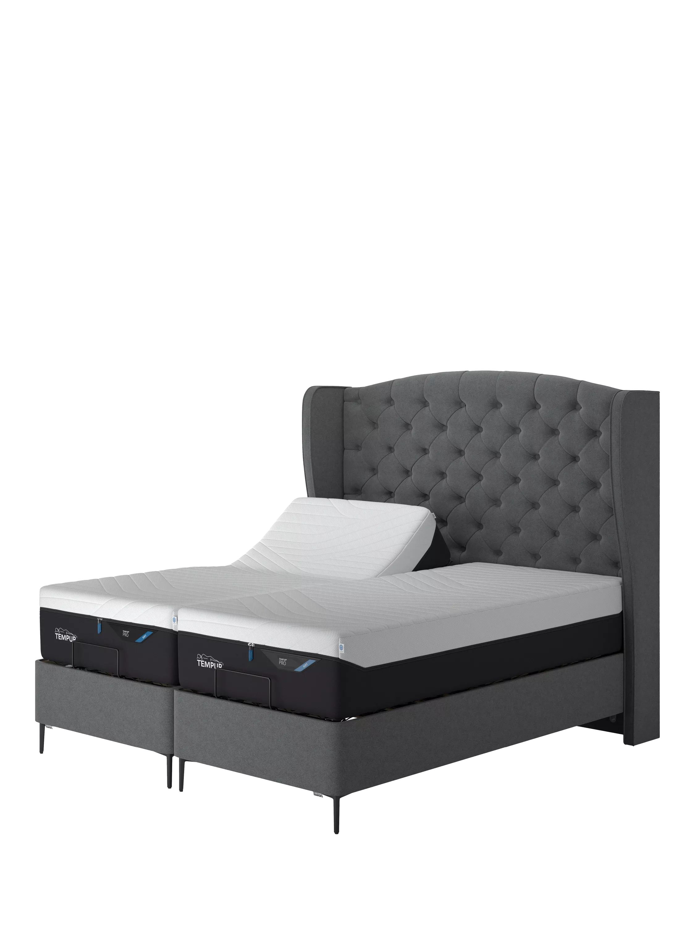TEMPUR®Suffolk Slim Divan Adjustable Disc Upholstered Bed, King Size, Dark Grey