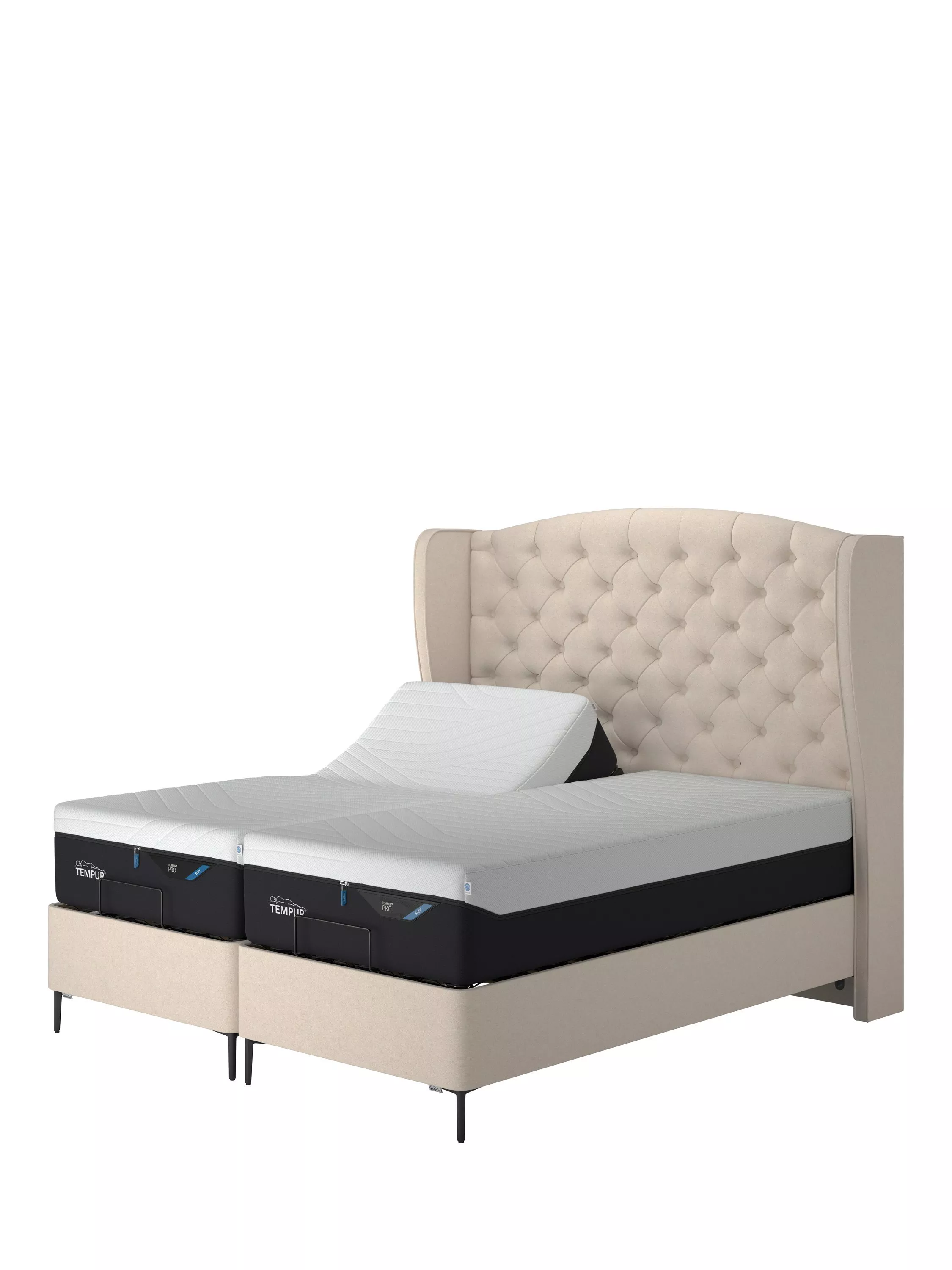 TEMPUR®Suffolk Slim Divan Adjustable Disc Upholstered Bed, King Size, Natural