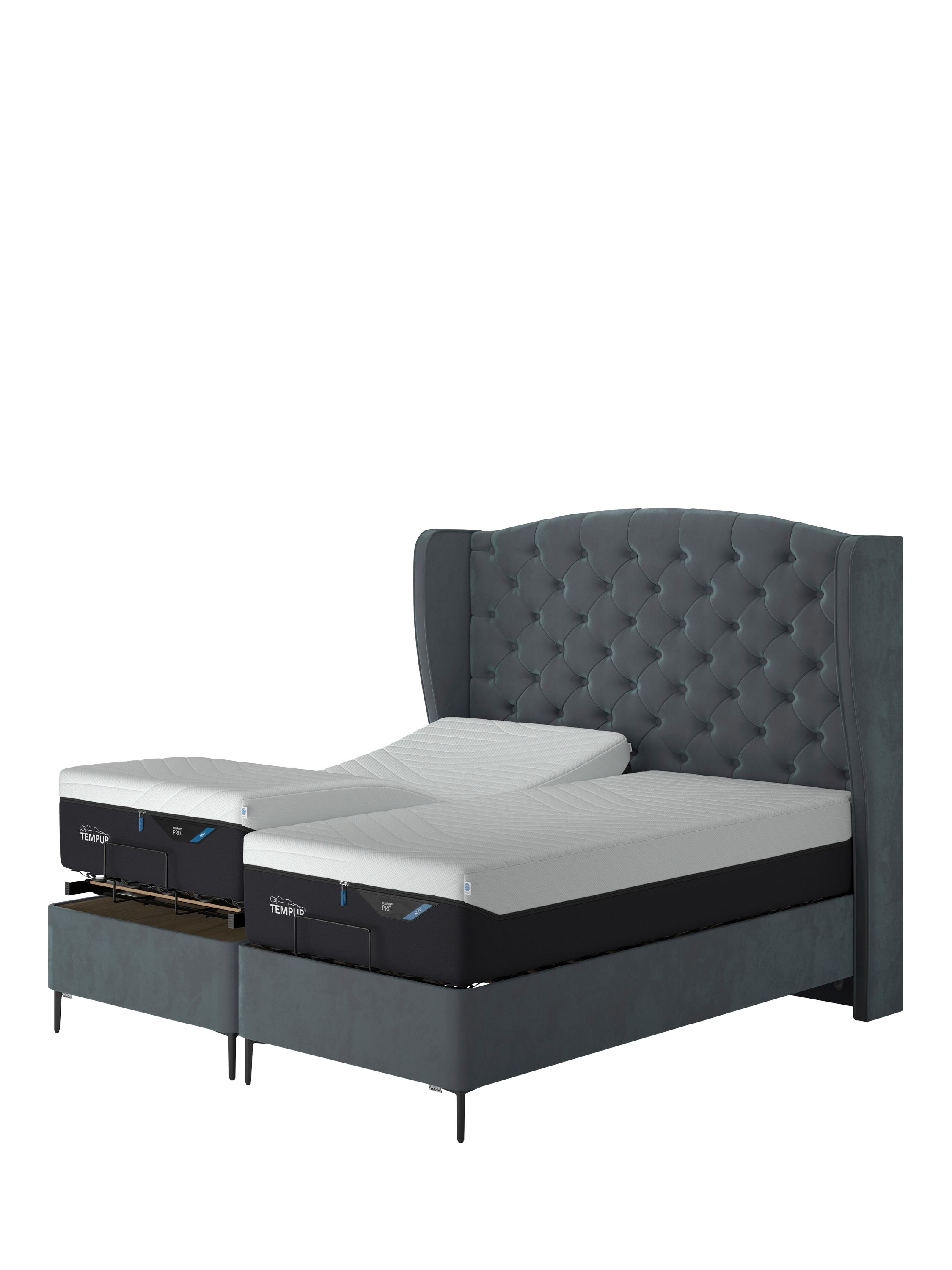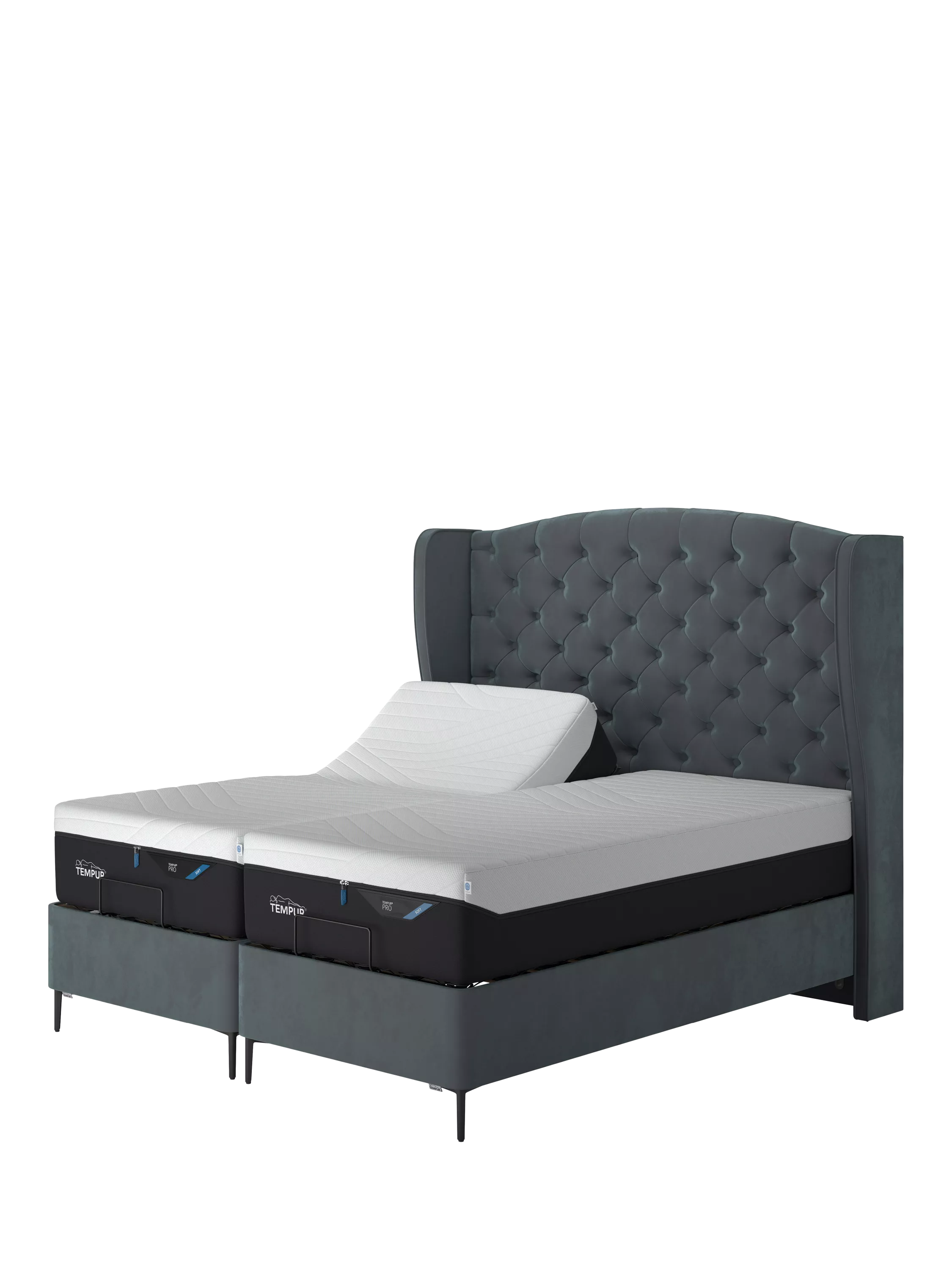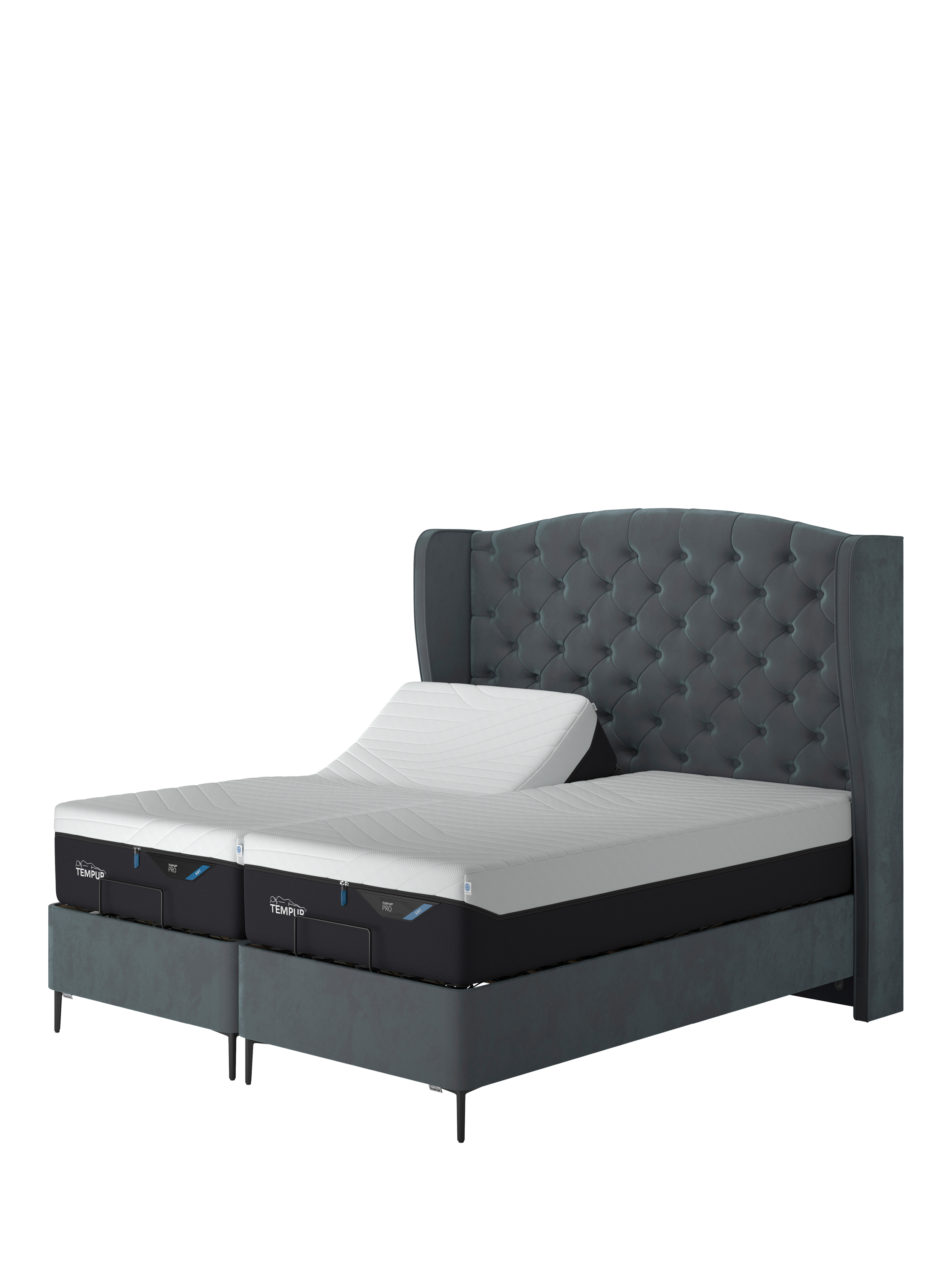 TEMPUR®Suffolk Slim Divan Adjustable Disc Upholstered Bed, Single, Aqua