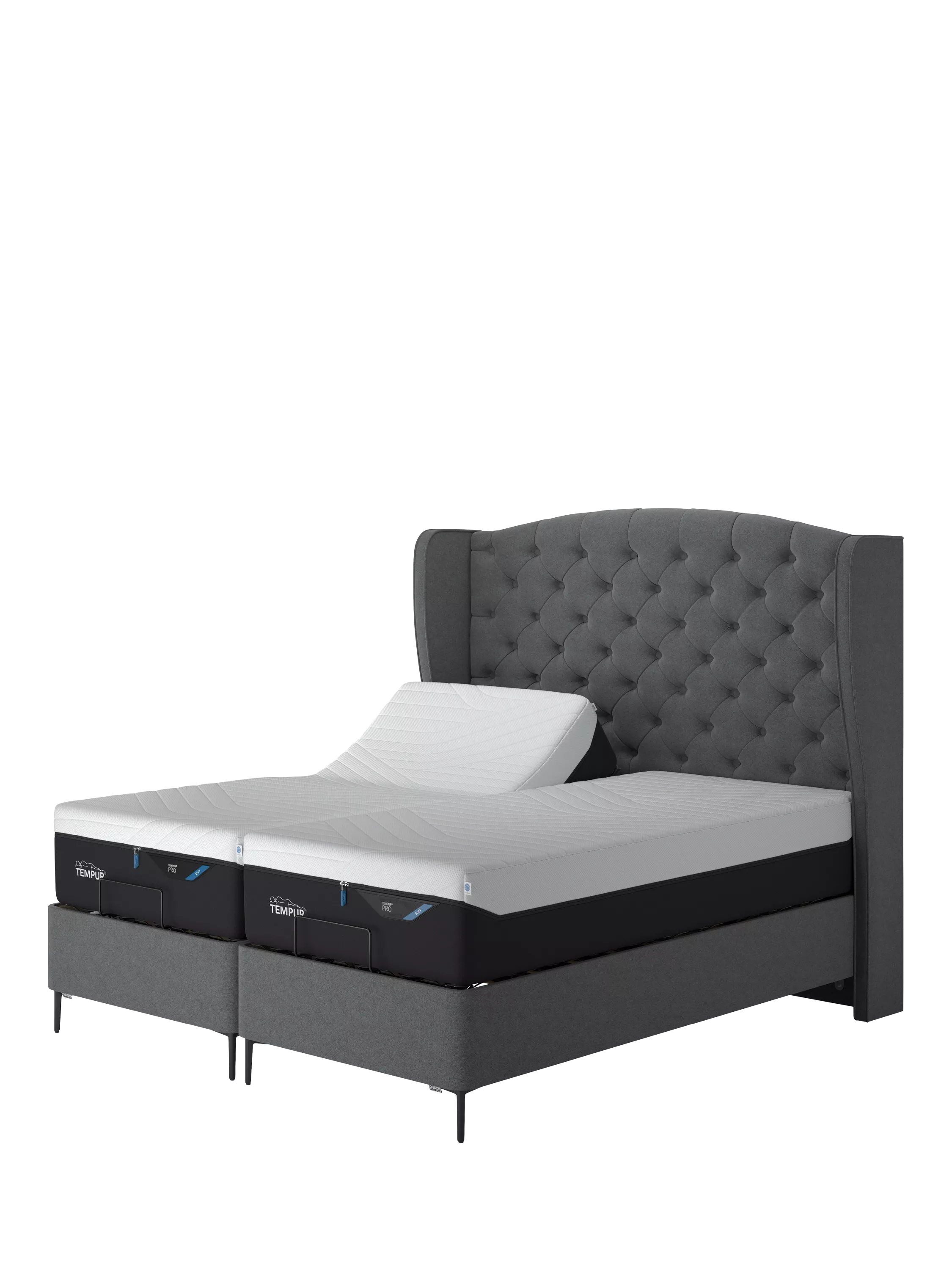 TEMPUR®213TEMPUR® Suffolk Slim Divan Adjustable Disc Upholstered Bed, Single, Dark Grey