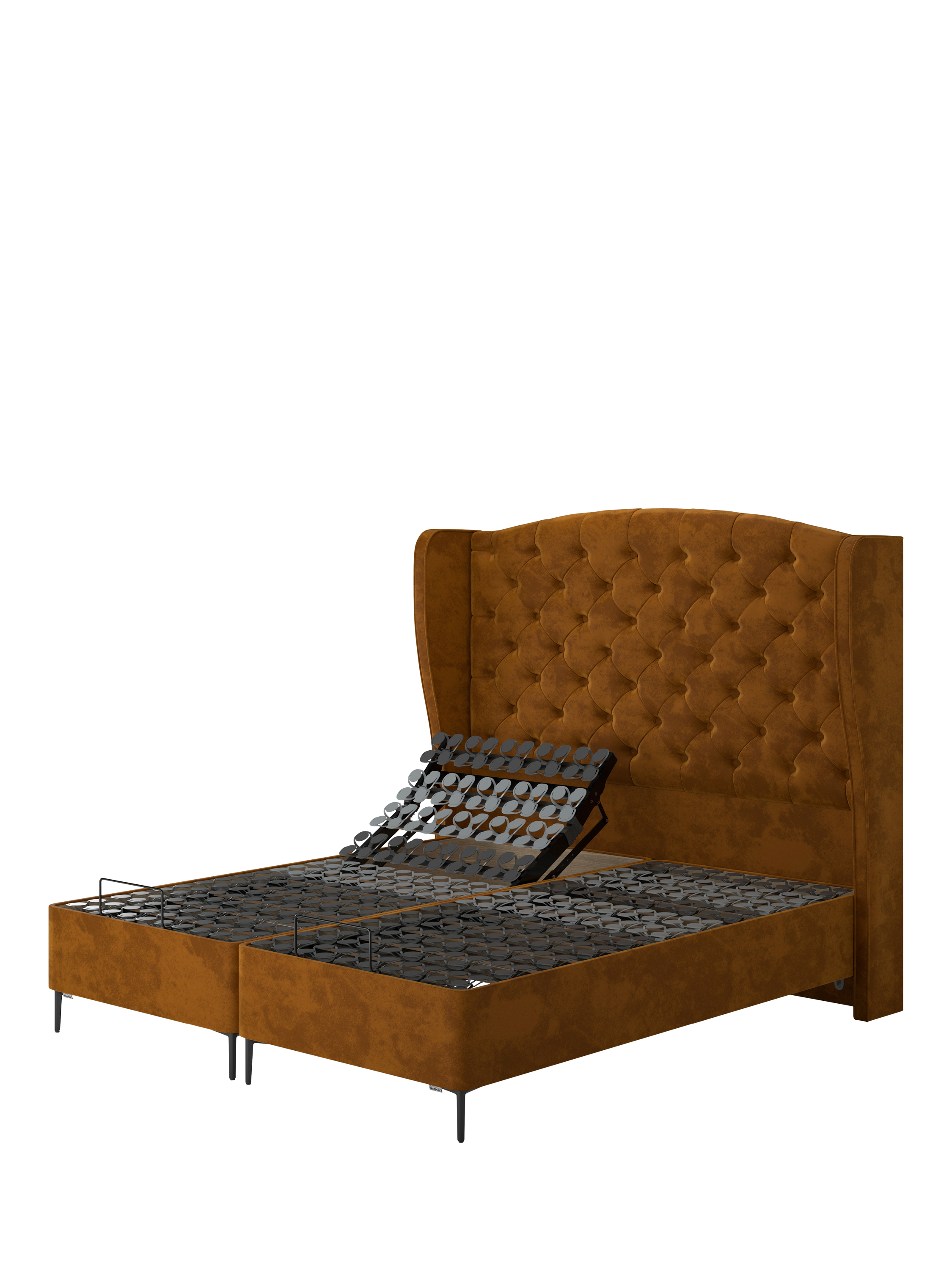 The Suffolk Slim Divan has an exclusive leg option: the stiletto high leg in a matte black finish for a chic, modern look. Customise your bed and choose from a range of headboards and fabrics.
