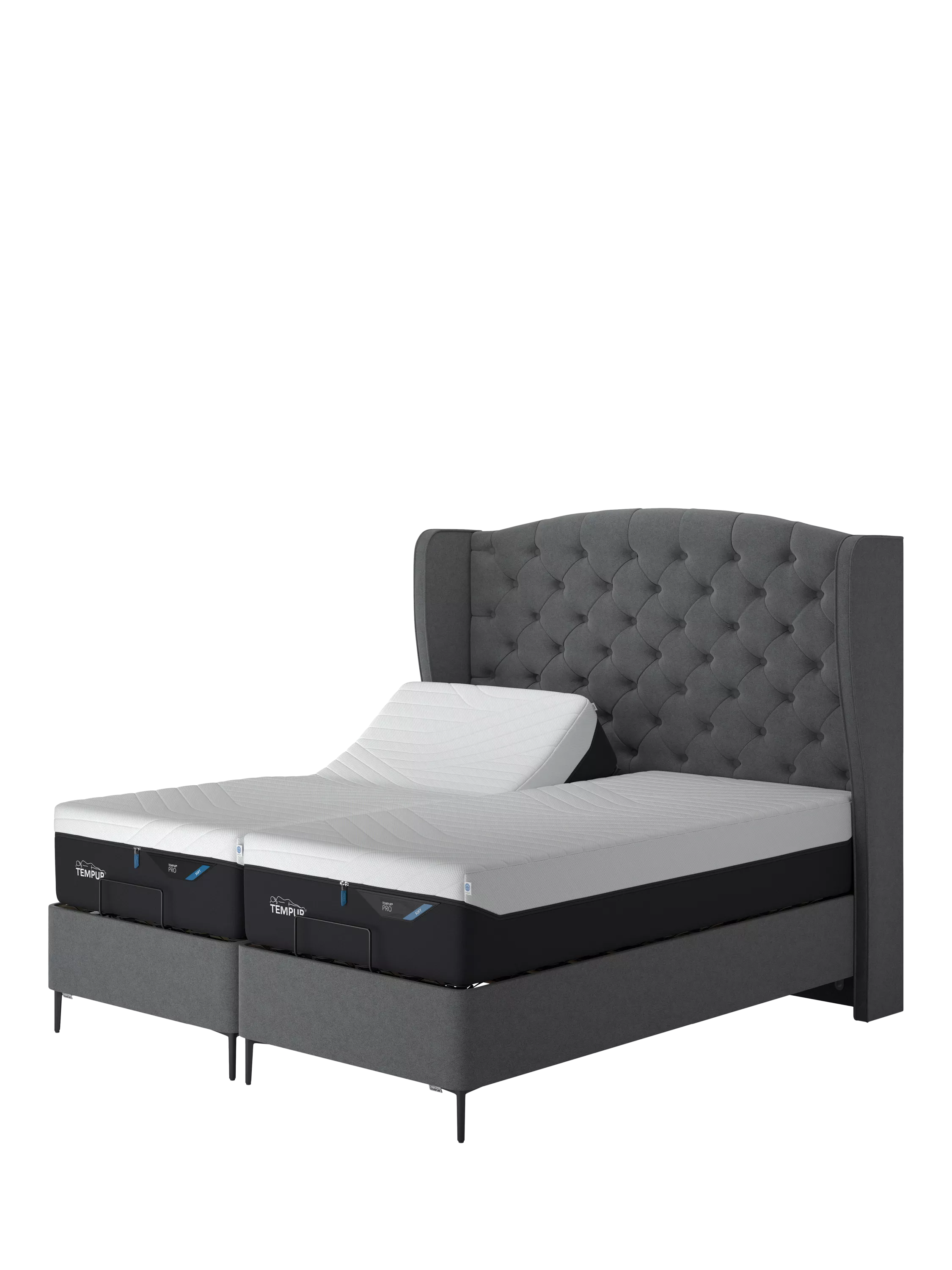 TEMPUR®Suffolk Slim Divan Adjustable Disc Upholstered Bed, Super King Size, Dark Grey