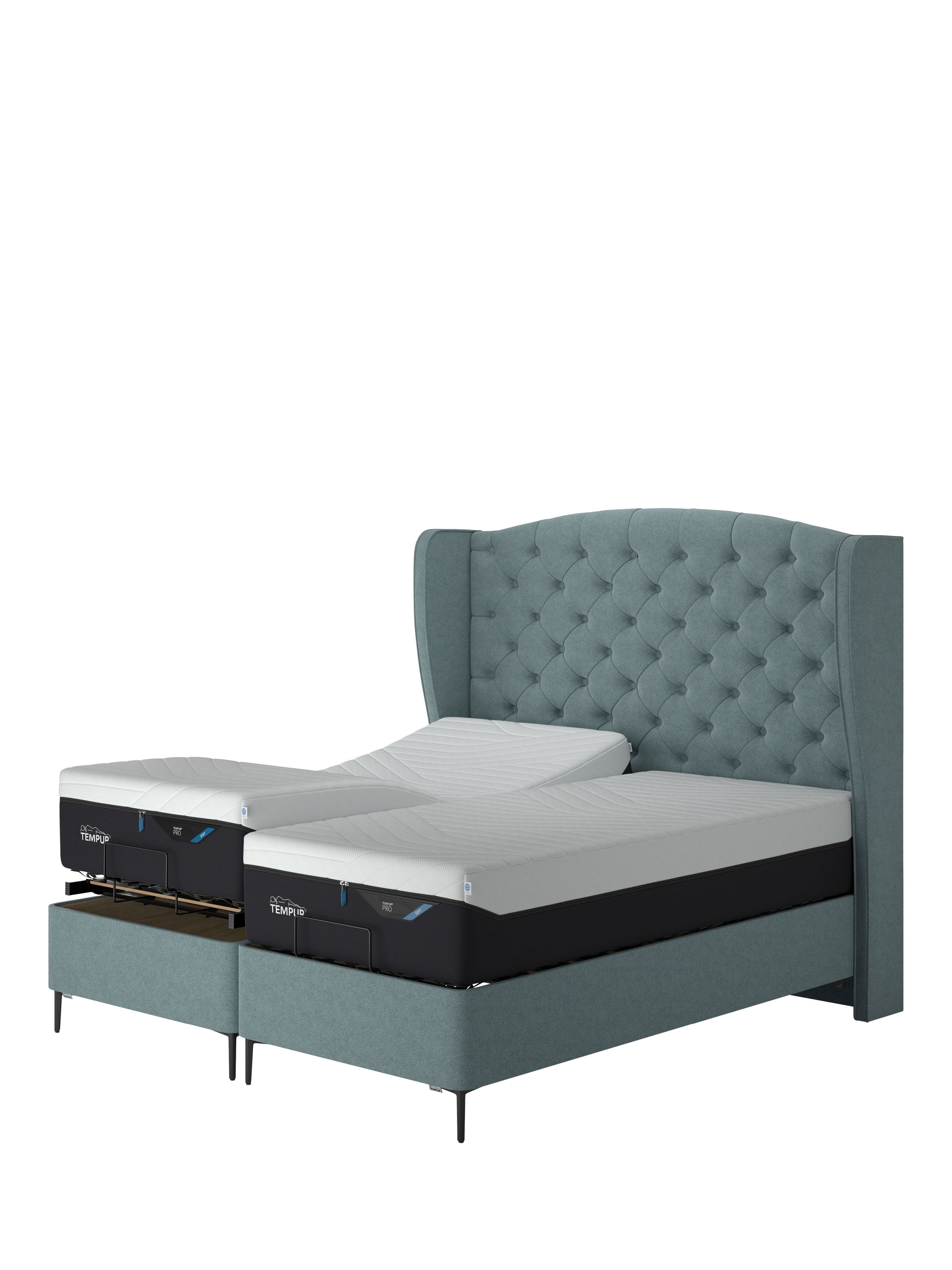 TEMPUR®Suffolk Slim Divan Adjustable Disc Upholstered Bed, Super King Size, Teal