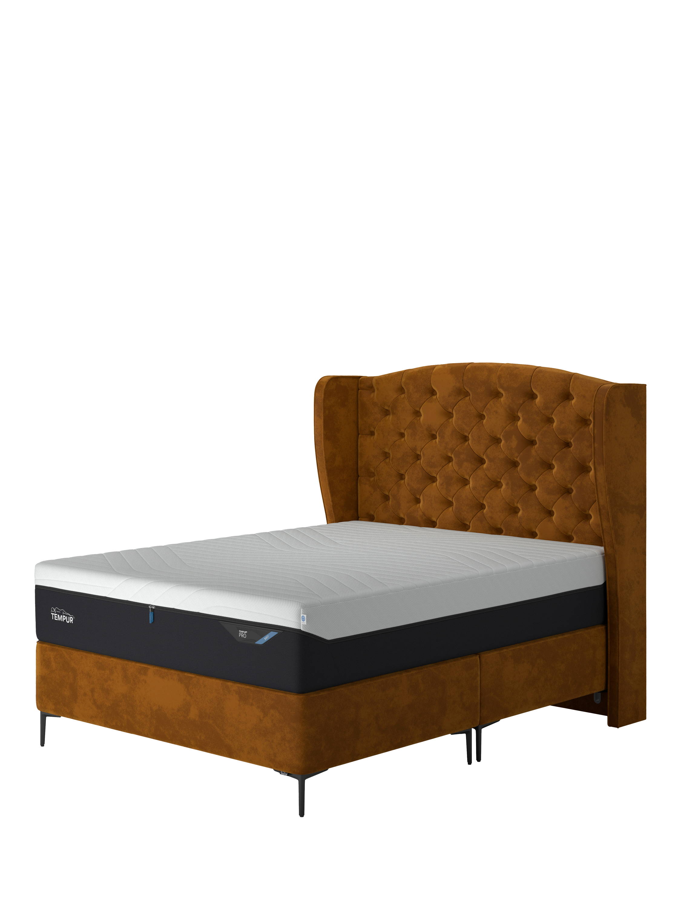 The Suffolk Slim divan from TEMPUR® provides a high-quality, non-sprung base for your mattress. It's designed with sleek, stiletto-shaped matt metal legs that will create a feeling of space in your bedroom and help it to feel larger, while offering a more modern look. Available in a range of fabrics and colours to suit every bedroom. Mattresses and headboards can be purchased separately.