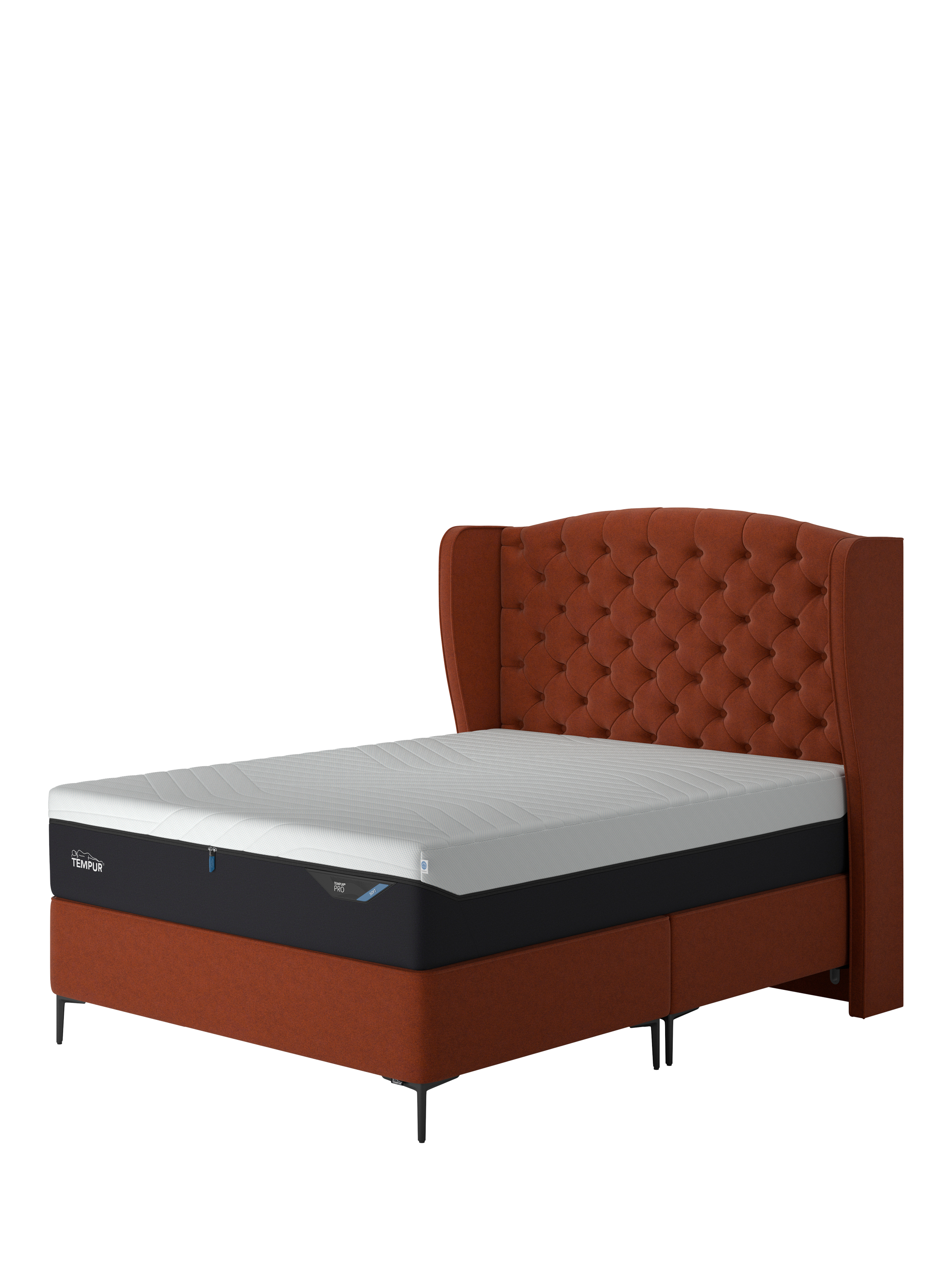 The Suffolk Slim divan from TEMPUR® provides a high-quality, non-sprung base for your mattress. It's designed with sleek, stiletto-shaped matt metal legs that will create a feeling of space in your bedroom and help it to feel larger, while offering a more modern look. Available in a range of fabrics and colours to suit every bedroom. Mattresses and headboards can be purchased separately.