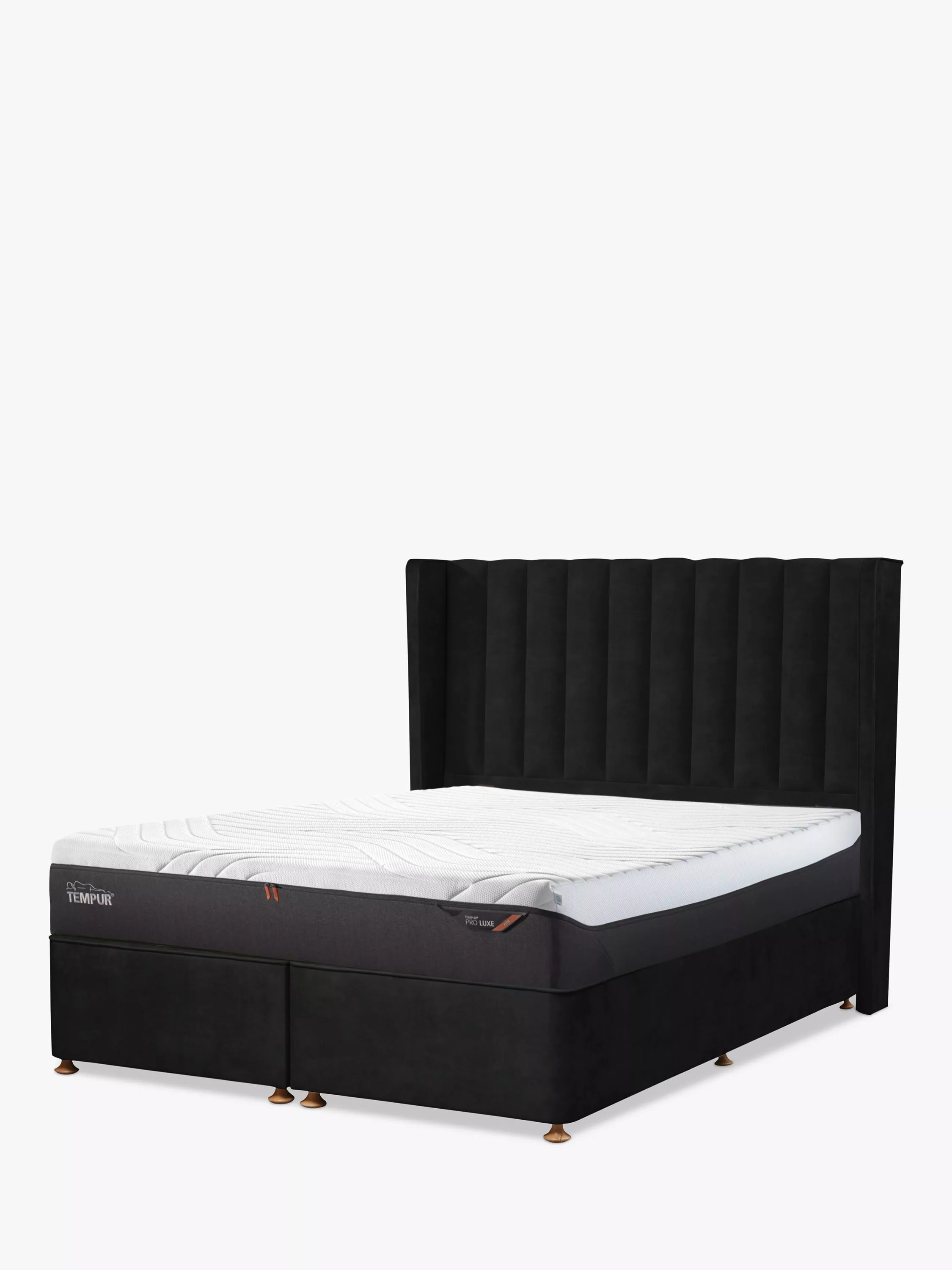 The Wickham headboard from TEMPUR® is a floor-standing winged headboard with verticle upholstery. This high-quality, premium statement headboard comes with industry-standard divan fixing holes.