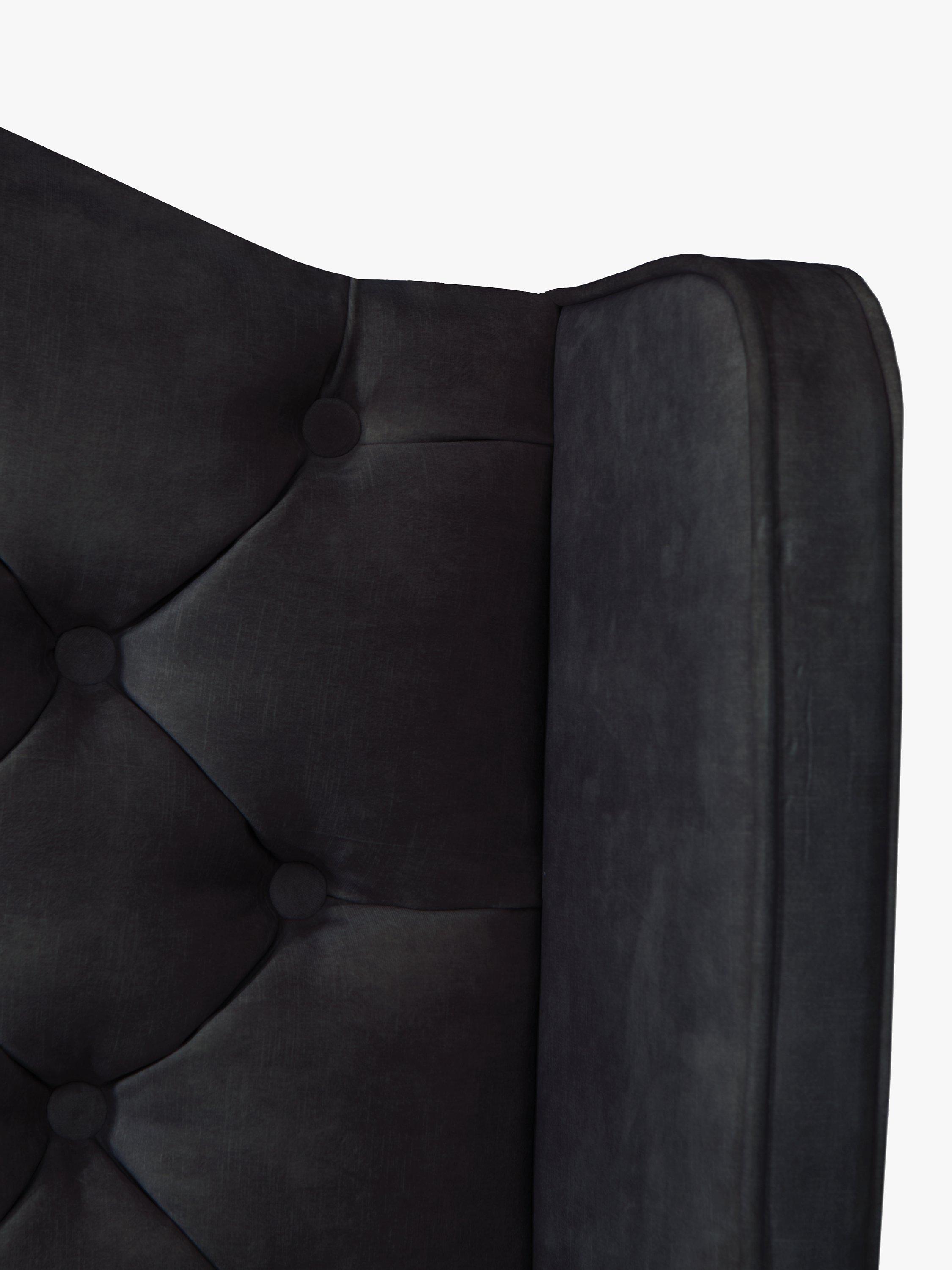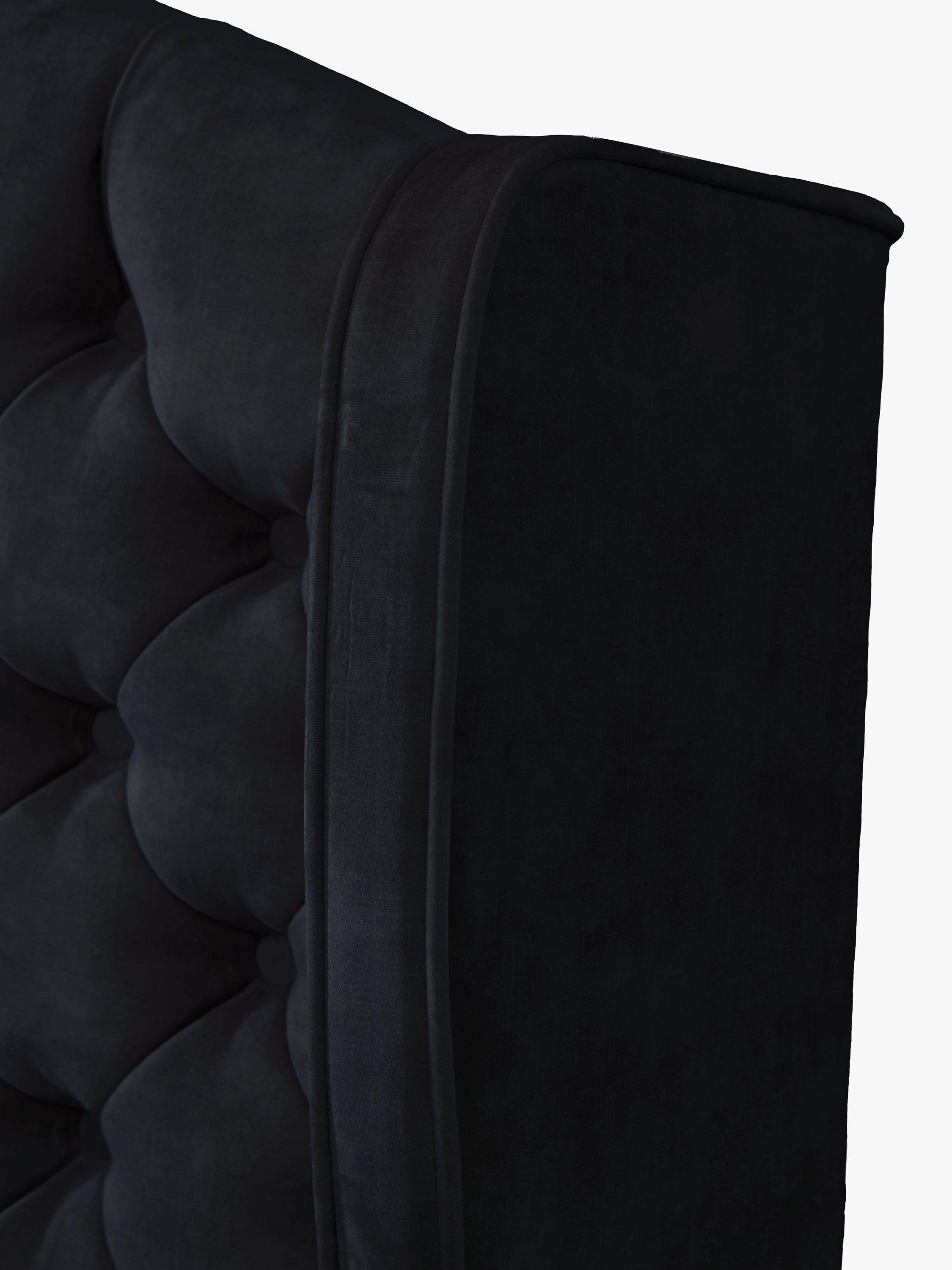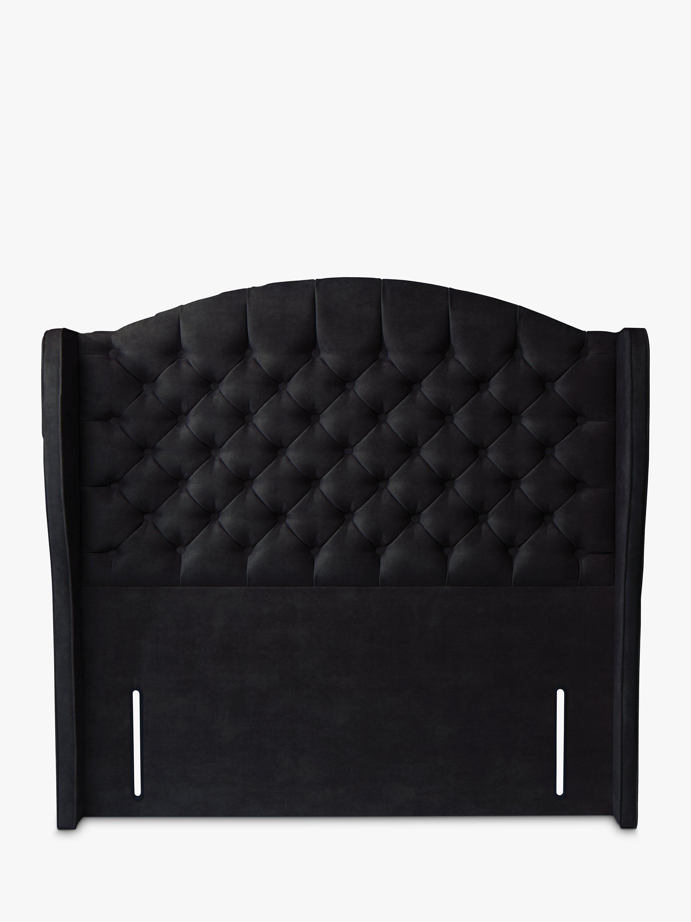 The opulent Woodbridge full-depth headboard from TEMPUR® has a winged profile, deep button upholstery and a distinctive arched top. With standard fixings on either side, this freestanding fitting will attach easily to the back of your divan base.