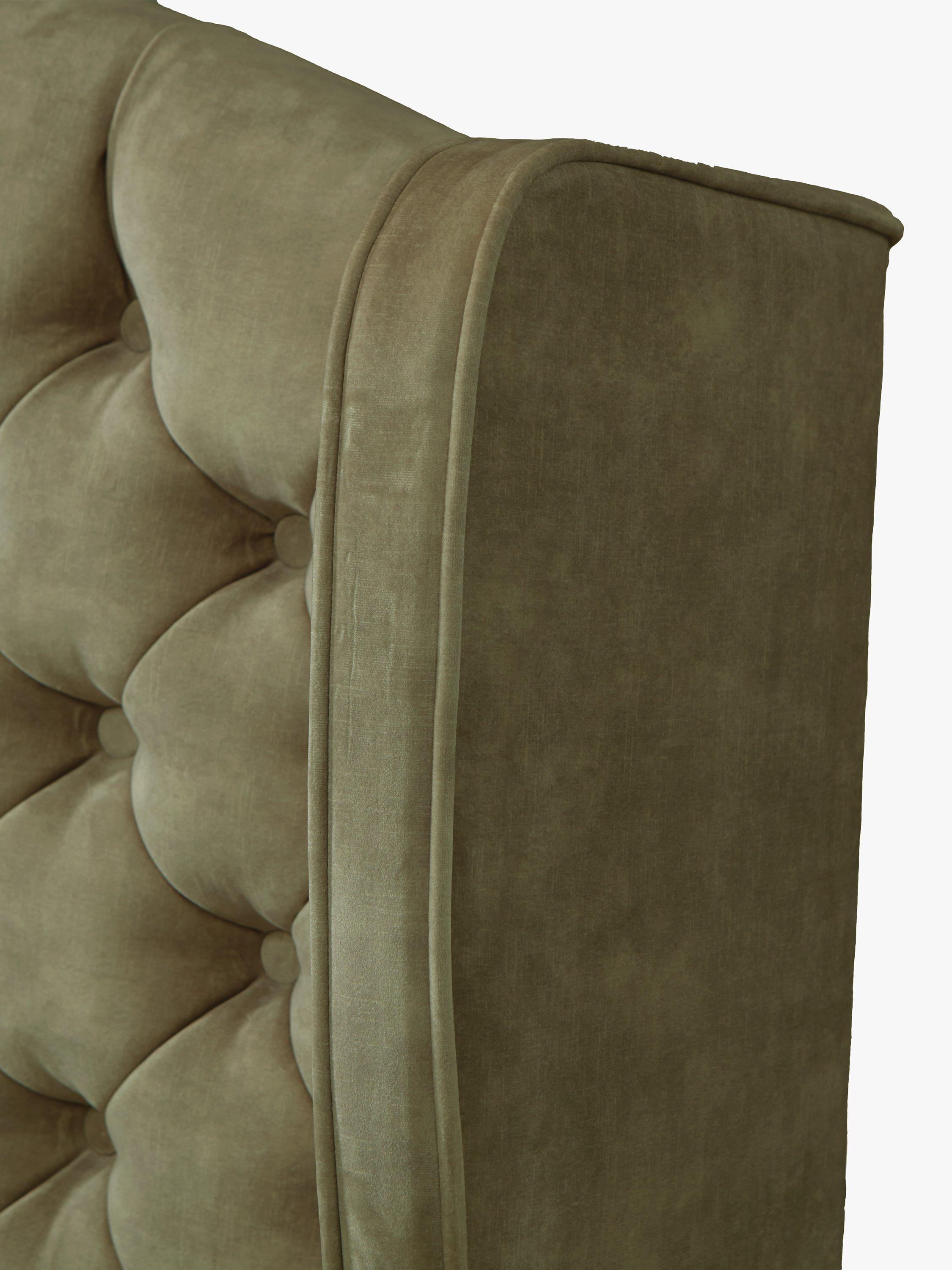 The opulent Woodbridge full-depth headboard from TEMPUR® has a winged profile, deep button upholstery and a distinctive arched top. With standard fixings on either side, this freestanding fitting will attach easily to the back of your divan base.