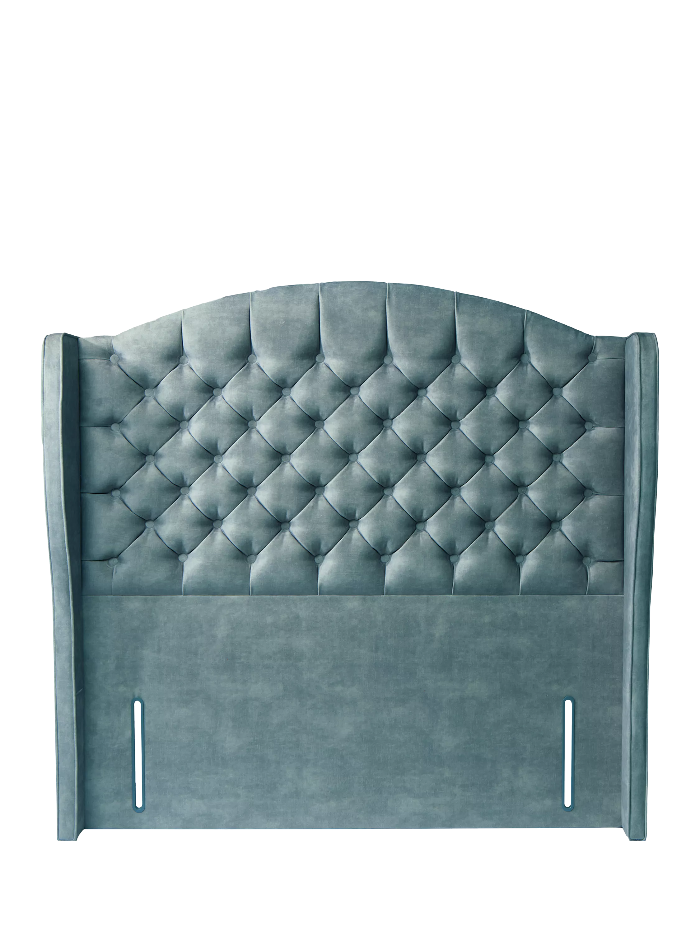 The opulent Woodbridge full-depth headboard from TEMPUR® has a winged profile, deep button upholstery and a distinctive arched top. With standard fixings on either side, this freestanding fitting will attach easily to the back of your divan base.