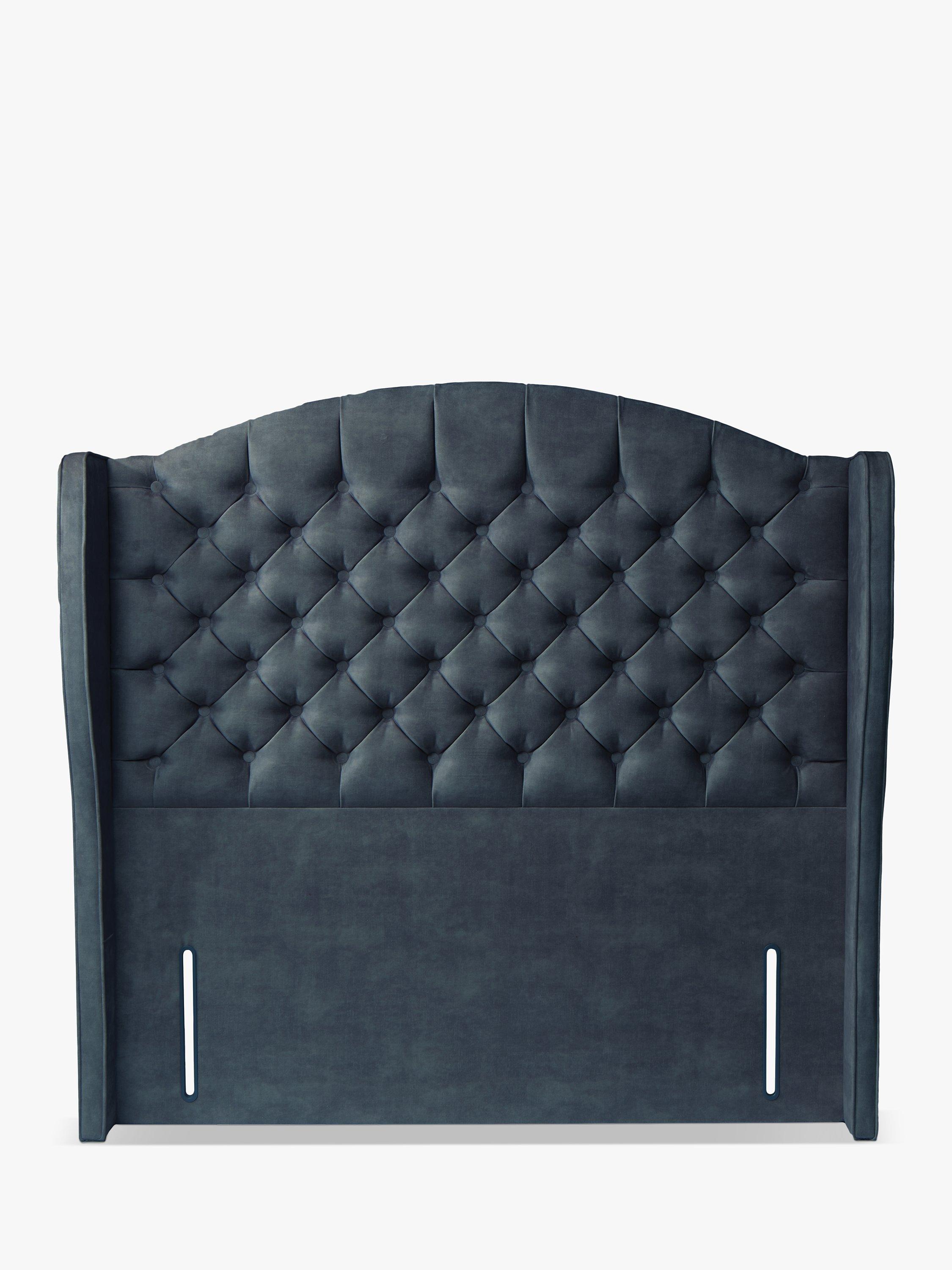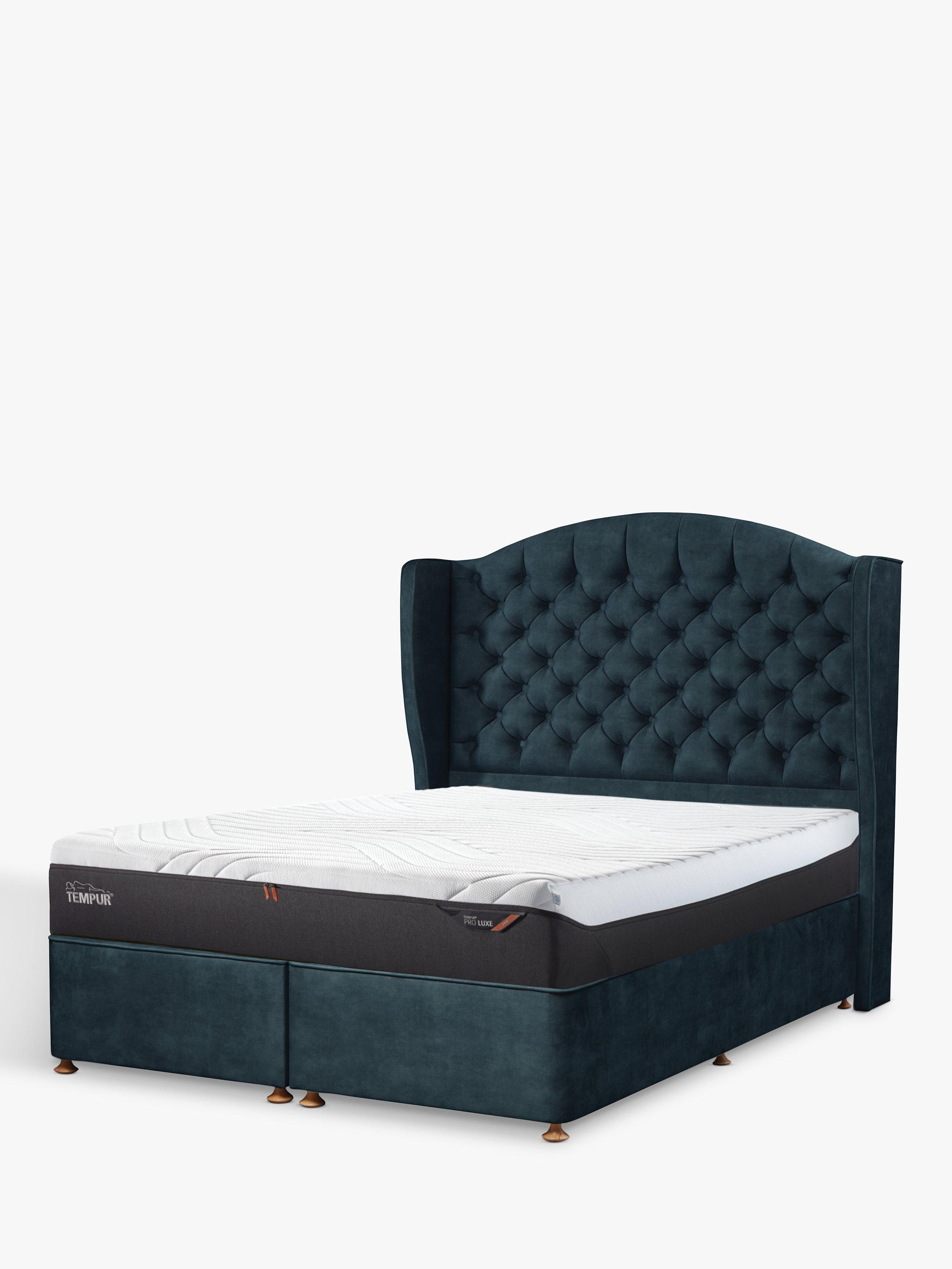 The opulent Woodbridge full-depth headboard from TEMPUR® has a winged profile, deep button upholstery and a distinctive arched top. With standard fixings on either side, this freestanding fitting will attach easily to the back of your divan base.