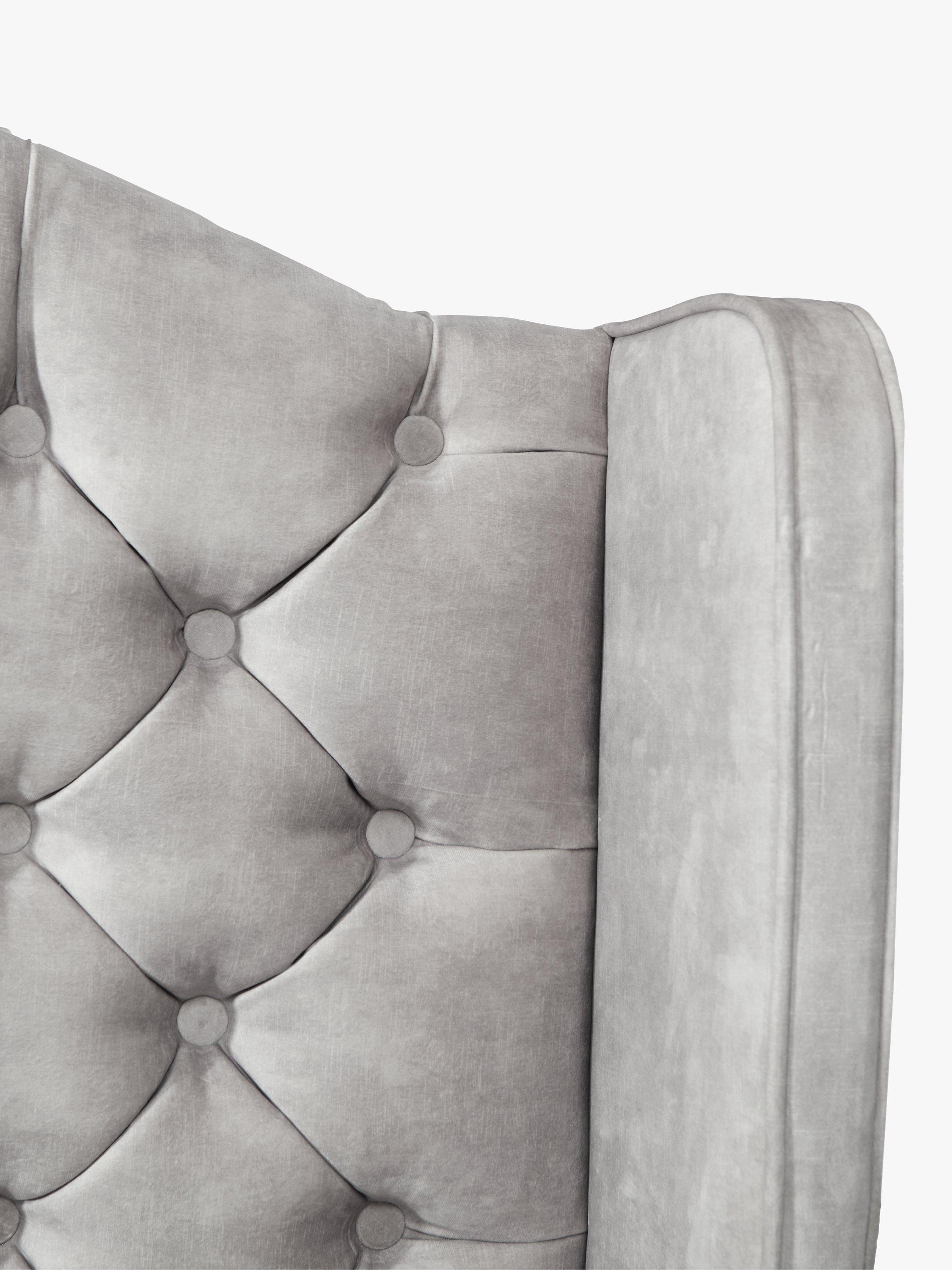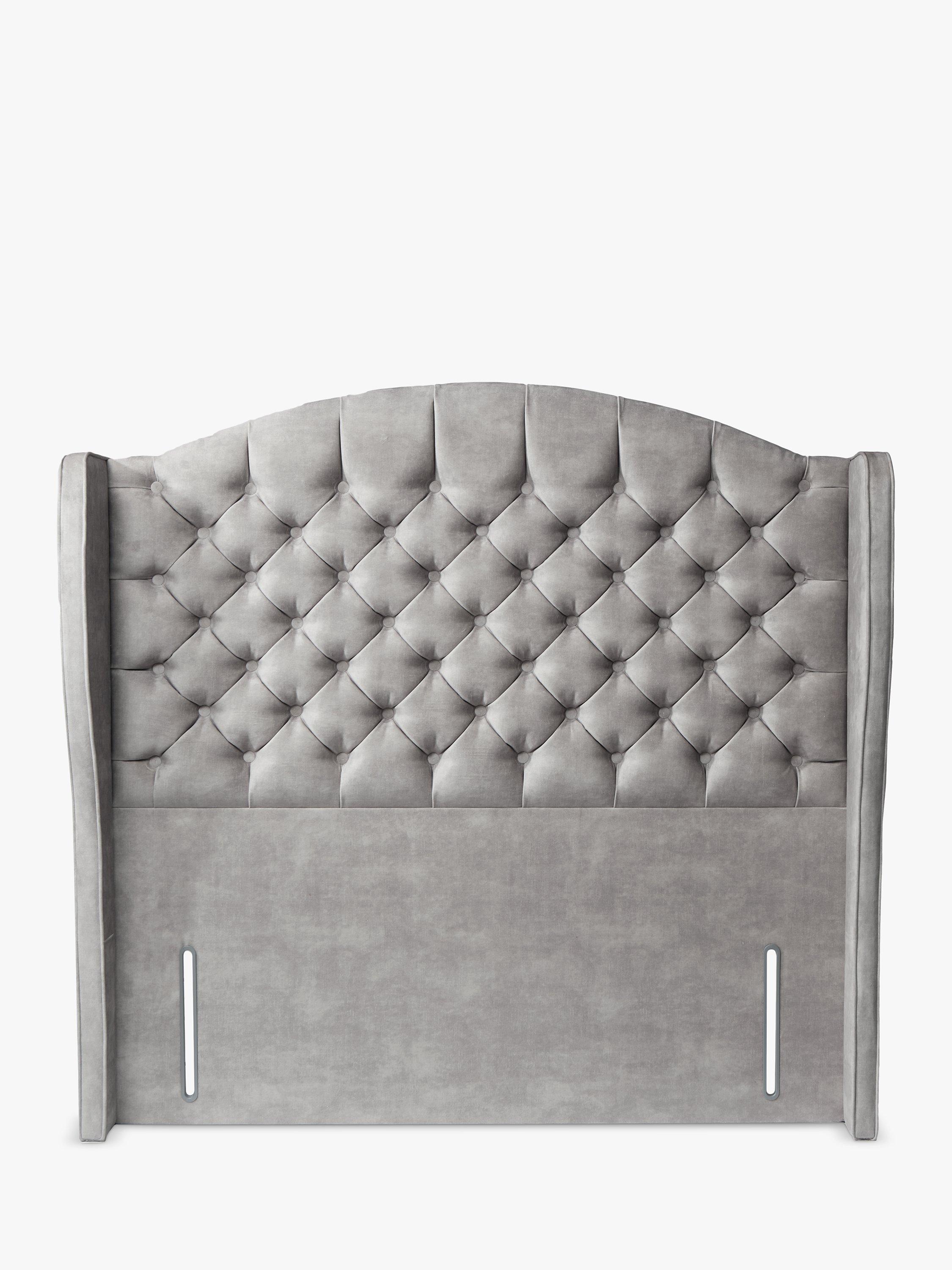 The opulent Woodbridge full-depth headboard from TEMPUR® has a winged profile, deep button upholstery and a distinctive arched top. With standard fixings on either side, this freestanding fitting will attach easily to the back of your divan base.