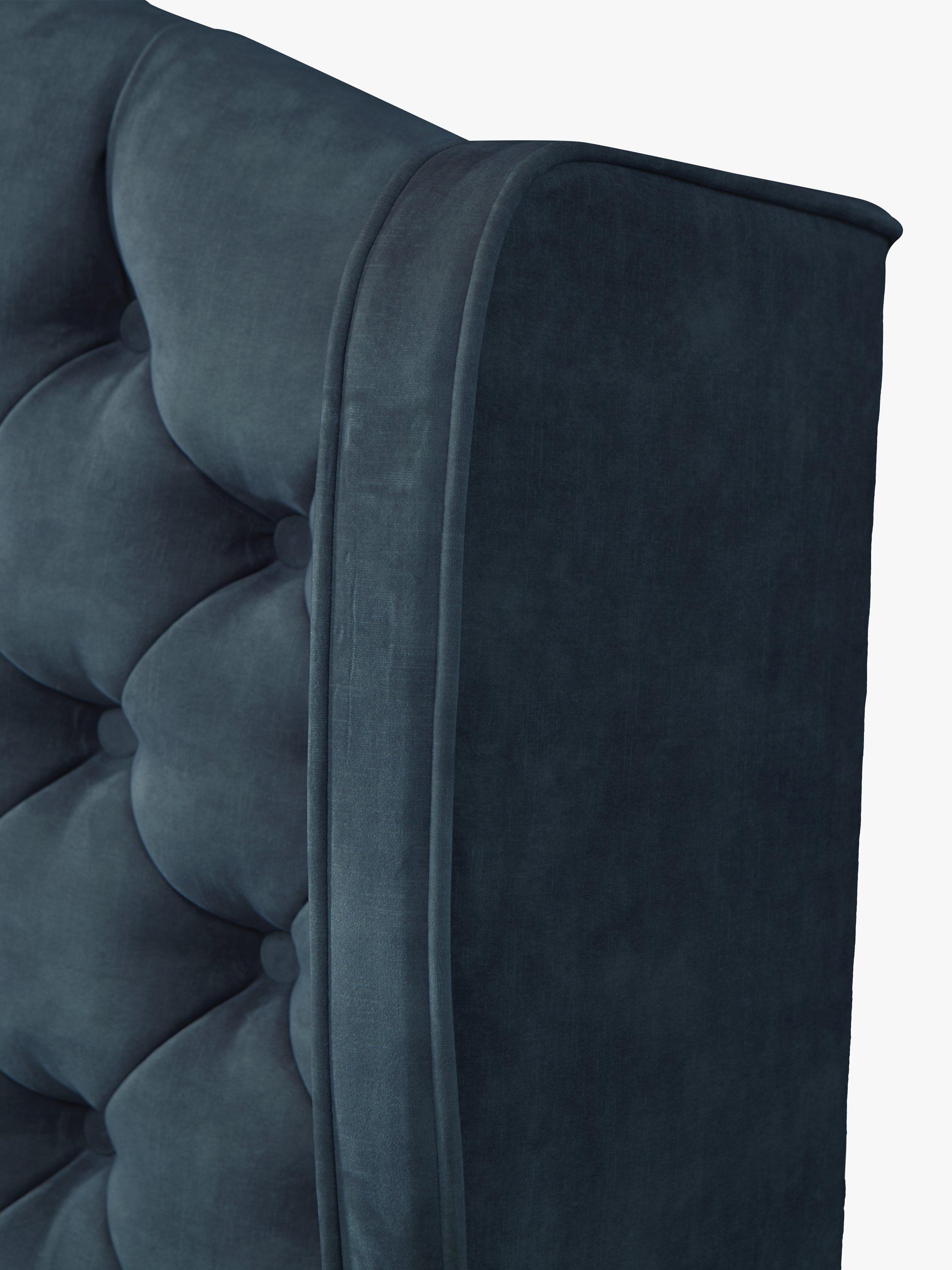 The opulent Woodbridge full-depth headboard from TEMPUR® has a winged profile, deep button upholstery and a distinctive arched top. With standard fixings on either side, this freestanding fitting will attach easily to the back of your divan base.