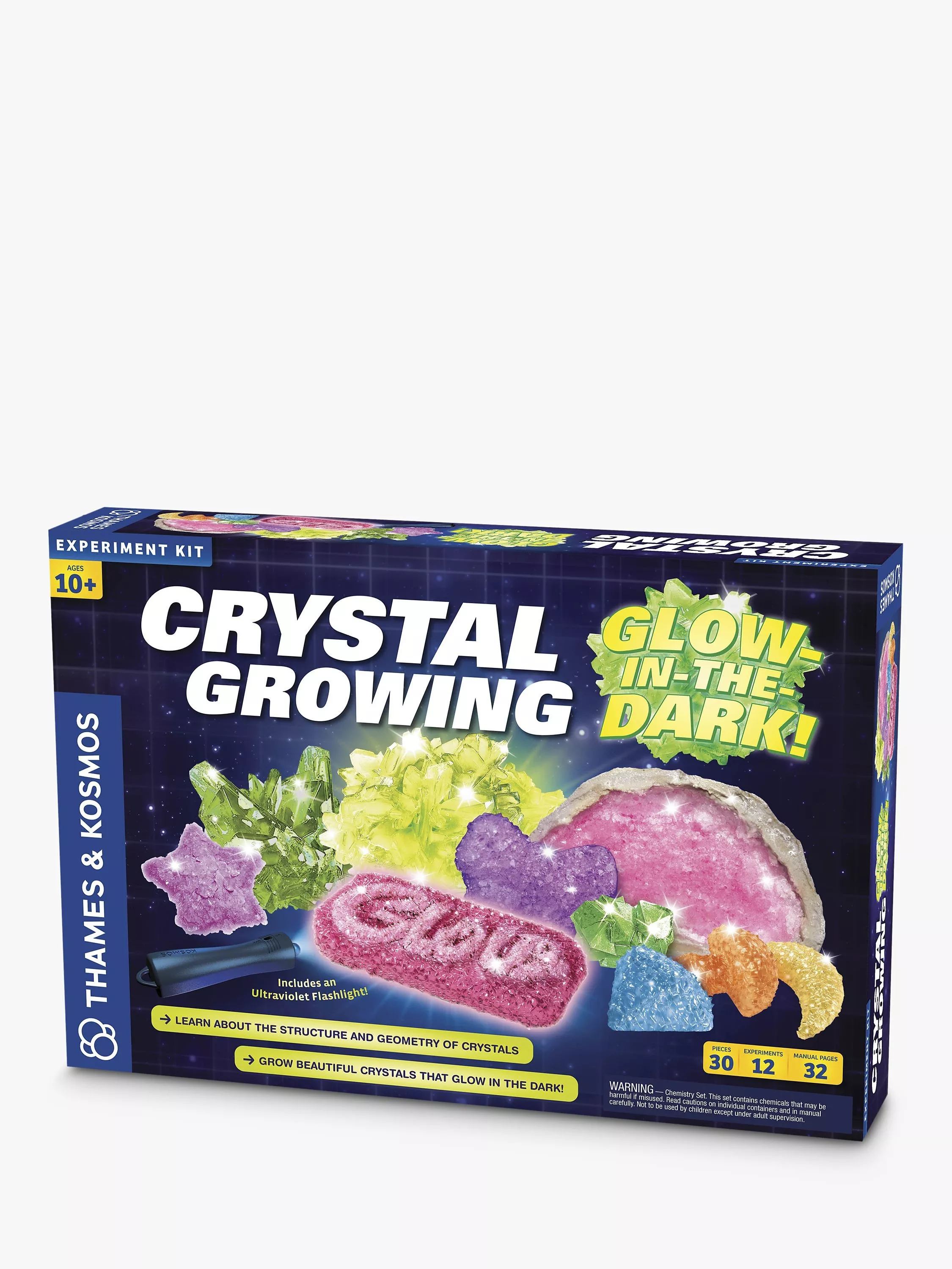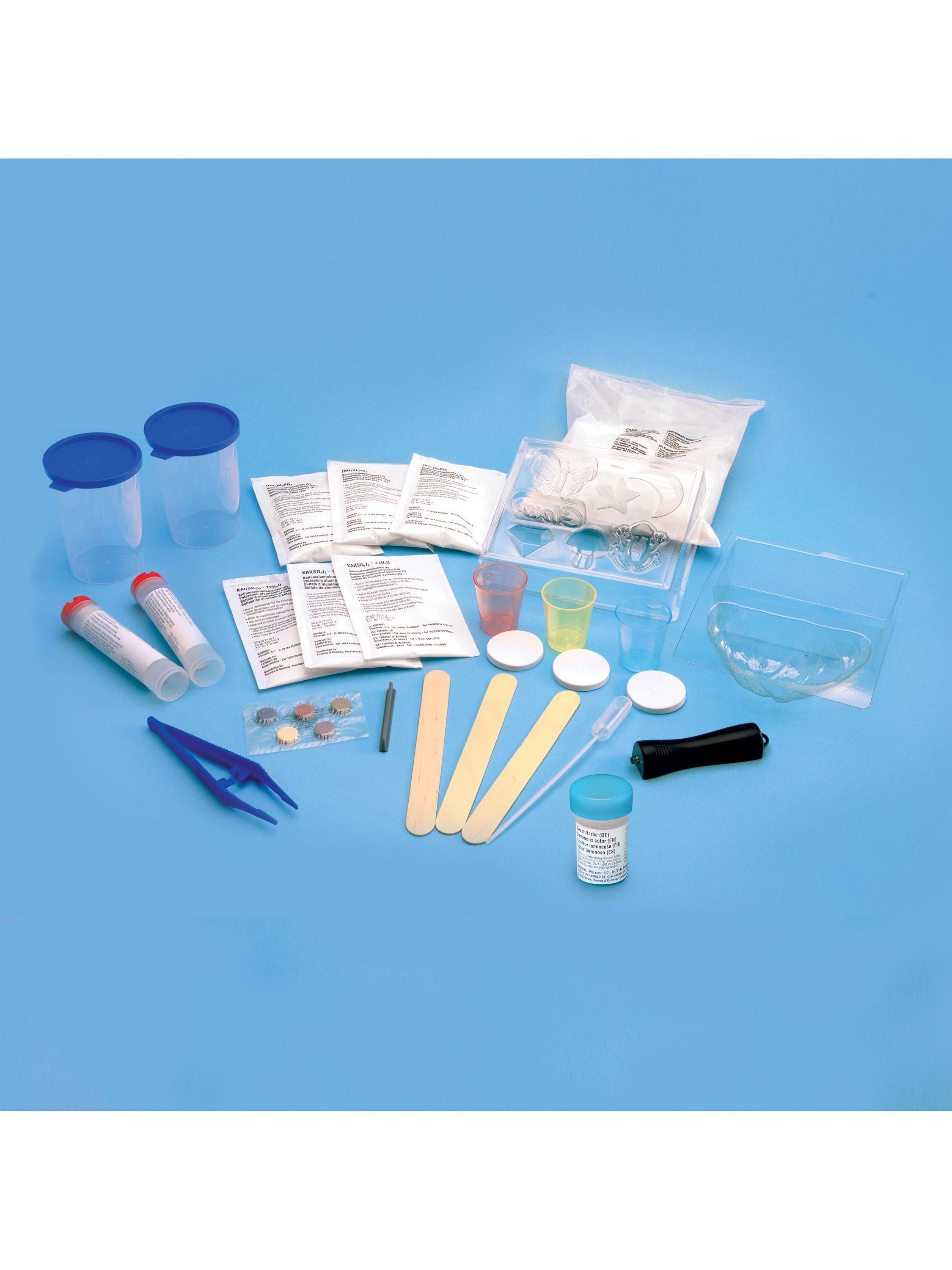 This kit is thoroughly tested and non-toxic. A full-colour, 32-page experiment manual guides your experiments in the chemistry of crystals and glowing phenomena.