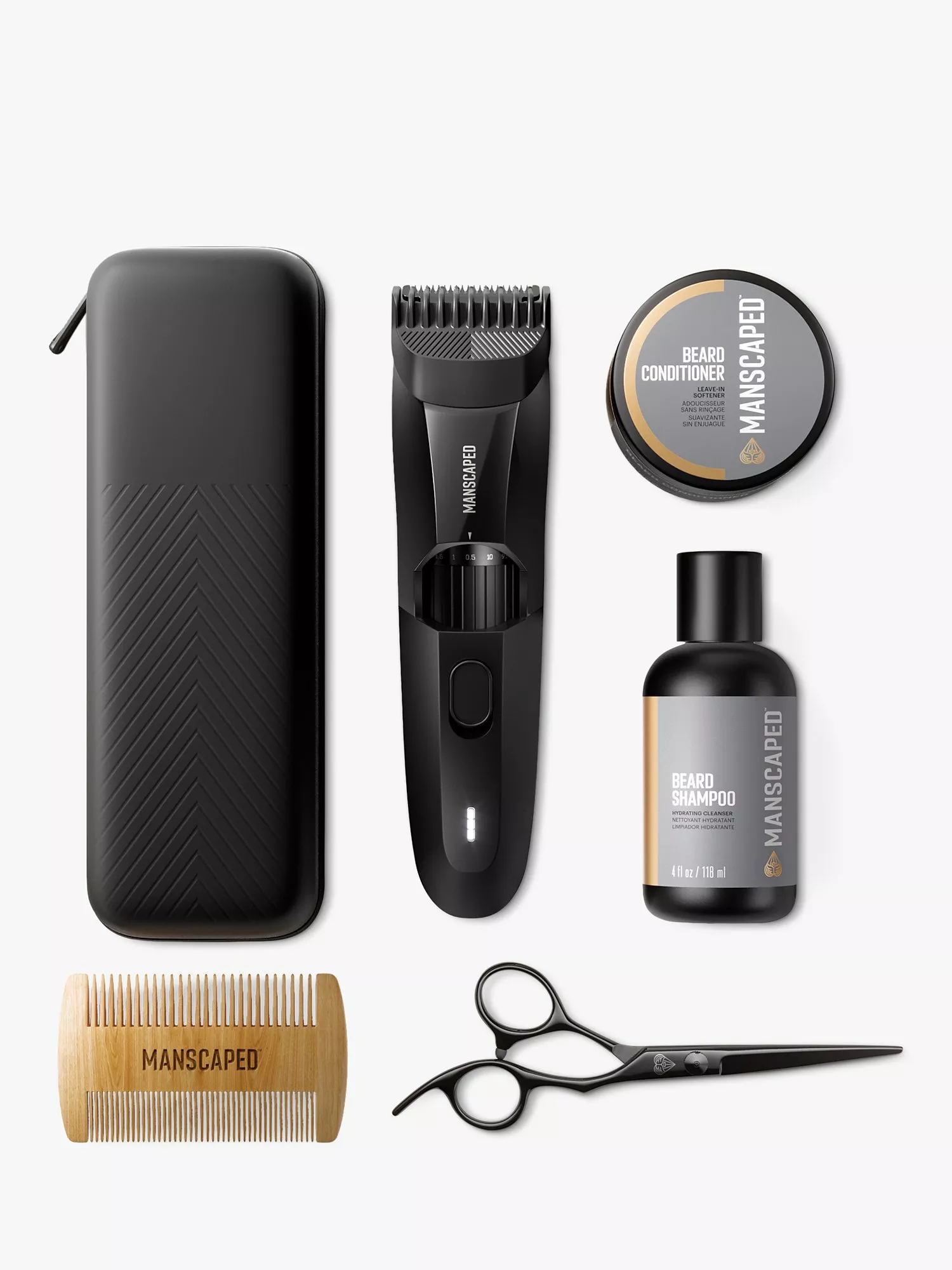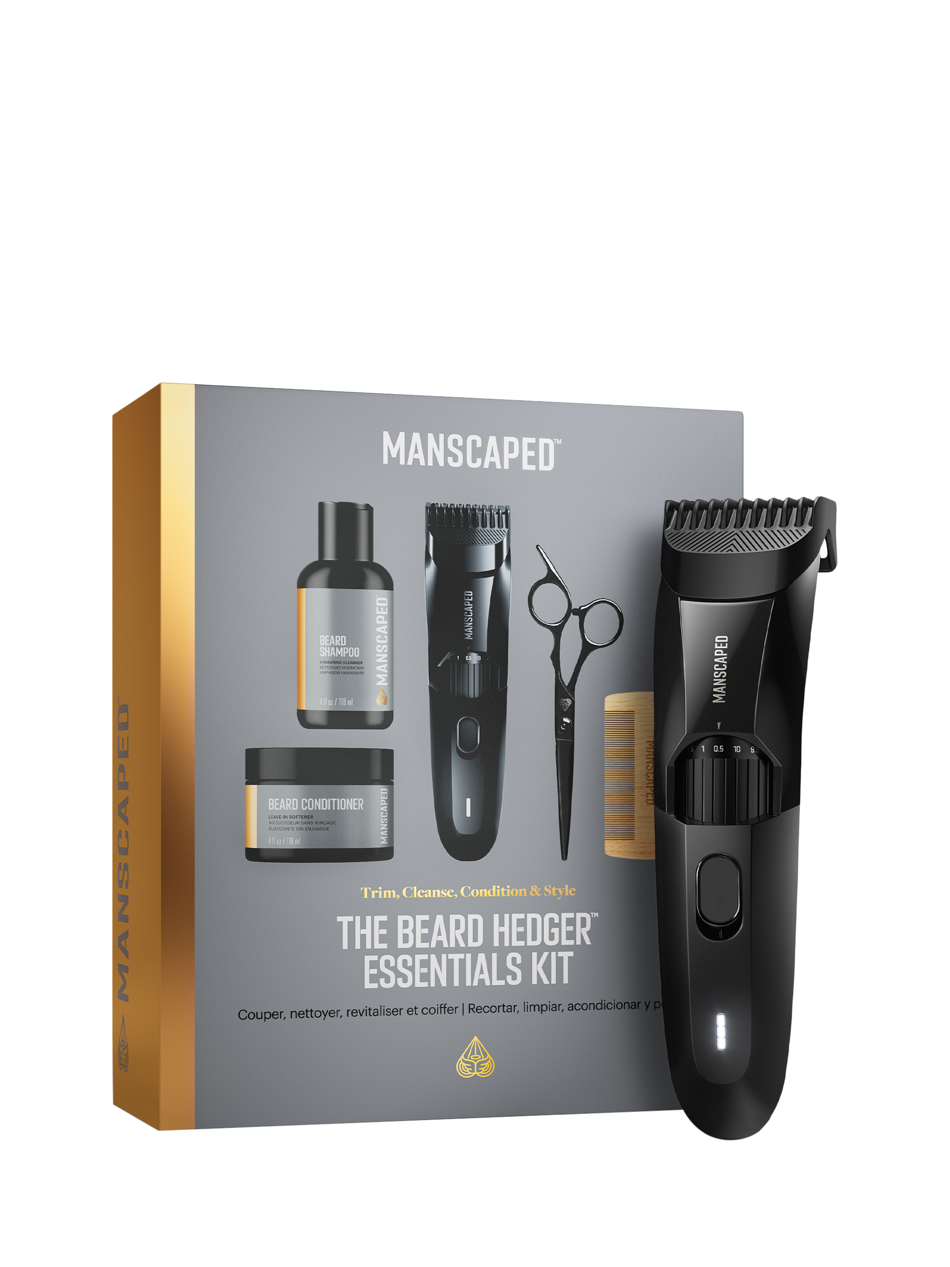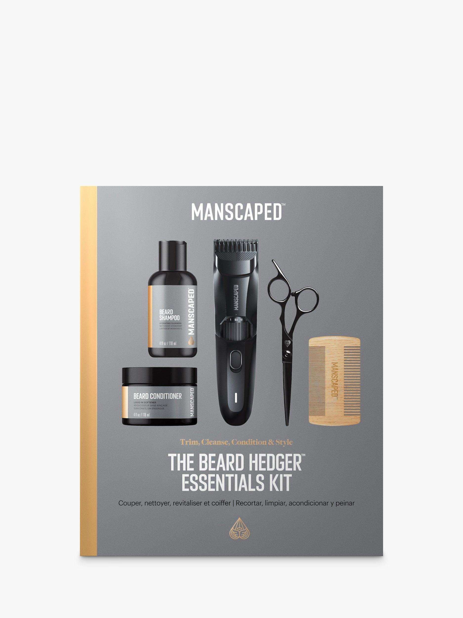 MANSCAPEDThe Beard Hedger Essentials Kit, Cordless Beard Trimmer, Beard Shampoo & Conditioner, Comb & Scissors Gift Set
