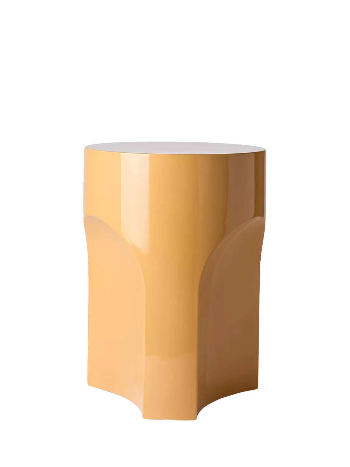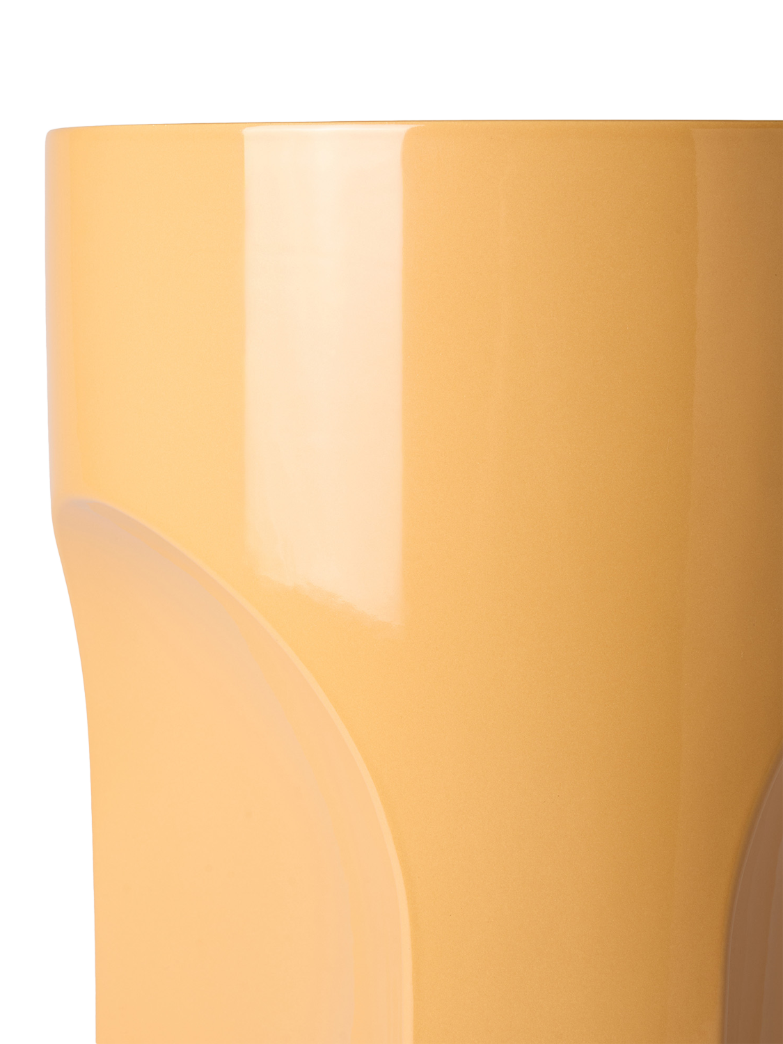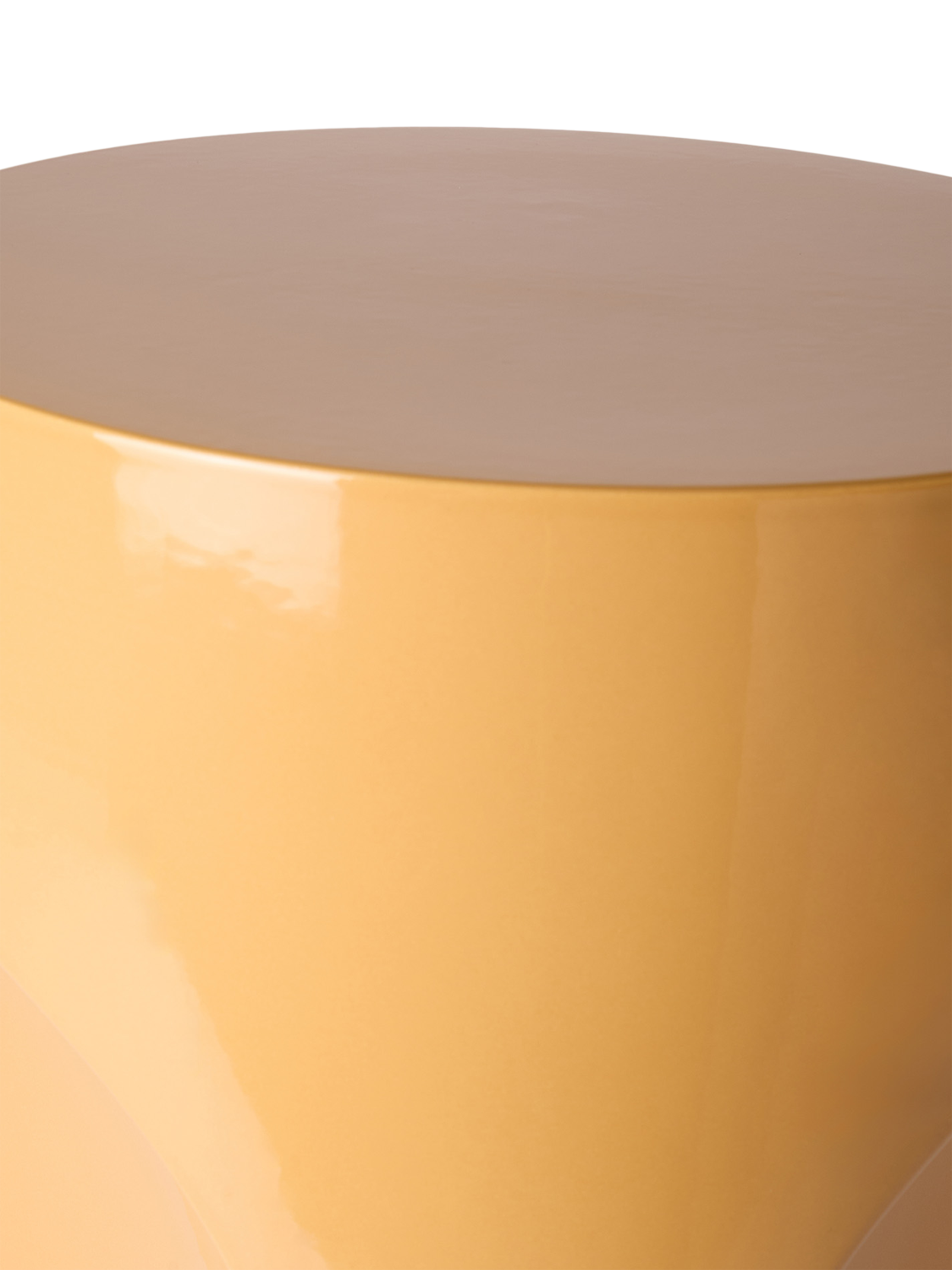 This version is finished in a glossy mustard glaze, a warm, vibrant tone that adds energy and character to living spaces, terraces or gardens. The glazed finish is weather-resistant and easy to wipe clean, making it practical for year-round use. The substantial weight and curved base ensure stability, while the compact footprint makes it easy to move and reposition as needed.