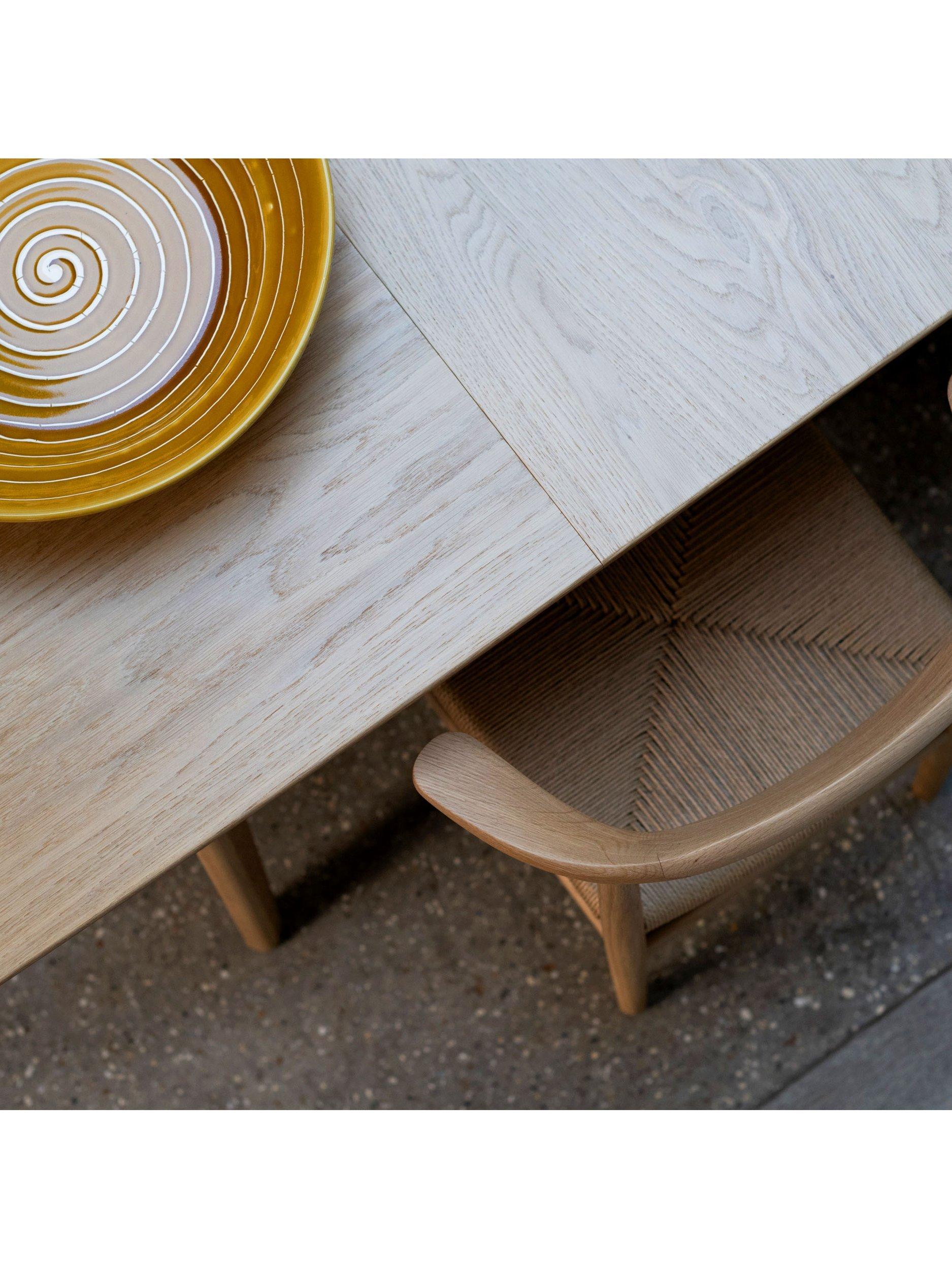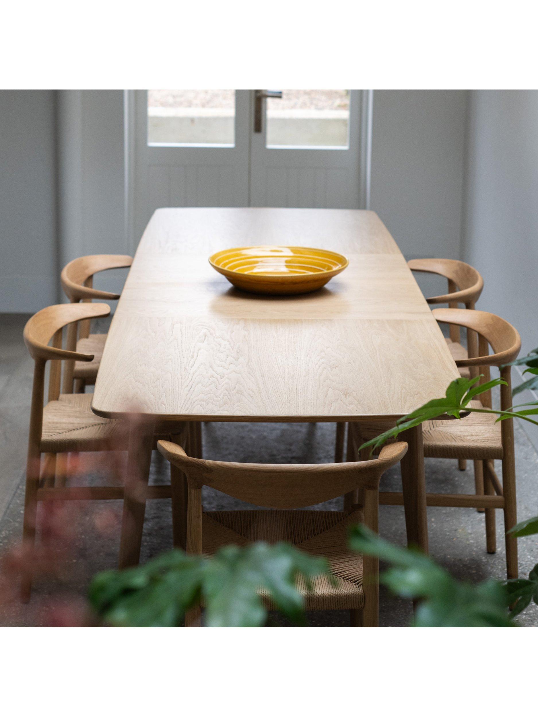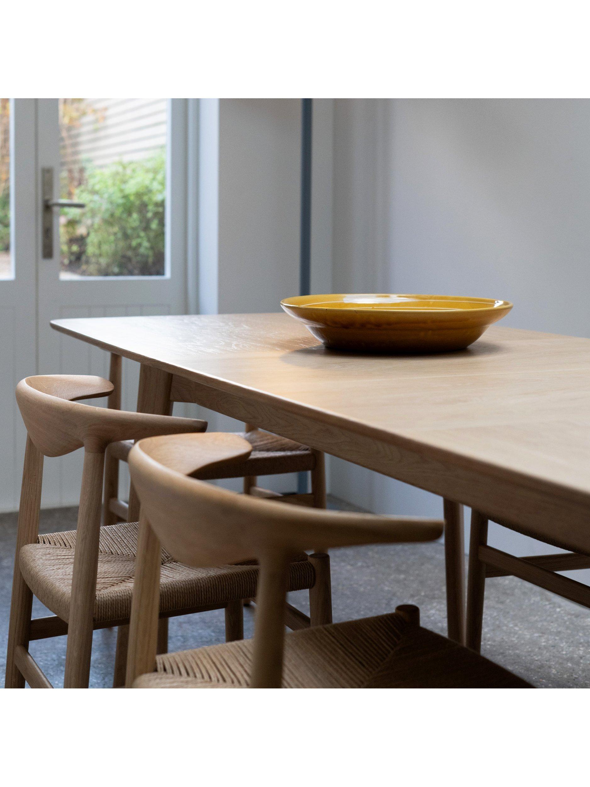 Crafted from solid oak, the table features a natural warmth and grain that develops character over time. The straightforward extension system makes it easy to adjust the table size as needed, while the solid wood construction ensures stability and longevity. The oak finish works well in both contemporary and traditional interiors, bringing an organic presence to larger dining rooms and open-plan living spaces.