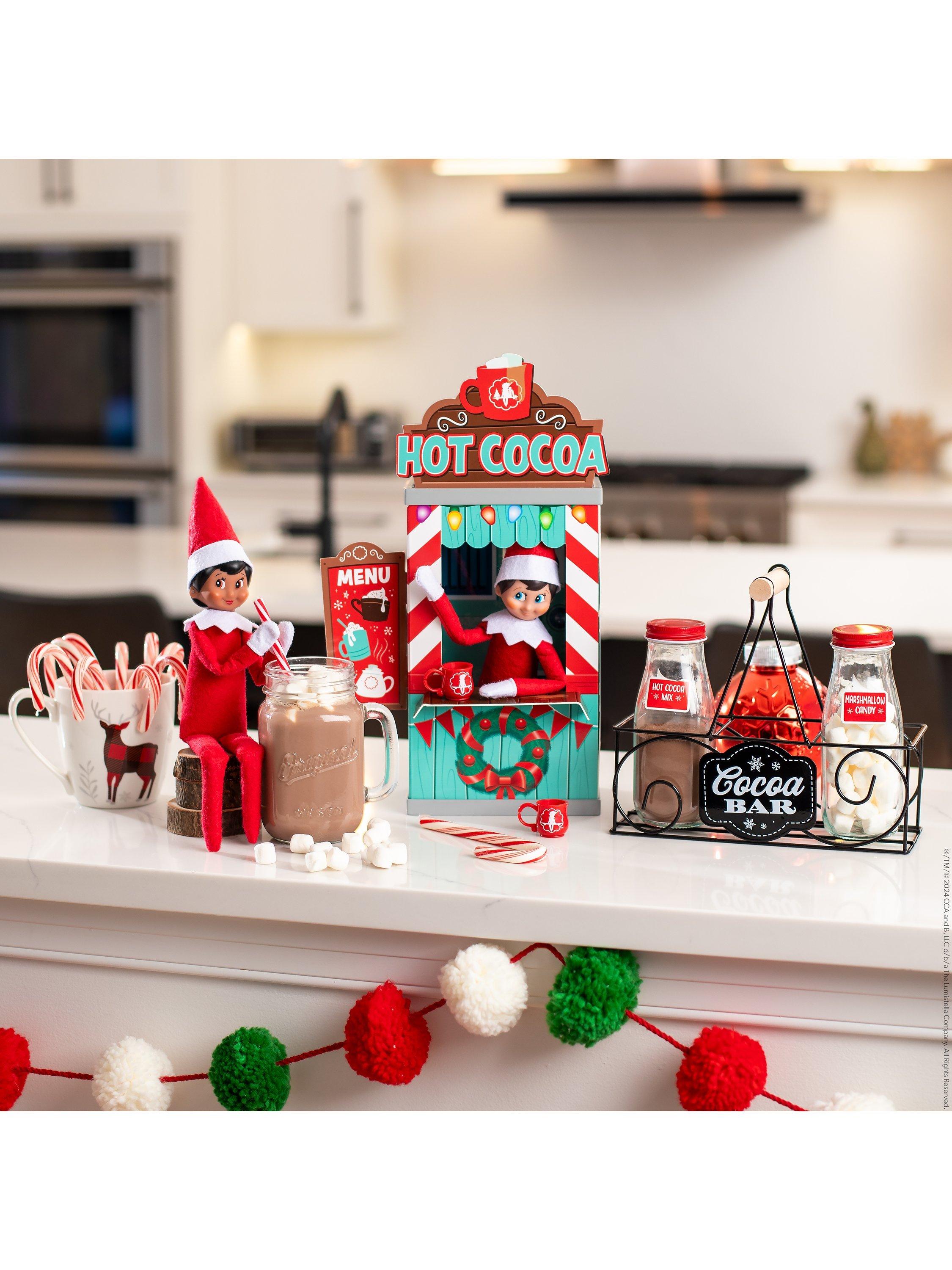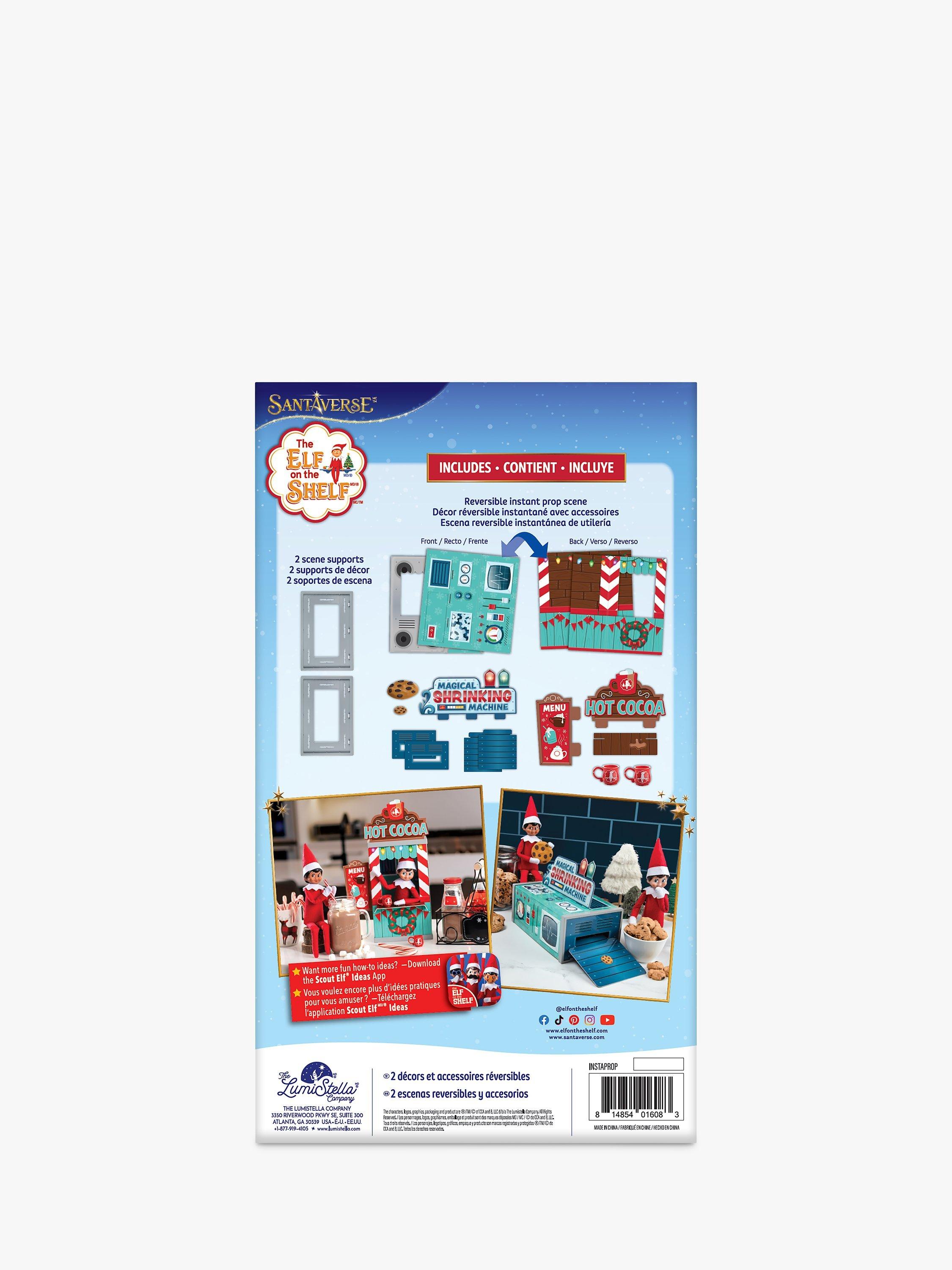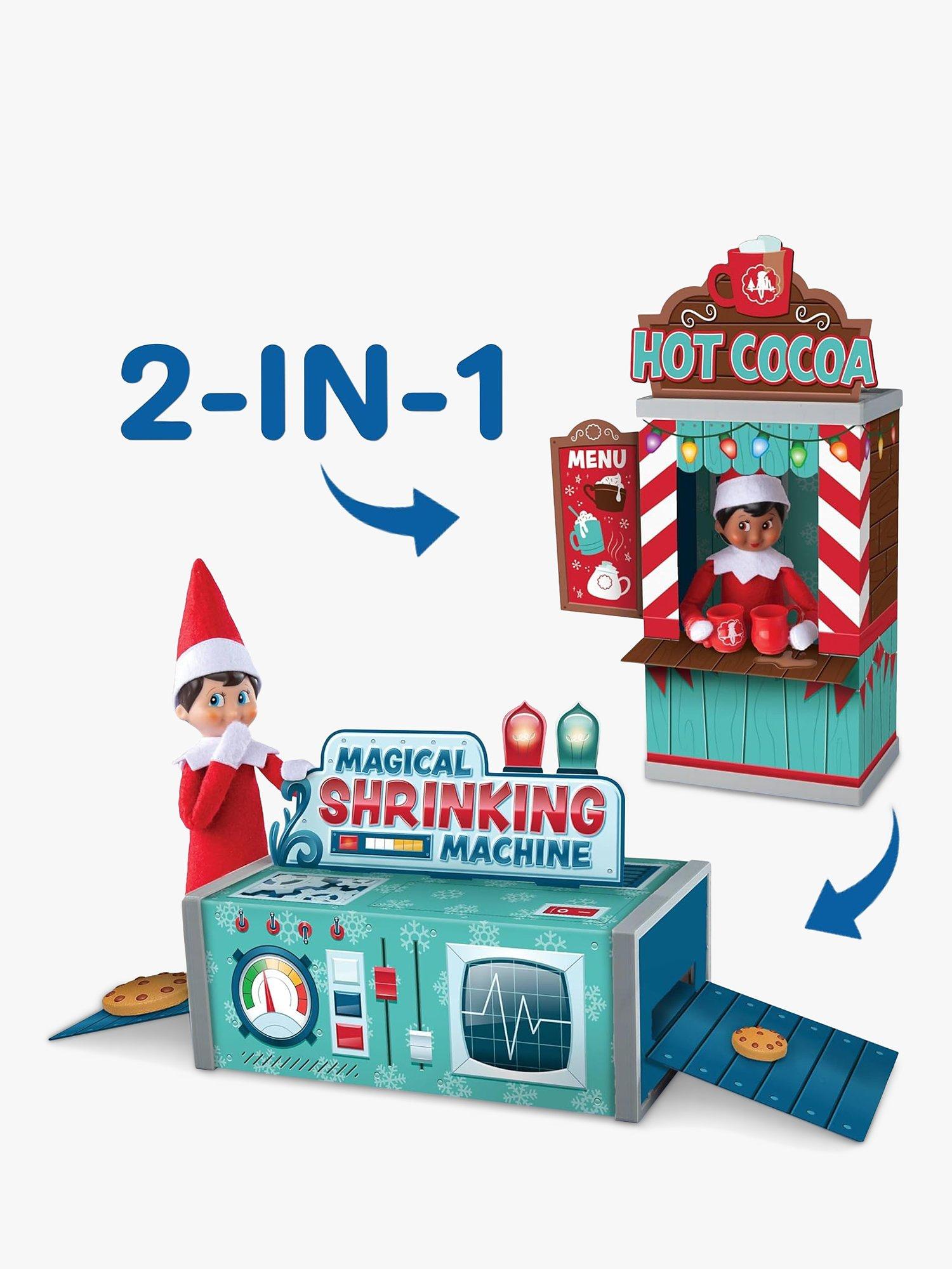 Line up for every elf's favourite treat at this charming cocoa stand! The hot cocoa stand is an exact replica of the real thing at Santa's North Pole! Your elf will also want to bring the laughs and show off their magic with the magical shrinking machine. Kid-size cookies went in, elf-size cookies came out. What a fun surprise for an elf scene!Compatible with Scout Elves and Elf Mates!