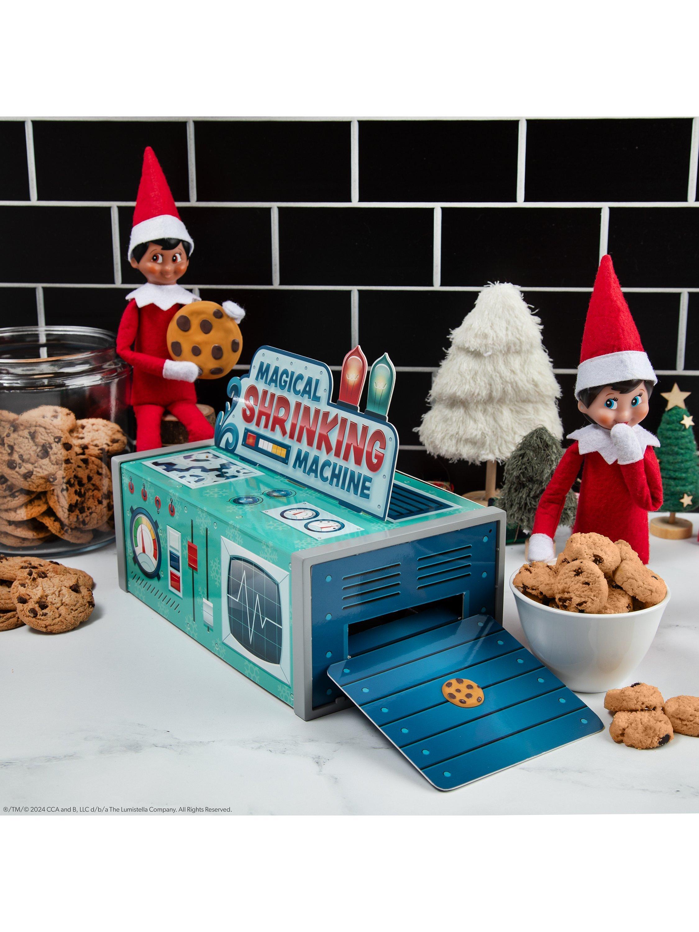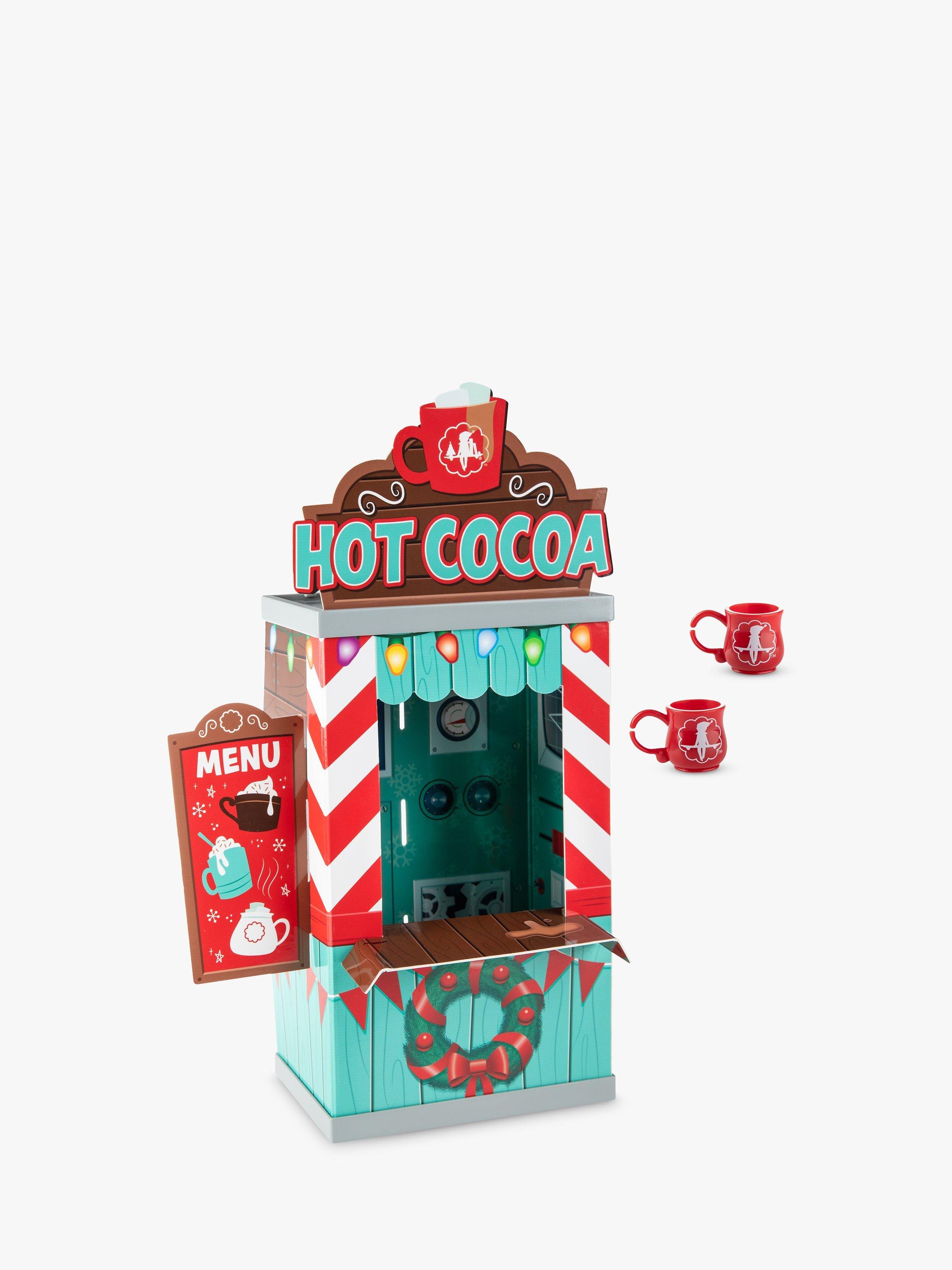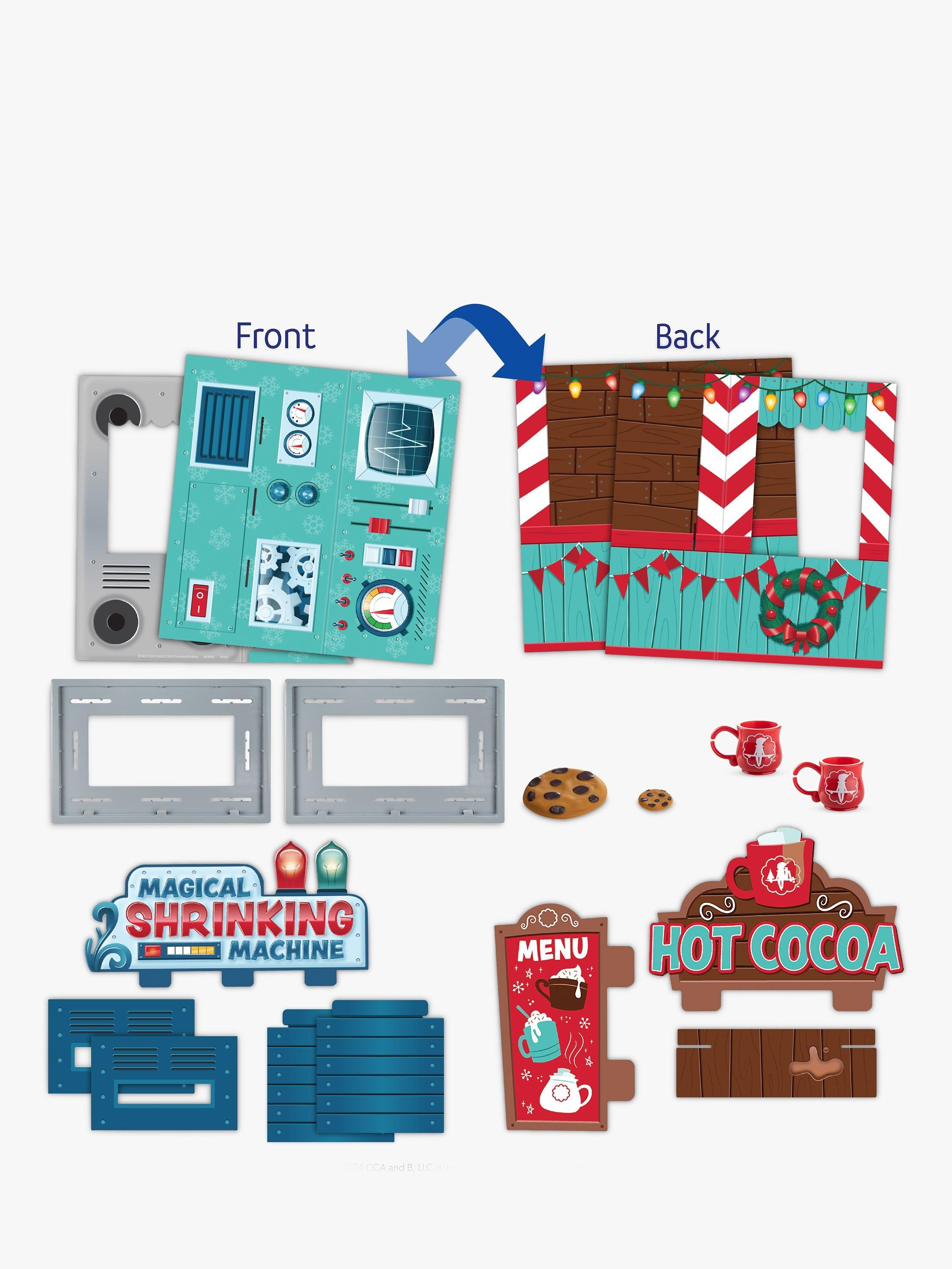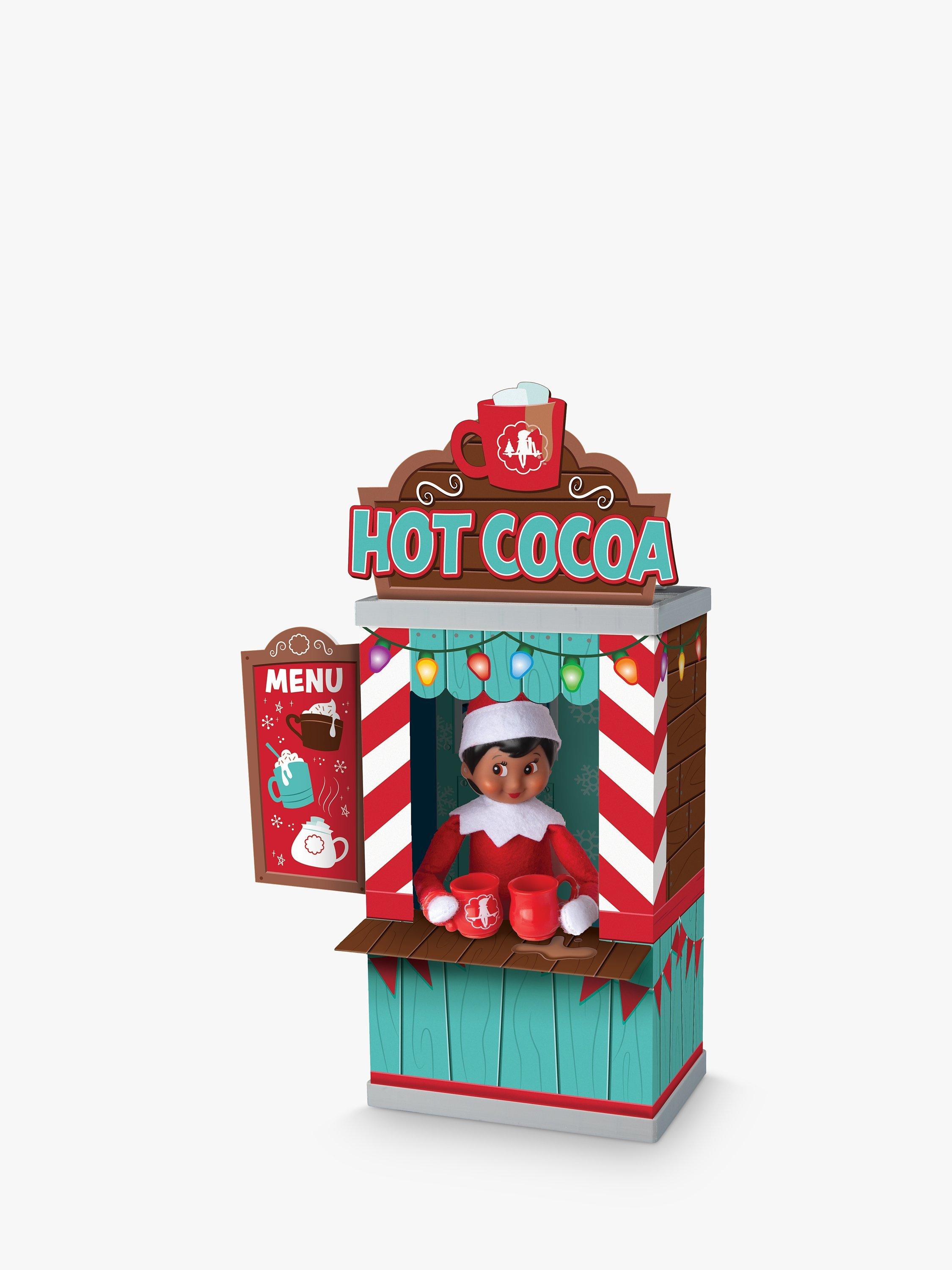 Line up for every elf's favourite treat at this charming cocoa stand! The hot cocoa stand is an exact replica of the real thing at Santa's North Pole! Your elf will also want to bring the laughs and show off their magic with the magical shrinking machine. Kid-size cookies went in, elf-size cookies came out. What a fun surprise for an elf scene!Compatible with Scout Elves and Elf Mates!