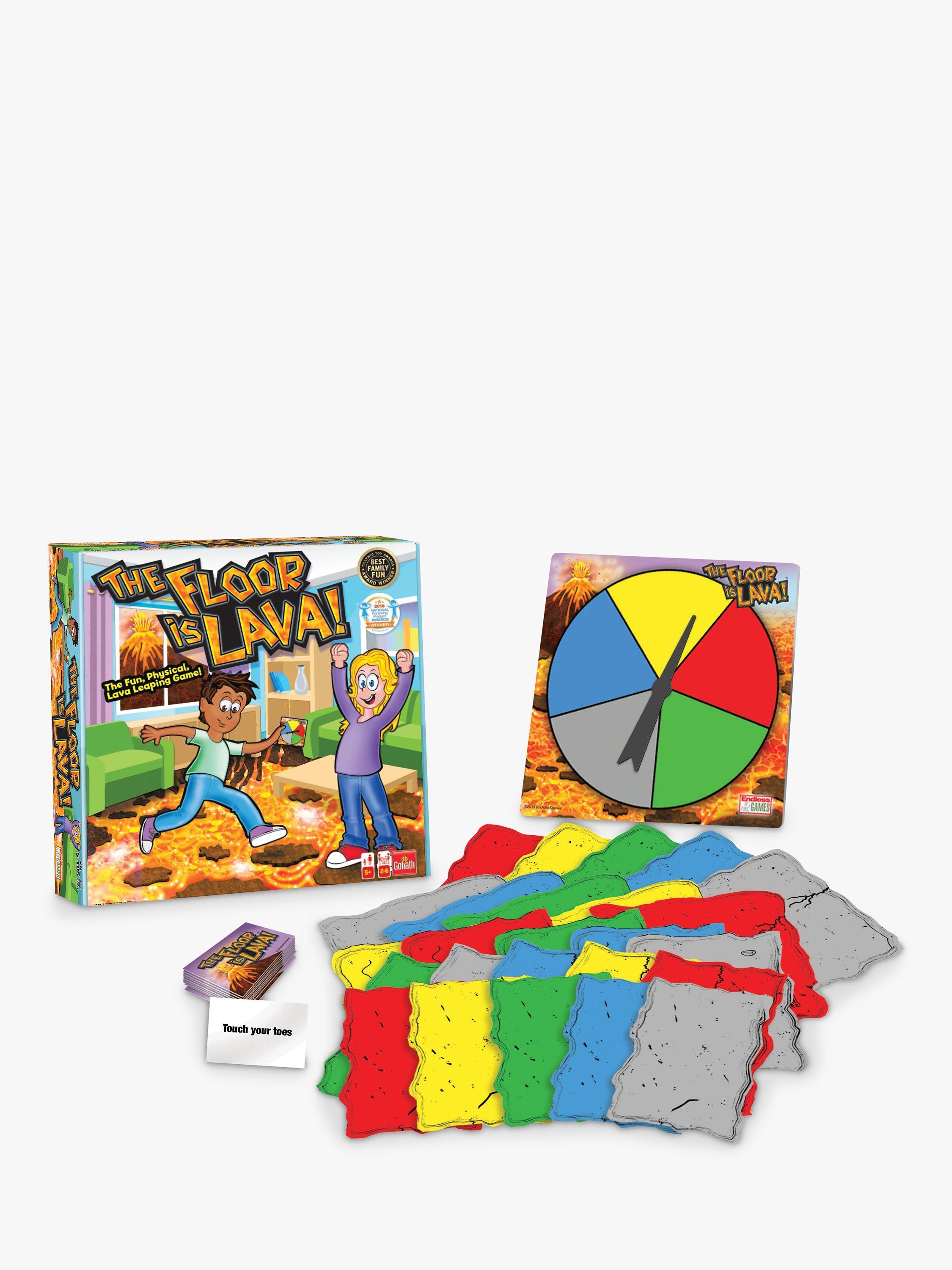 A Spinner, 25 coloured foam tiles, and 27 action cards ramp up the fun on this classic game of imagination and adventure. Remember, DON'T TOUCH THE FLOOR!