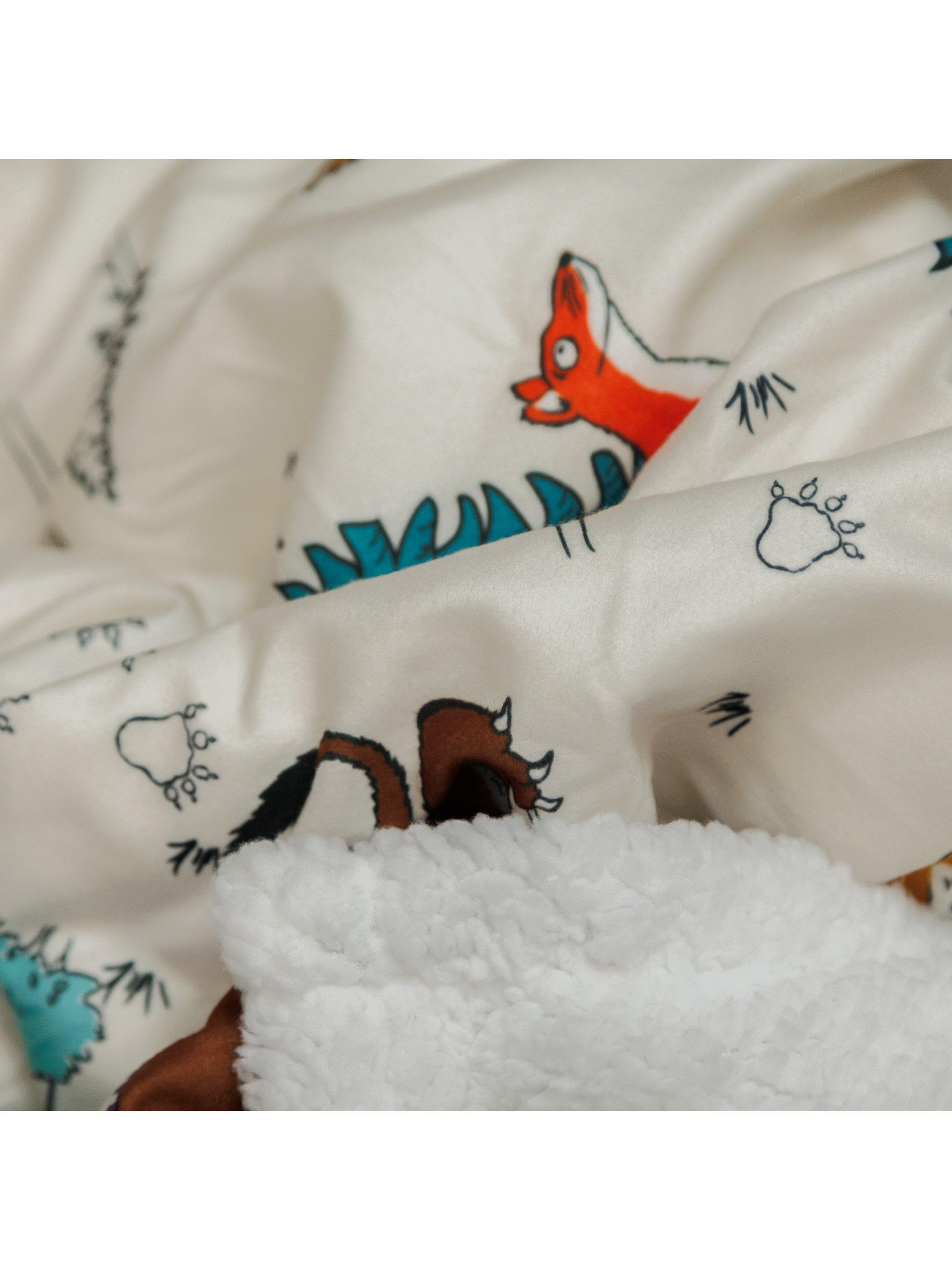 Embark on a cosy adventure with this Gruffalo sherpa fleece blanket. This extraordinary fleece combines the warmth of sherpa fabric with the enchanting world of the Gruffalo, making it the perfect companion for fans of this beloved children's book.
