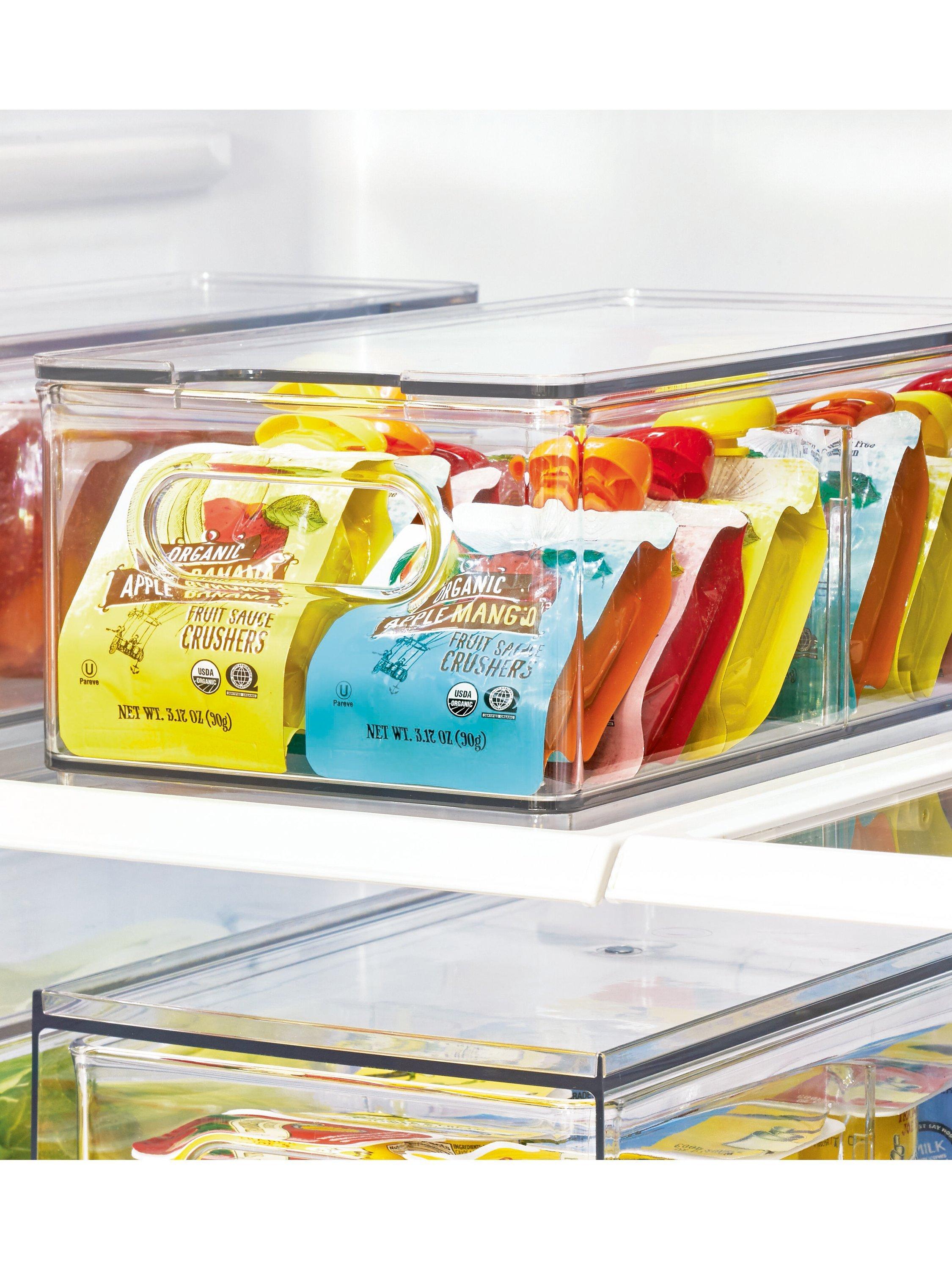 A removable divider lets you sort small jars, snacks, individual yogurts and more while integrated handles make it easy to grab and go.