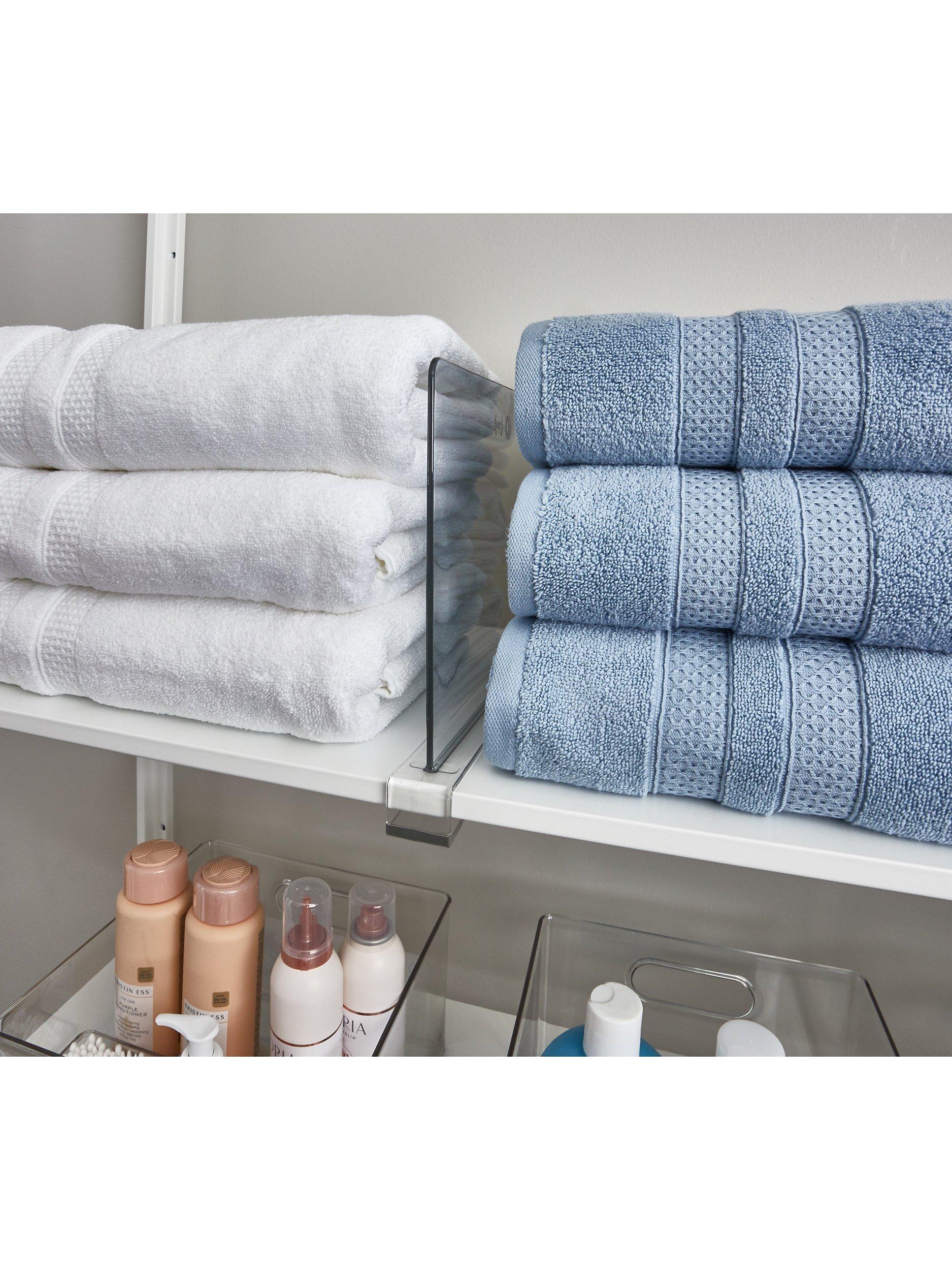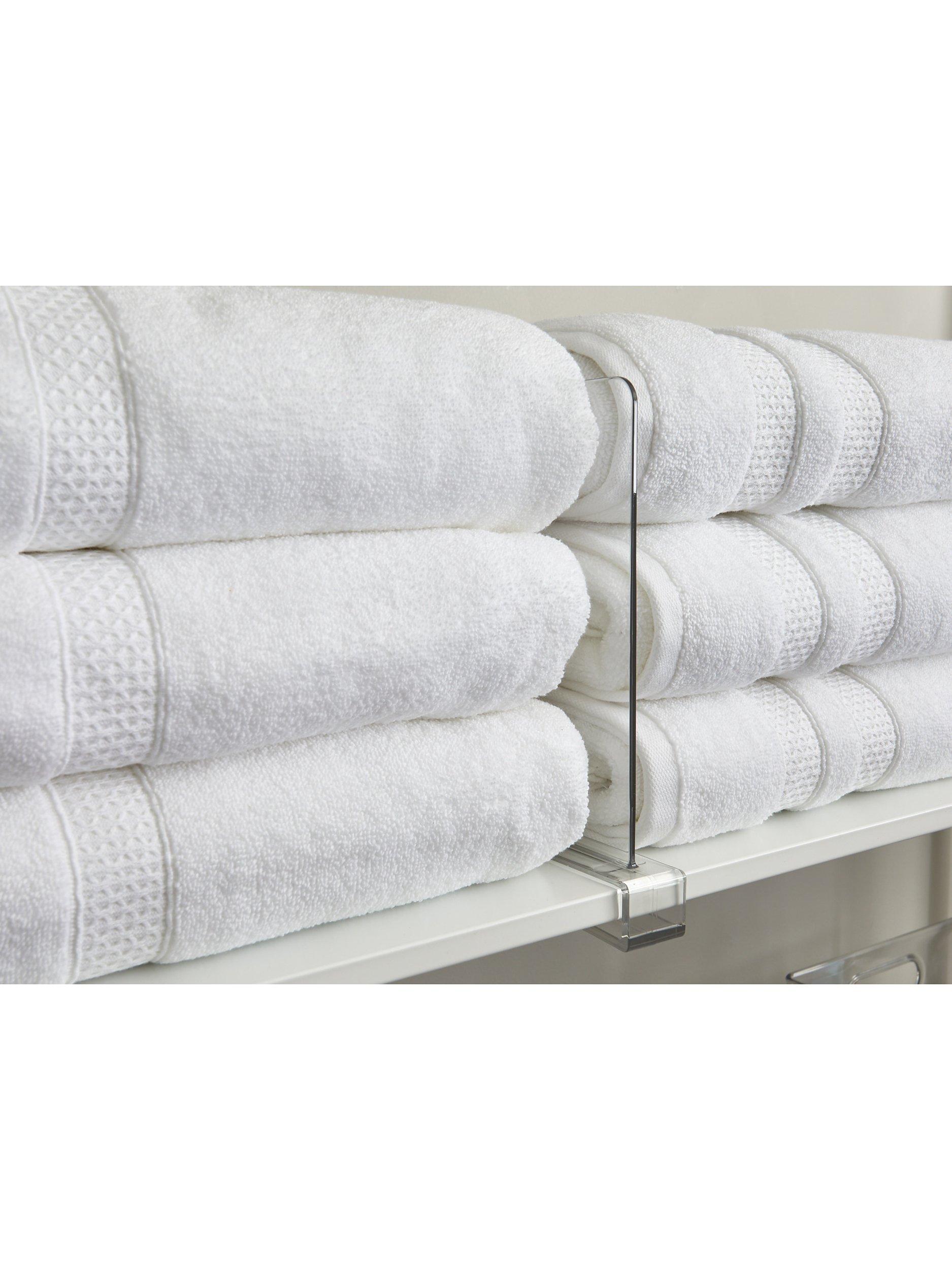 This simple shelf divider provides effortless organisation. Use one or more to sort kitchen staples or even linens, keeping everything neatly stacked and easy to see. It's durably built, with a clear, clean look that's perfect for a clutter-free cupboard or pantry.