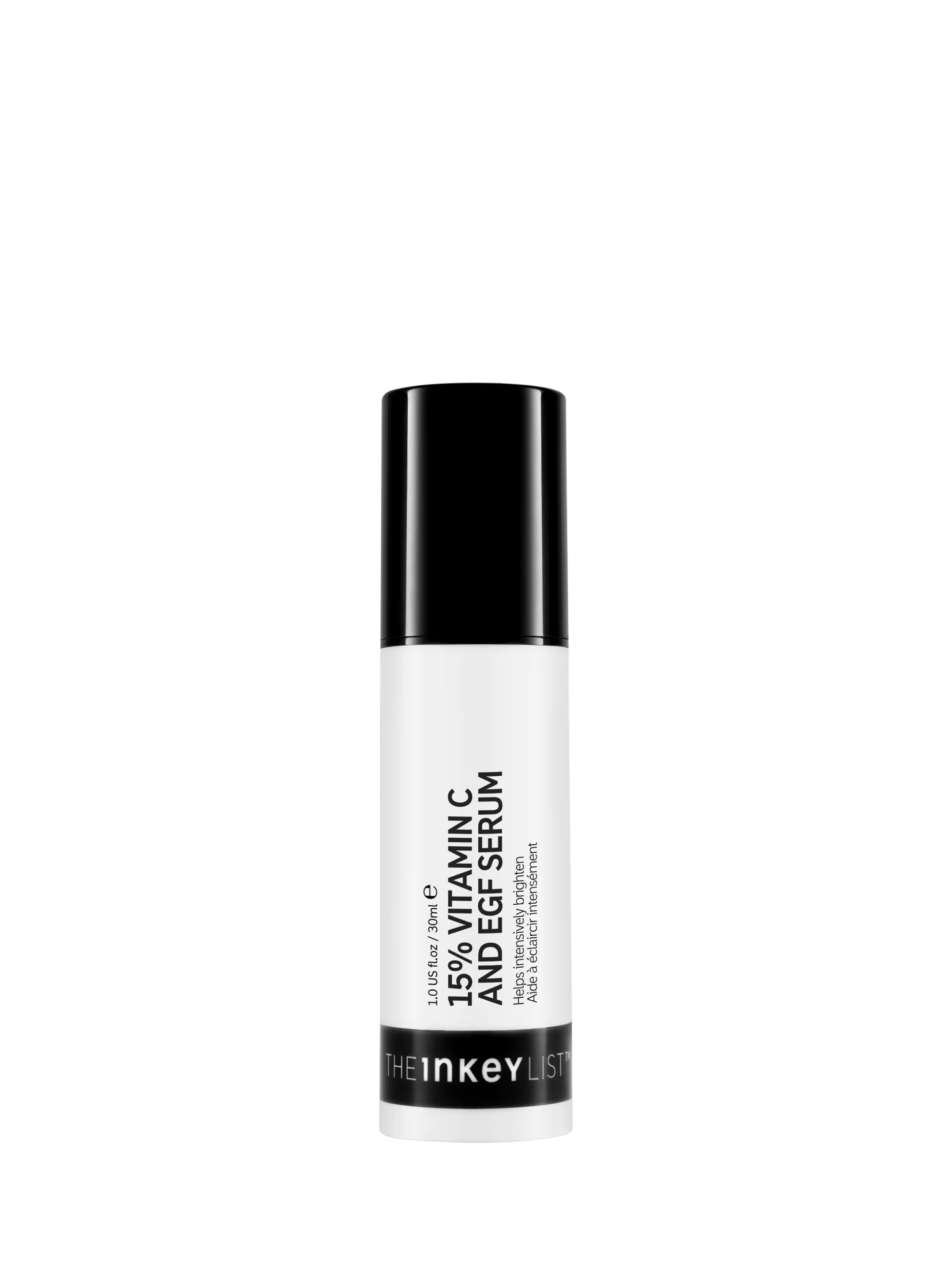 The INKEY List’s 15% Vitamin C & EGF Serum is a powerful, skin-brightening serum formulated to reduce the appearance of hyperpigmentation, improve dull skin and help to visibly brighten and even skin tone.