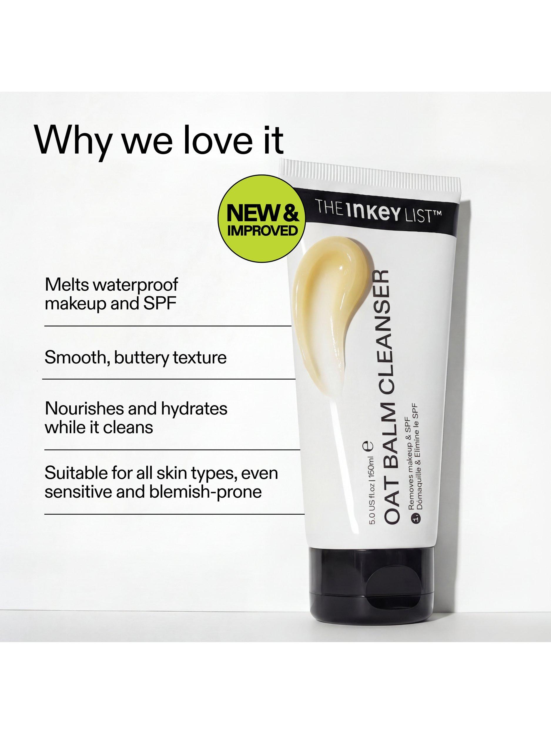 Melt away makeup, SPF and impurities instantly with The INKEY List’s new and improved Oat Cleansing Balm. Removes 100% of waterproof makeup and SPF in 30 seconds with no residue*.