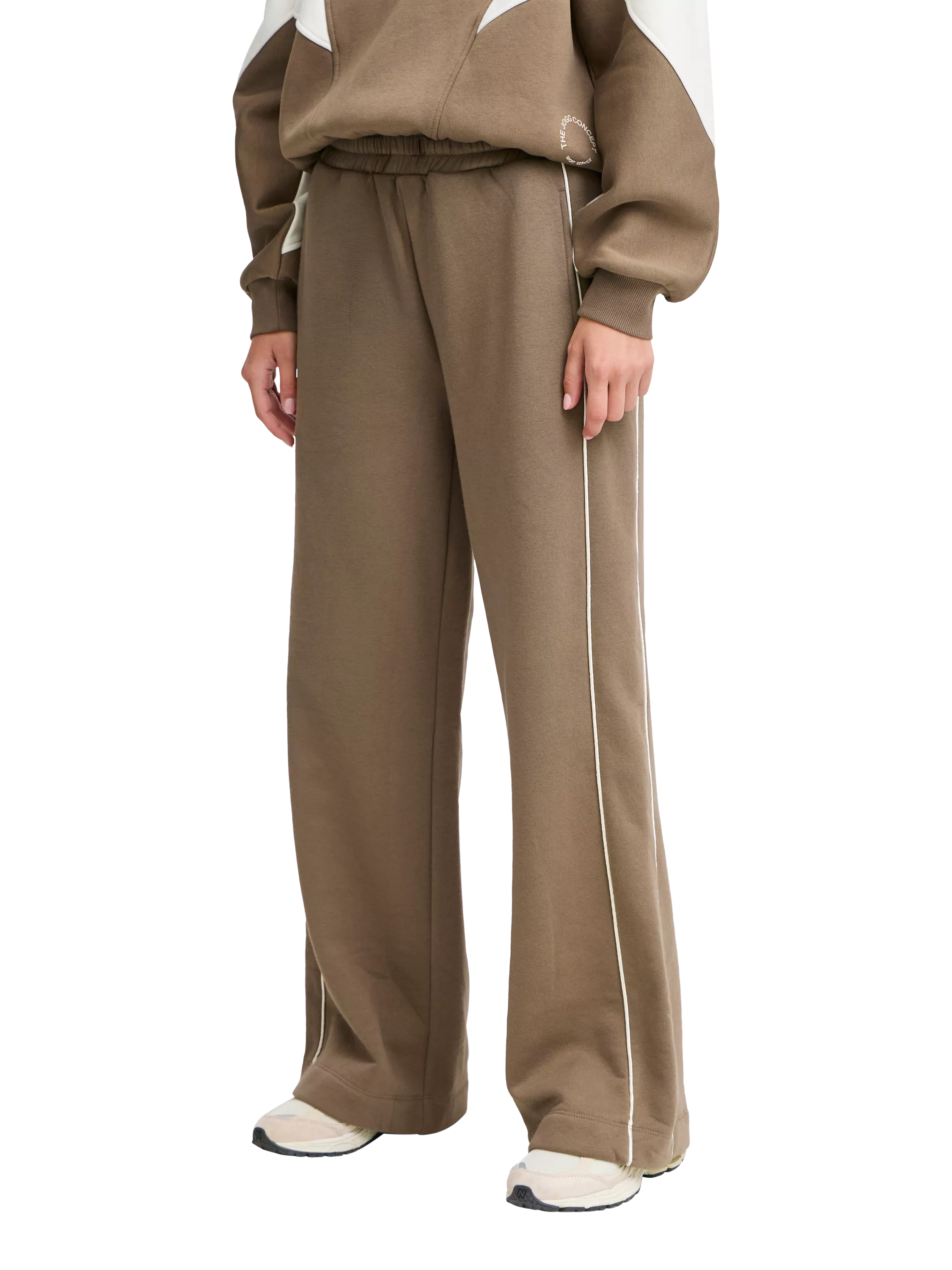 The JCSAGE Piping Joggers offer a stylish blend of comfort and modern design. These wide-legged sweatpants feature satin piping details and a rubber print logo for a sleek look. With inside strings for an adjustable fit, side pockets, and a back pocket for added convenience, these soft cotton-blend joggers are great for both lounging and casual wear.