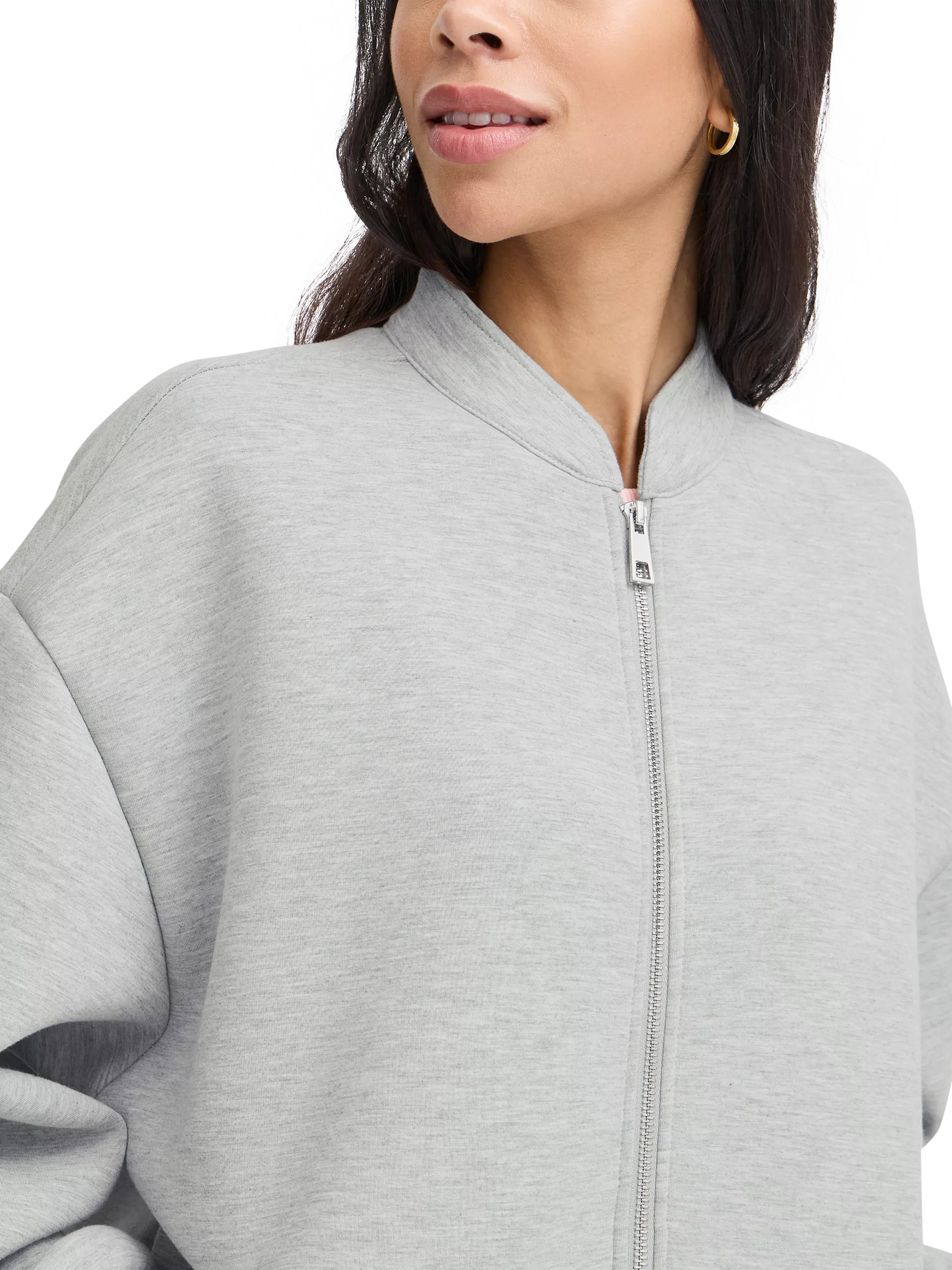 The JCRAYA Bomber Jacket offers a modern take on a classic design. This relaxed-fit jacket features zip closures from both the top and bottom for added versatility. The drop shoulders enhance its laid-back style, making it a stylish yet comfortable choice for everyday wear.