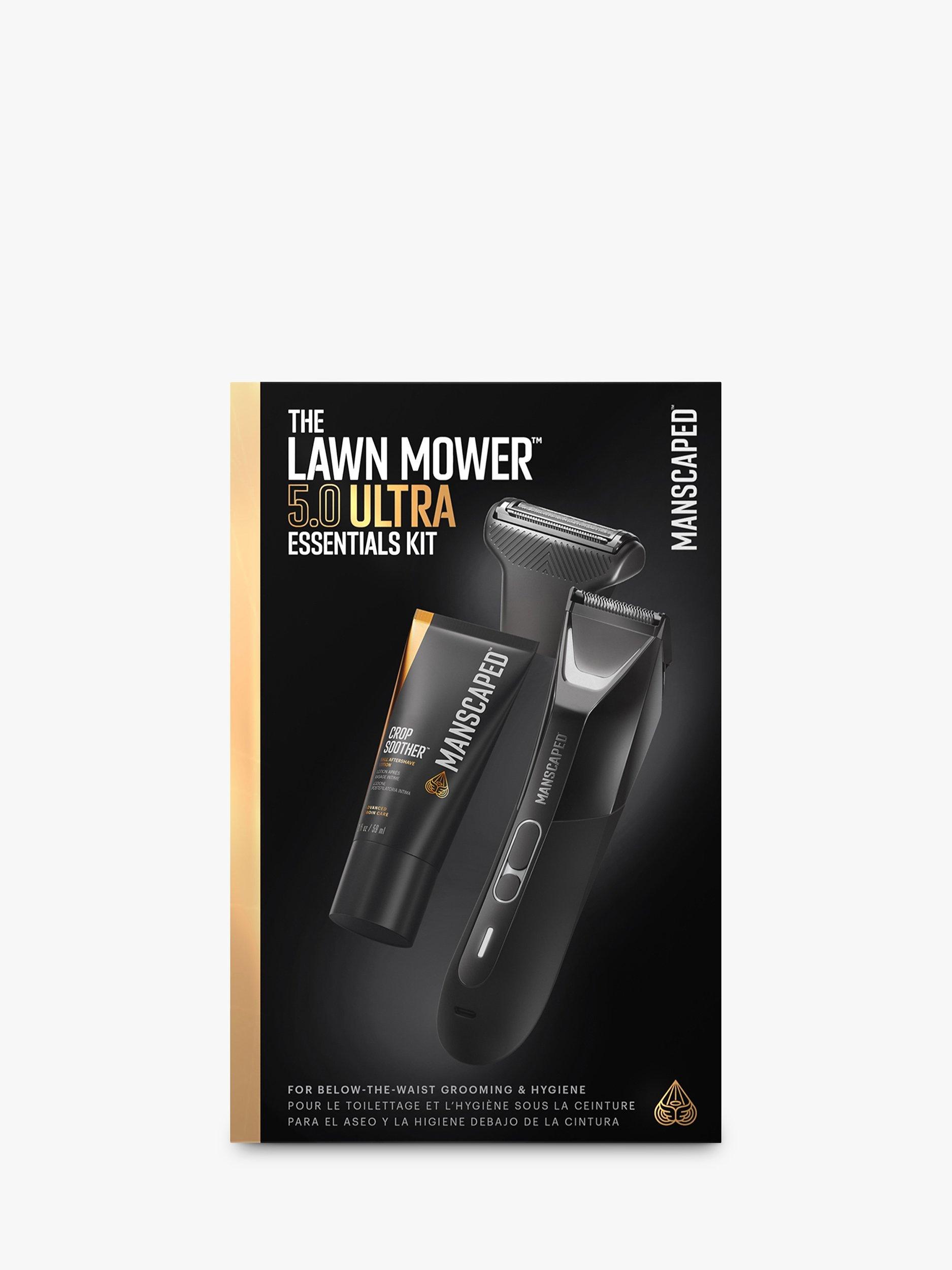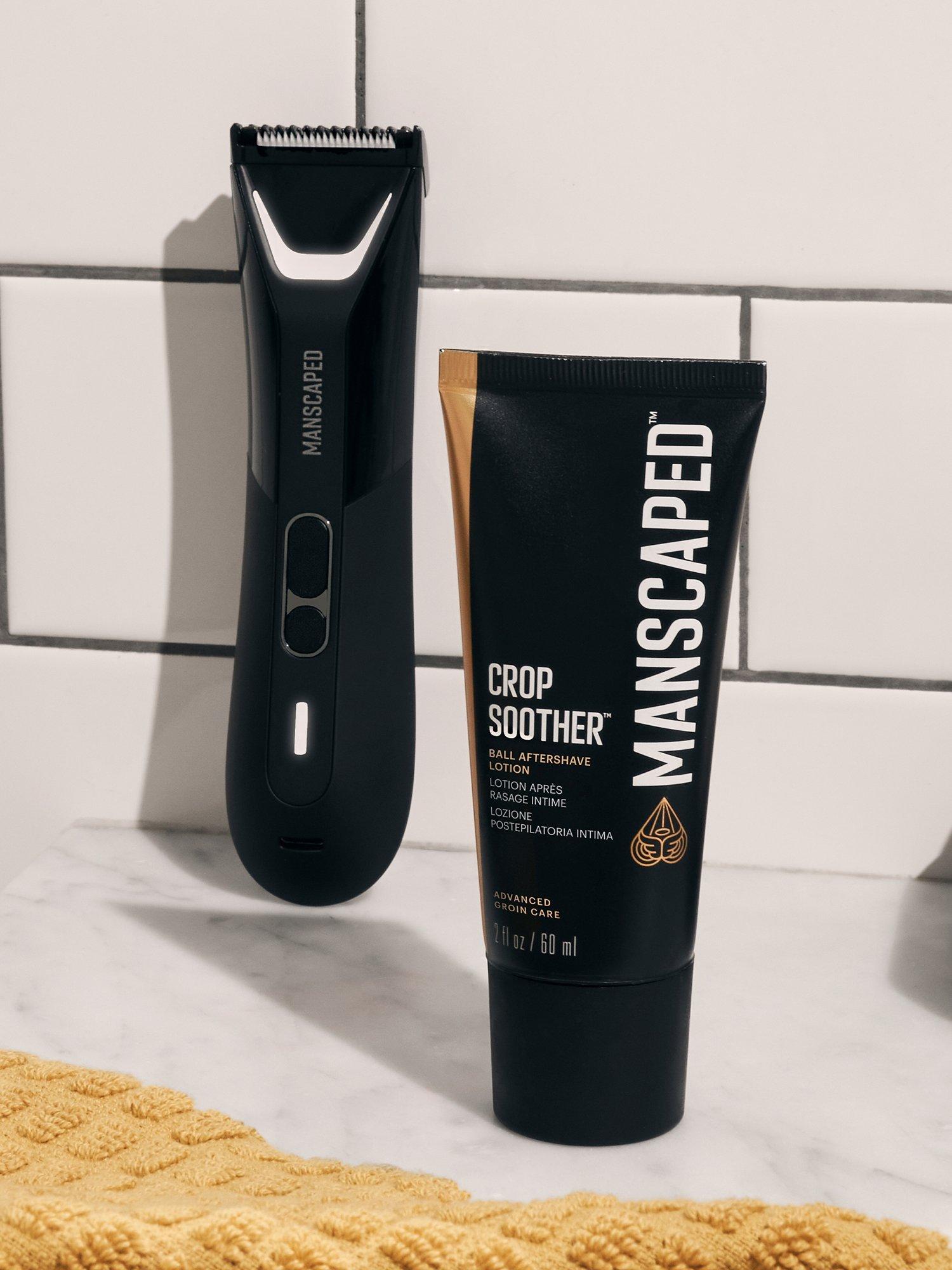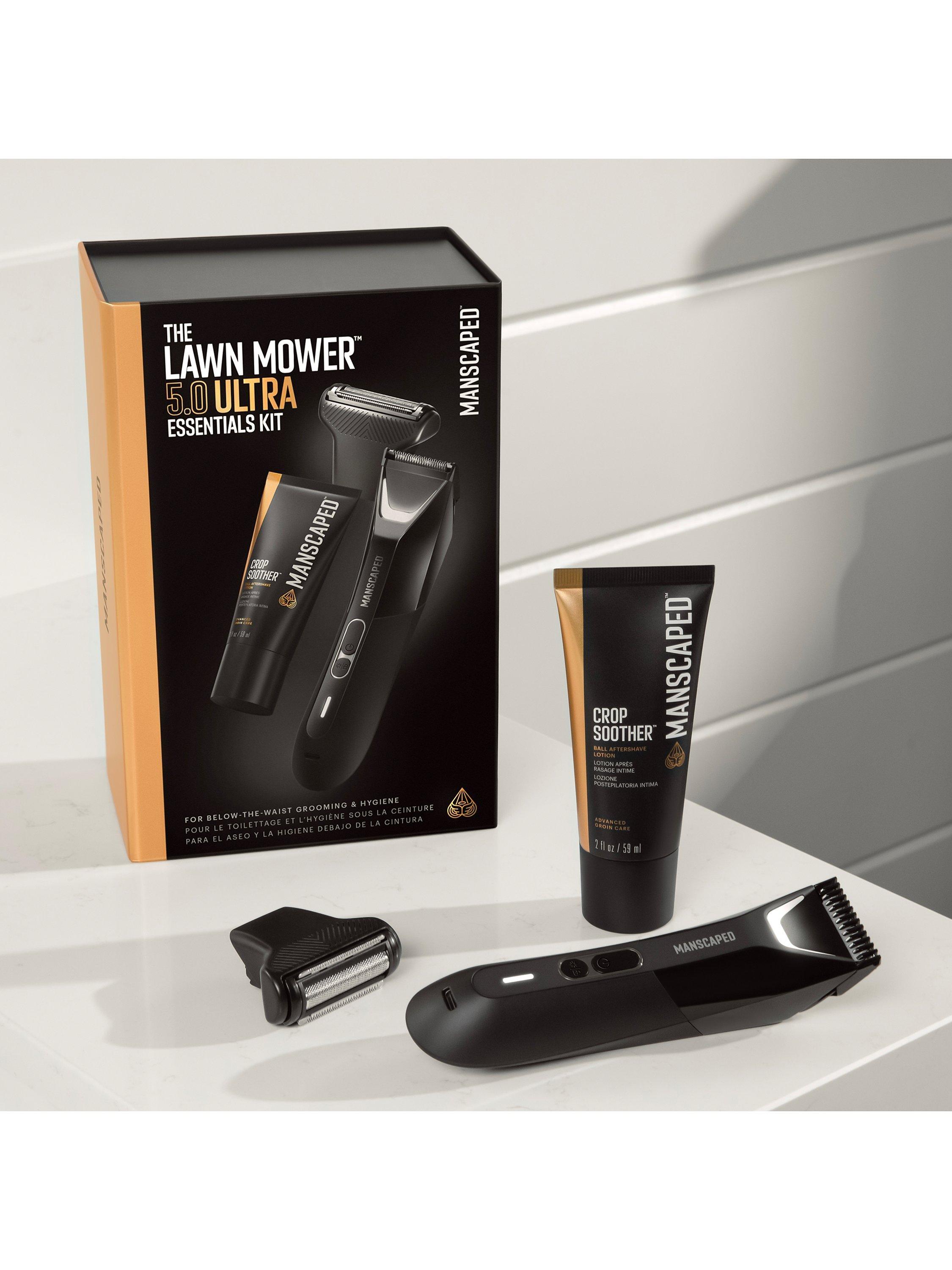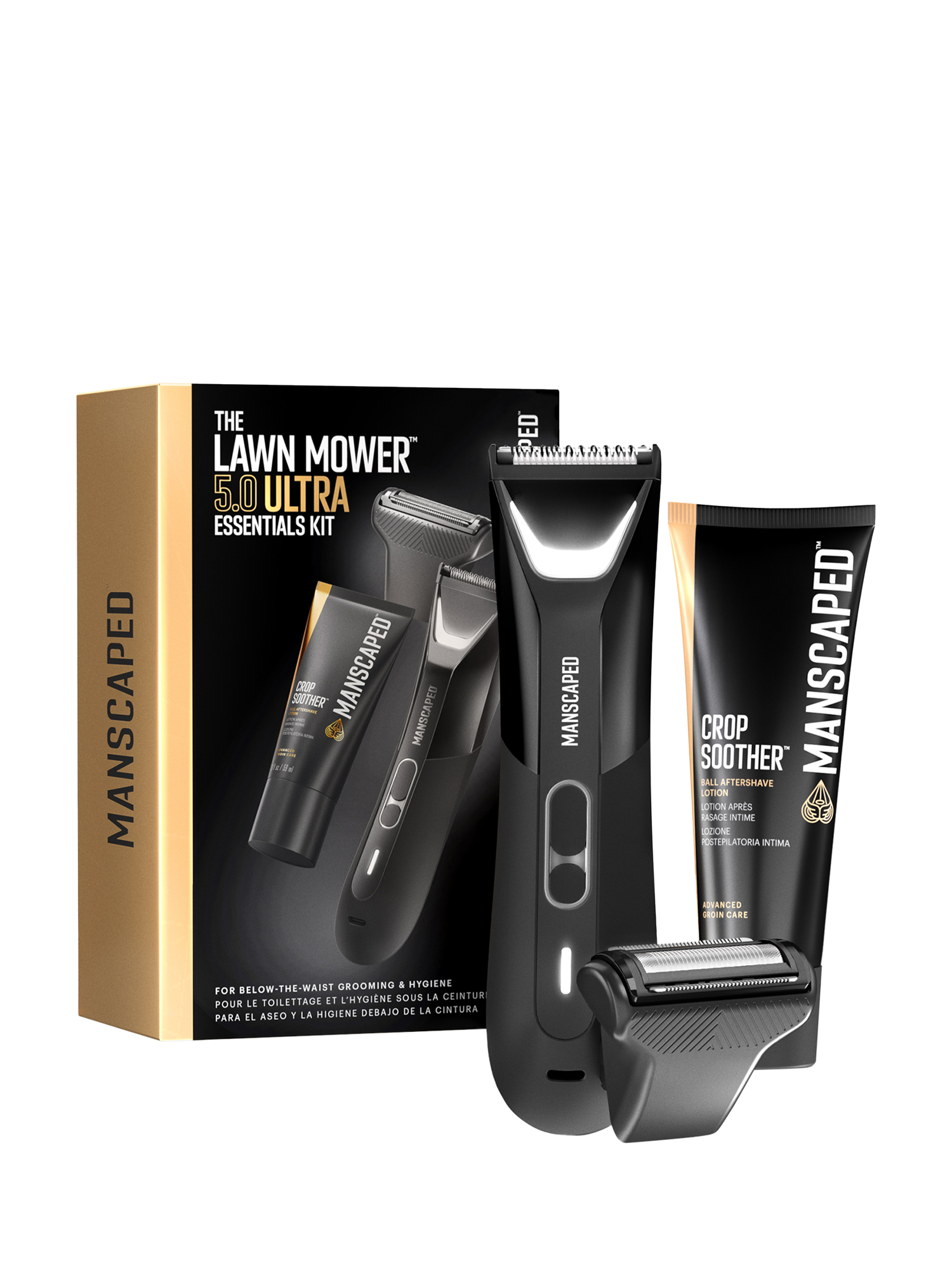 The MANSCAPED® Lawn Mower® 5.0 Ultra Essentials Kit features The Lawn Mower® 5.0 Ultra electric trimmer and Crop SootherTM after-shave lotion for the best below-the-waist shave. With an advanced dual-head system and SkinSafeTM blades, The Lawn Mower® 5.0 Ultra is a next-gen groin groomer that’ll give you the power to trim, shave, and shape to your liking. This next-level male trimmer is cordless, waterproof, and delivers constant power for a smooth shave. It also comes with interchangeable blade heads and adjustable trimming guard sizes for different hair lengths. The convenient multi-function button gives you access to a dual-temp spotlight or travel mode.