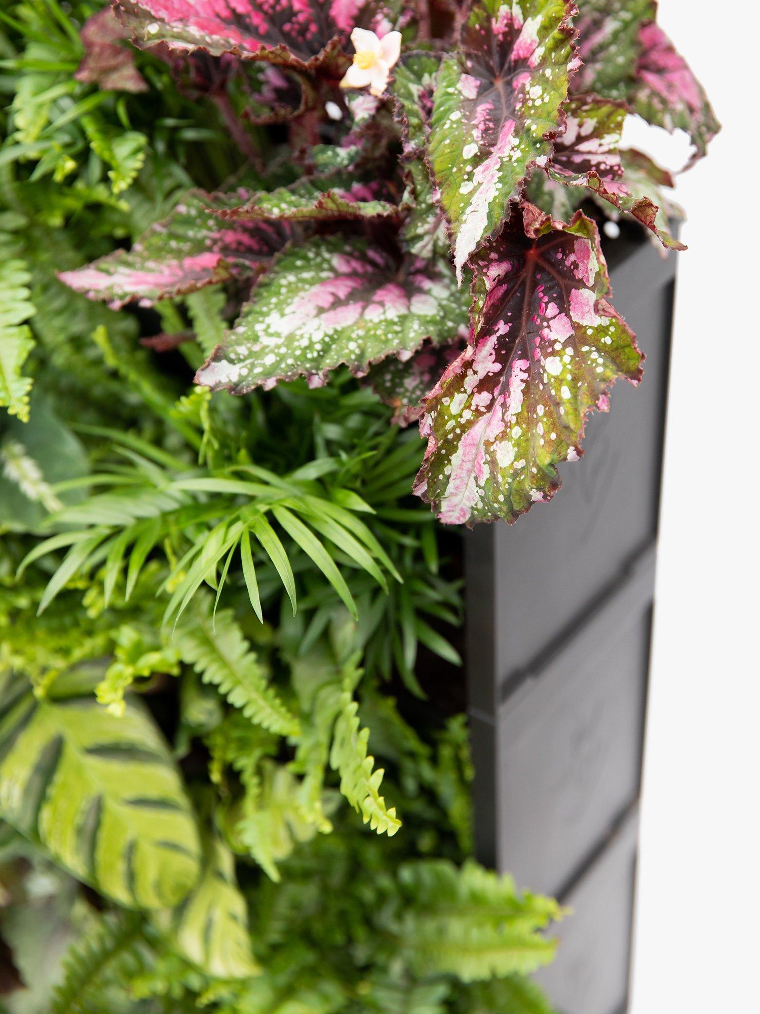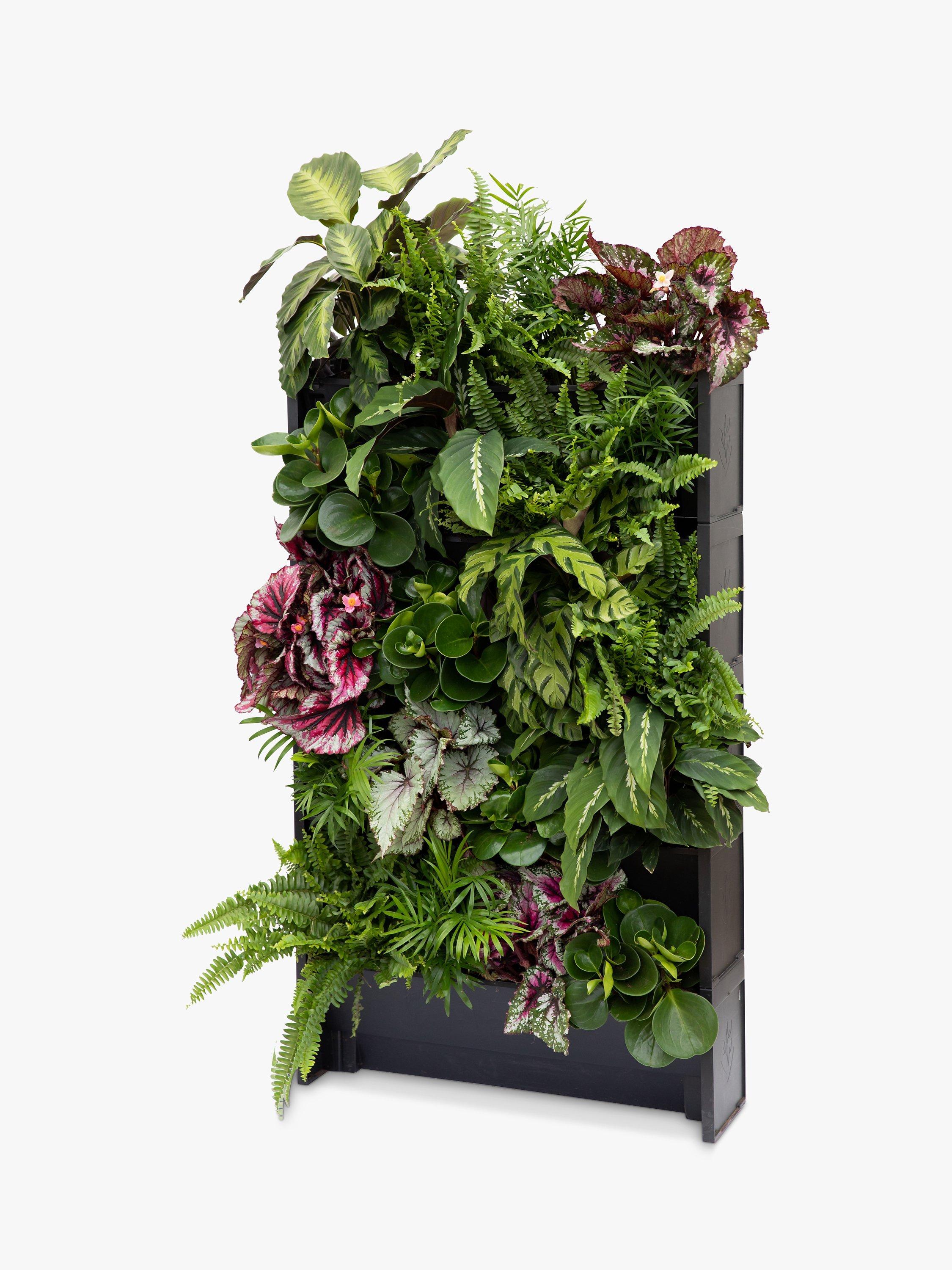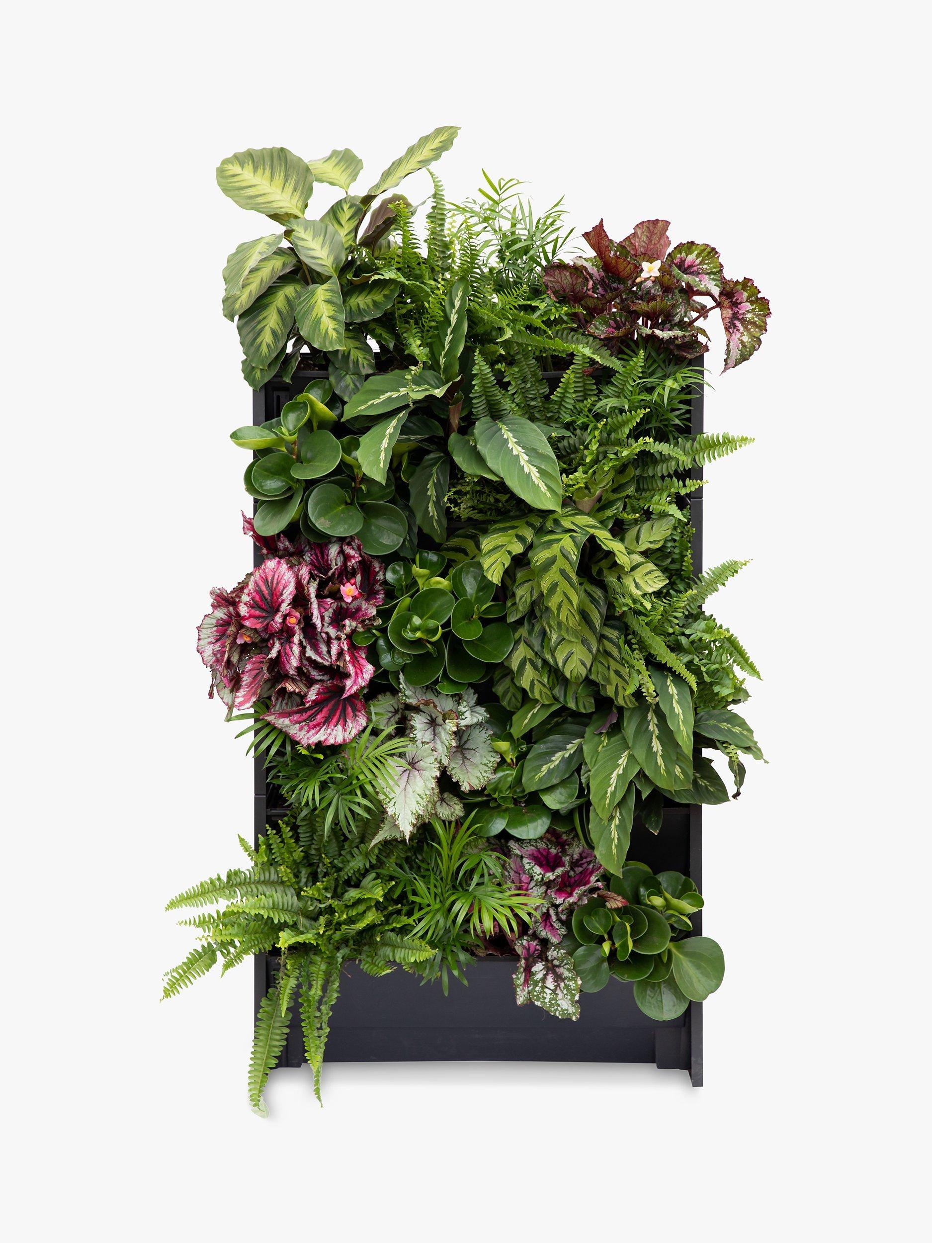 Care instructions: Remove the growing pots and plant the Houseplants in the troughs with the soil provided. Ensure the water reservoir is filled once a week, and you can enjoy your green wall art. Position in a spot with good light but not direct sunlight to prevent the leaves from getting scorched. The PlantBox troughs can either stand on the ground or can be easily attached to a wall.